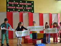 Uczniowie klas pierwszych przygotowani przez wychowawczynie - mgr Beatę Piskorską, mgr Elżbietę Mozdyniewicz i mgr Izabelę Gąsienicę-Walczak przedstawili bardzo ciekawe scenki teatralne dla Mamy i Taty.