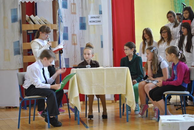 Uczniowie z wychowawcami wykonali okolicznościowe gazetki nt. idei naszego Patrona. W klasach odbyły się lekcje wychowawcze, których tematem przewodnim było życie i działalność Janusza Korczaka. W sali gimnastycznej odbył się konkurs, w którym uczniowie klas IV-VI wykazali się znajomością lektury "Kajtuś czarodziej", a najlepszą okazała się grupa z klasy Va. Następnie cała społeczność szkoły spotkała się na wspólnej akademii. Uczniowie klasy IV b zaprezentowali scenki teatralne związane z życiem i twórczością Janusza Korczaka, a chór "Leśne Ludki" zaśpiewał kilka piosenek. Ważnym elementem spotkania były również krótkie dramy zaprezentowane przez uczniów klas IV-VI, a dotyczyły one zasad dobrego wychowania w ramach konkursu "Szkoła dobrego wychowania".