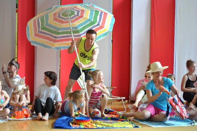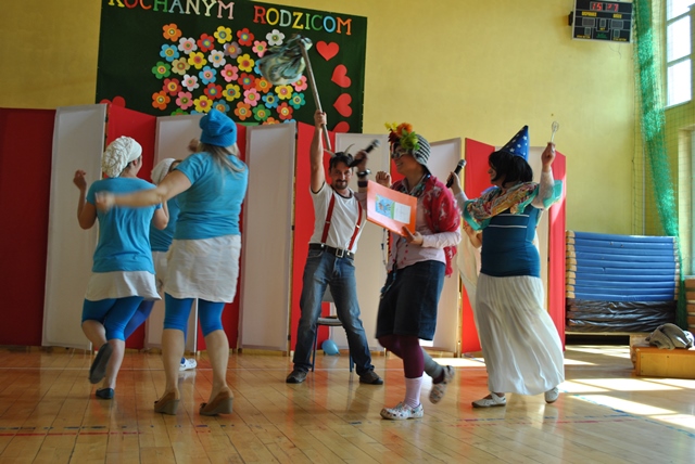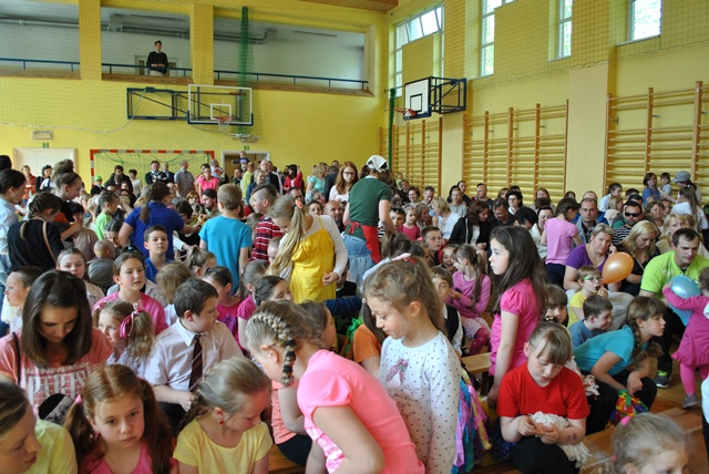 Głównym punktem festynu były występy uczniów dla rodziców oraz rodziców dla dzieci. Dyrektor szkoły Piotr Kopeć, Rada Rodziców oraz Iza i Kuba ze Szkolnej Rady Uczniowskiej przywitali zebranych na placu przy szkole i zaprosili do udziału we wspólnej zabawie. O godz. 15.00 w sali gimnastycznej rozpoczęły się występy, a oficjalnego rozpoczęcia dokonała Pani Naczelnik Wydziału Edukacji Zofia Kiełpińska. Pierwsi wystąpili członkowie zespołu góralskiego, prowadzonego przez Annę i Adama Kułach. Był śpiew, muzyka i taniec góralski. Następnie do akcji przystąpili rodzice, którzy brawurowo odegrali spektakl „O koziołku, nie-matołku”. Był to specjalnie przygotowany występ dla najmłodszych z okazji Dnia Dziecka. Potem uczniowie wystąpili dla swoich rodziców. Uczniowie klas pierwszych przygotowani przez wychowawczynie - mgr Monikę Bobak i Annę Kowalską-Konieczną przygotowali występ taneczny. Uczniowie klas II pod opieką wychowawczyń: mgr Beaty Piskorskiej, mgr Martę Kruczek i mgr Izabeli Gąsienicy-Walczak przedstawili bardzo ciekawe scenki teatralne dla Mamy i Taty. Następnie uczniowie klas III przygotowani przez mgr Ewę Franusik-Schastok, mgr Elżbietę Mozdyniewicz oraz mgr Monikę Diurczak zatańczyli i zaśpiewali dla swoich rodziców. Po występach przedstawiciele Szkolnej Rady Uczniowskiej: Iza Bachleda-Wraj i Kuba Gąsienica-Fronek złożyli wszystkim rodzicom i opiekunom najlepsze życzenia, a uczniowie wręczyli rodzicom rożki z cukierkami. Nie był to koniec występów. Bowiem po chwili wystąpiła grupa cyrkowo-akrobatyczna z udziałem naszych uczniów. Grupa przygotowana przez Panią Ewę Pręgowską wprawiła w zachwyt publiczność, która mogła zobaczyć trudne układy akrobatyczne, jazdę na monocyklu, elementy żonglerki i wiele innych. Ale największym przebojem był wspólny występ rodziców i uczniów „na plaży”. Na zakończenie wystąpiła grupa harcerek, w tym nasze absolwentki. Grupa ze Związku Harcerstwa Rzeczpospolitej gimnazjów przedstawiła spektakl o królach. Dziękujemy naszym uczniom i absolwentom oraz uczniom z innych szkół, którzy przedstawili okolicznościowy występ.