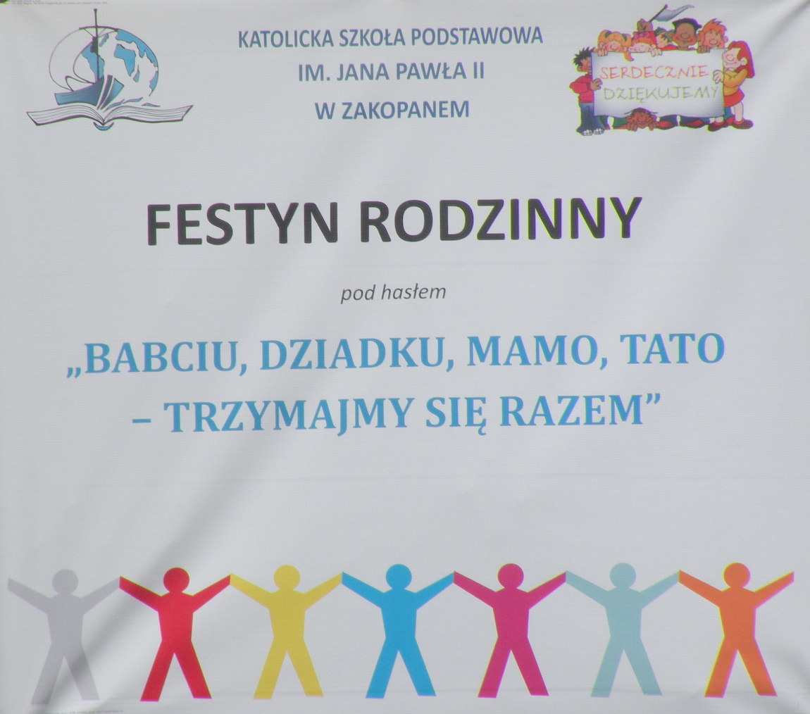 13 czerwca na boisku przy Katolickiej Szkole Podstawowej im. Jana Pawła II w Zakopanem odbył się już IV Festyn Rodzinny pod hasłem „Babciu, Dziadku, Mamo, Tato – Trzymajmy się RAZEM”. Na uroczystość tą zostały zaproszone władze Miasta Zakopane, które objęły ją swym patronatem. Zastępca Burmistrza Miasta Zakopane Agnieszka Nowak-Gąsienica podziękowała za zaproszenie i wyraziła swą radość z podejmowania tego typu inicjatyw, przekazując na ręce Pani Dyrektor słodki upominek dla uczniów.