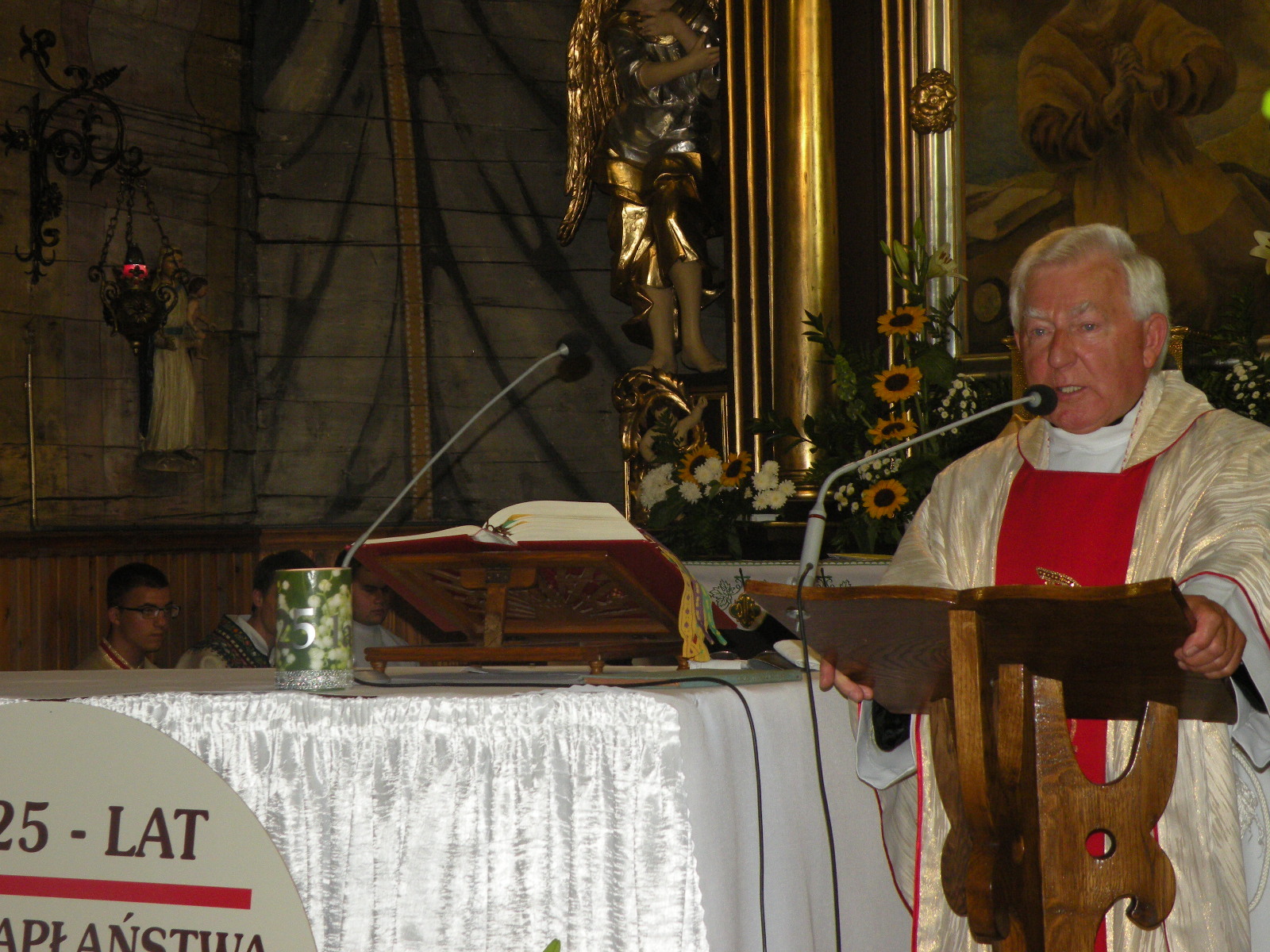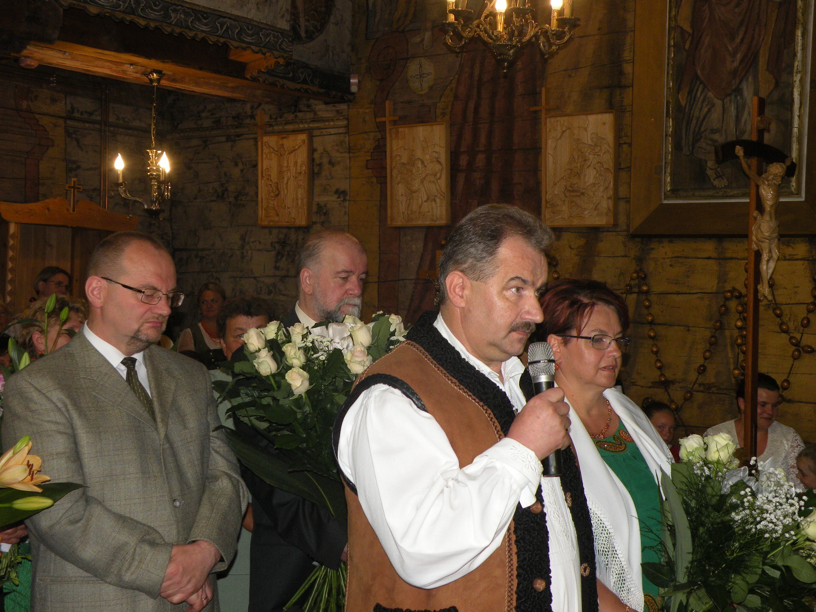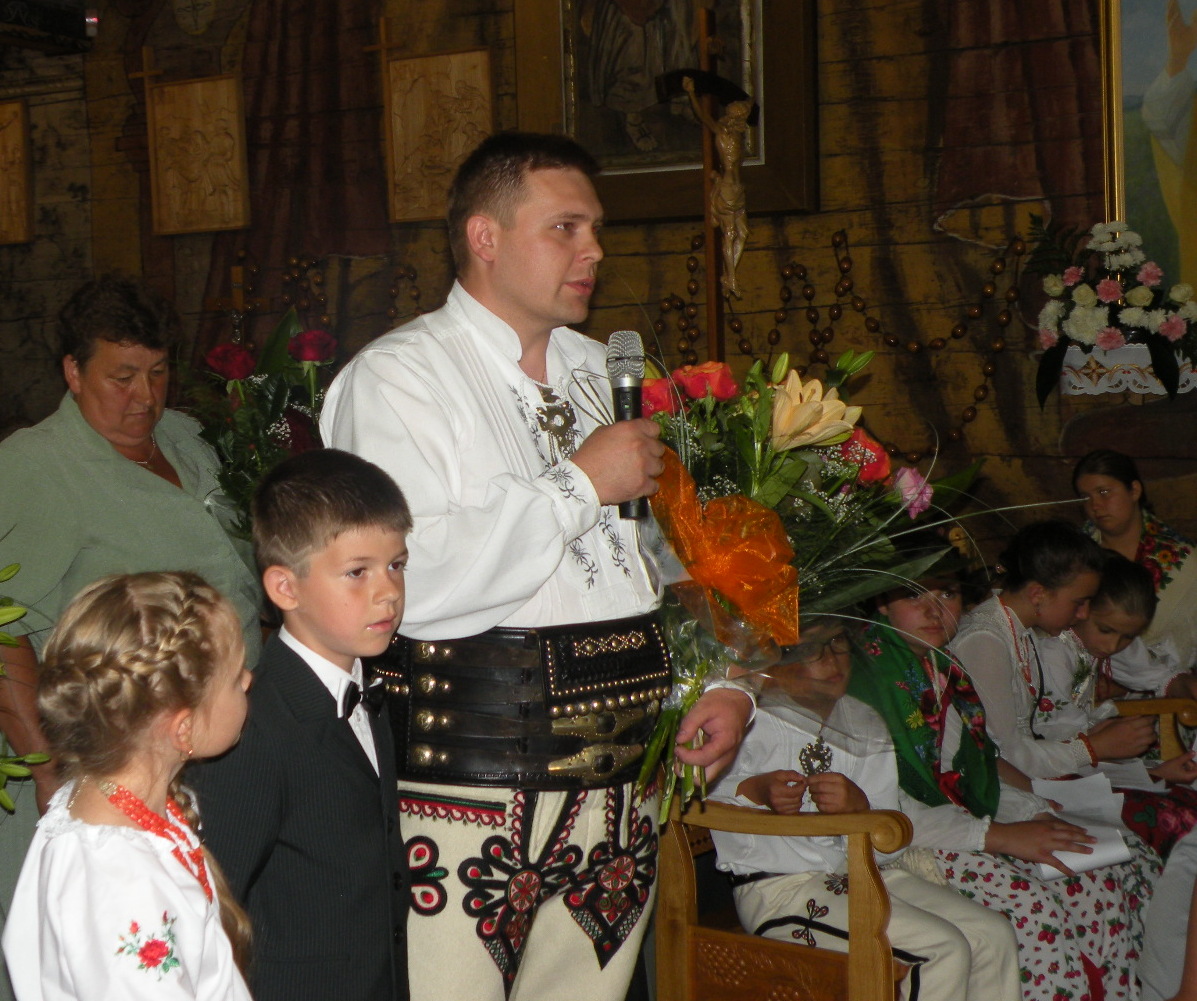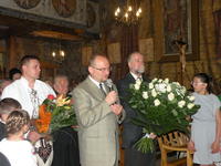 Na koniec mszy delegacje reprezentujące parafian, powiat, gminę, grupy modlitewne i Stowarzyszenie Przyjaciół Twórczości Jana Kasprowicza złożyły życzenia i wręczały kwiaty Jubilatowi. Po uroczystościach w kościele zorganizowano dla przybyłych przyjęcie na wolnym powietrzu.