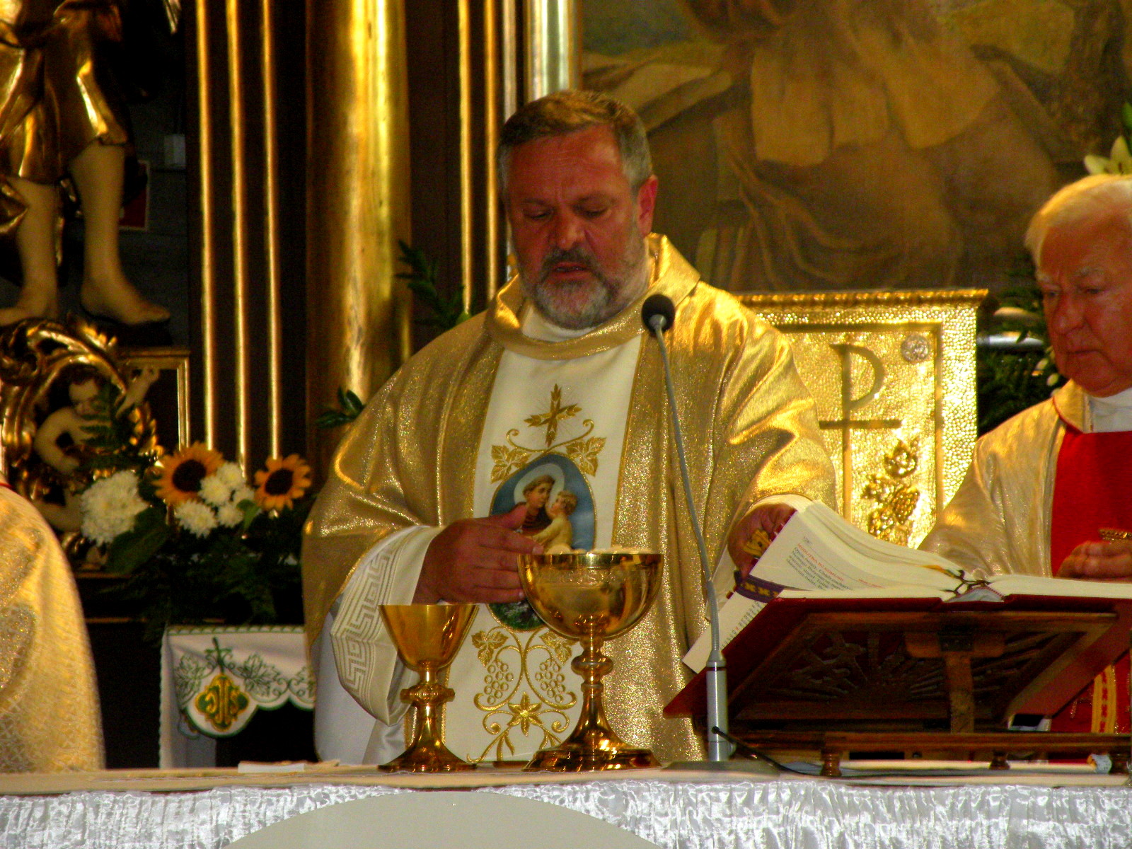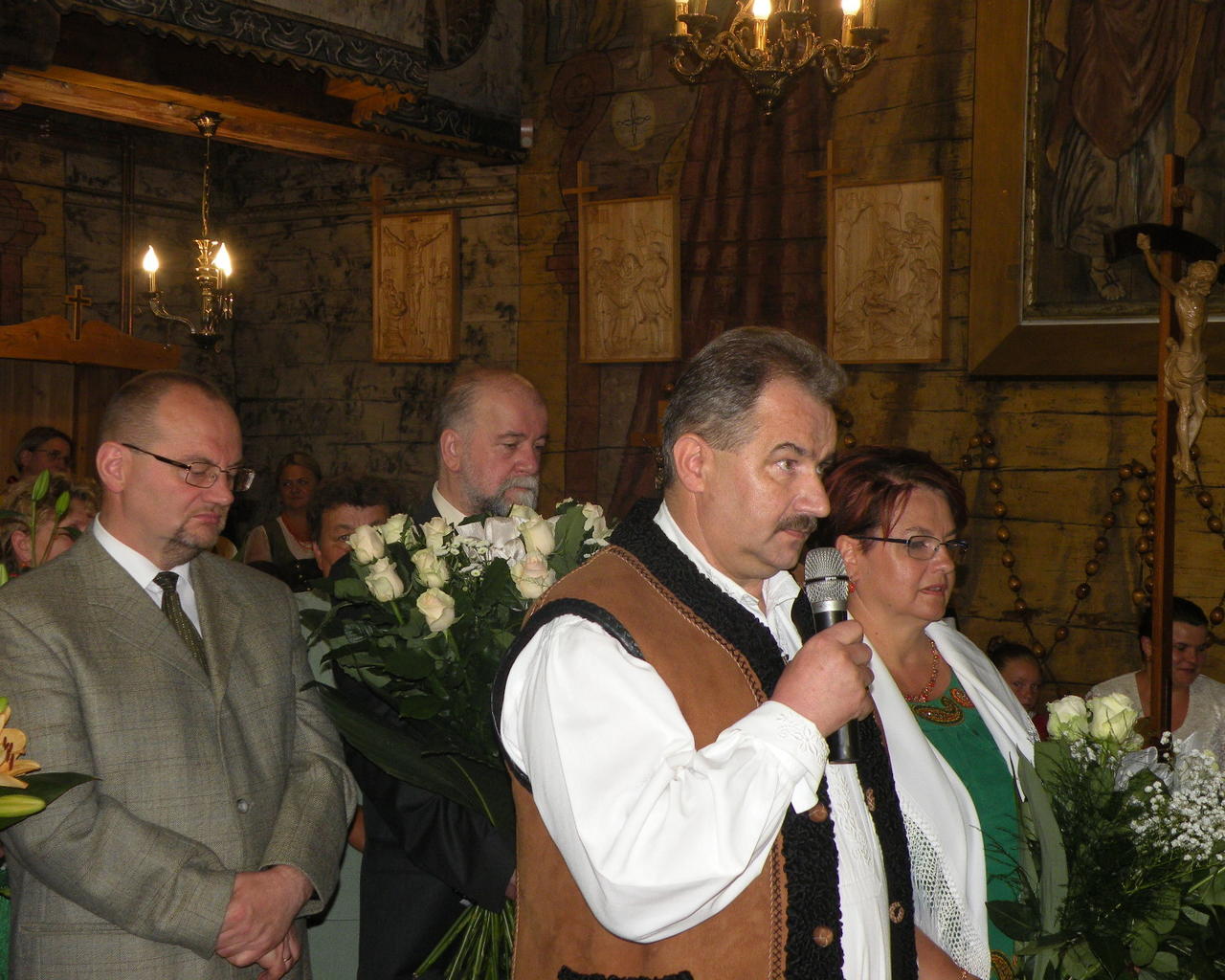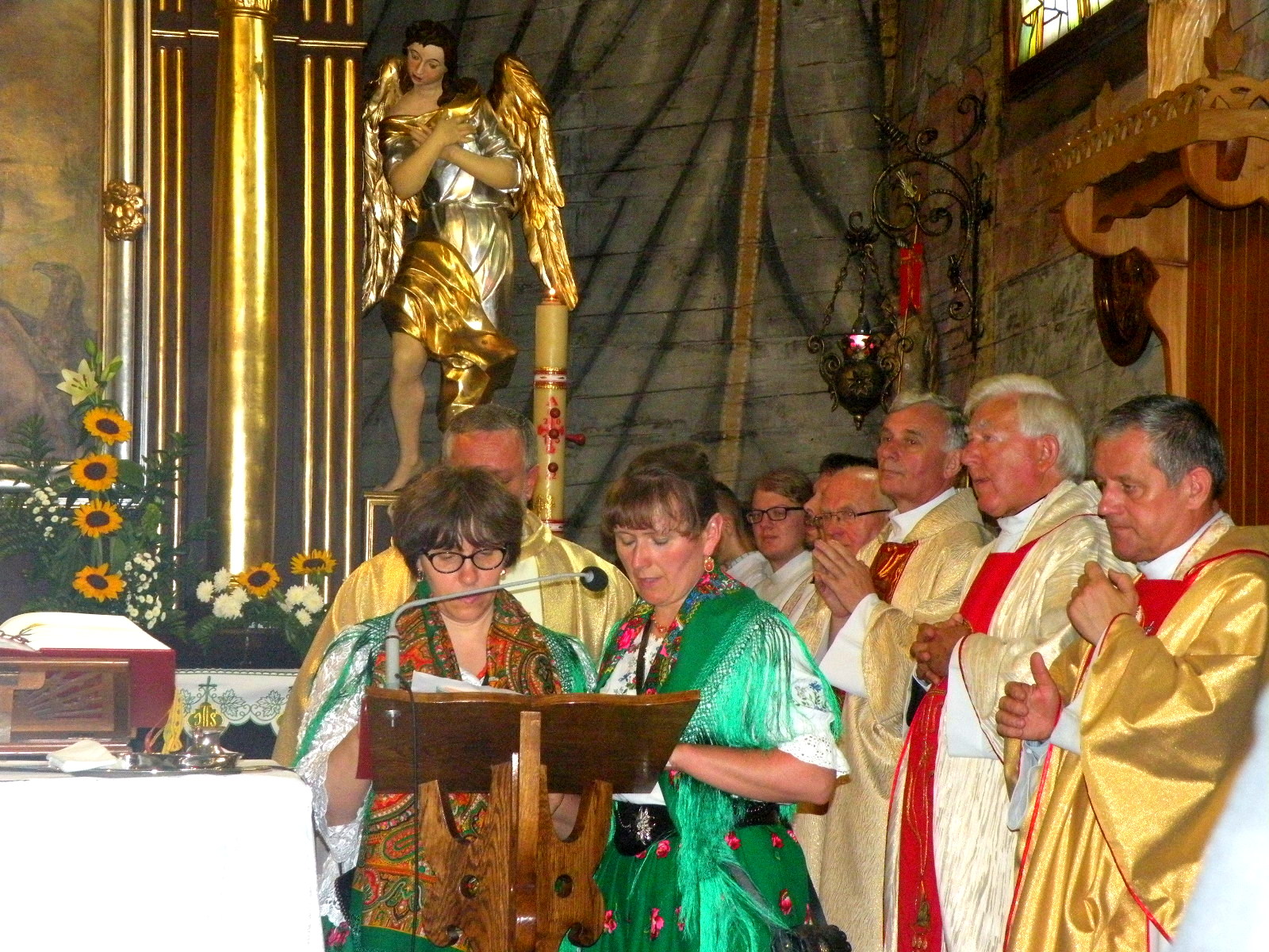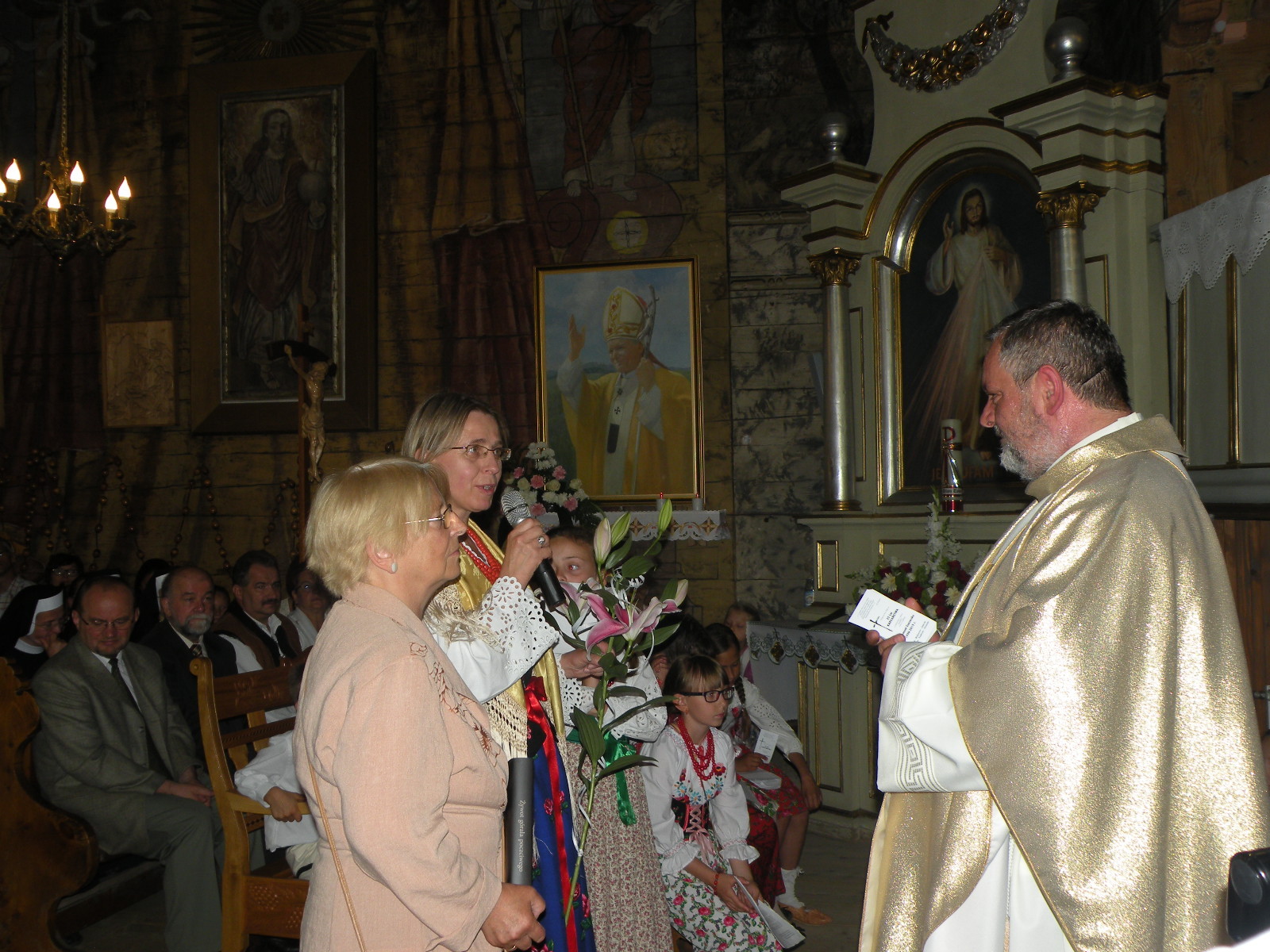 Na koniec mszy delegacje reprezentujące parafian, powiat, gminę, grupy modlitewne i Stowarzyszenie Przyjaciół Twórczości Jana Kasprowicza złożyły życzenia i wręczały kwiaty Jubilatowi. Po uroczystościach w kościele zorganizowano dla przybyłych przyjęcie na wolnym powietrzu.