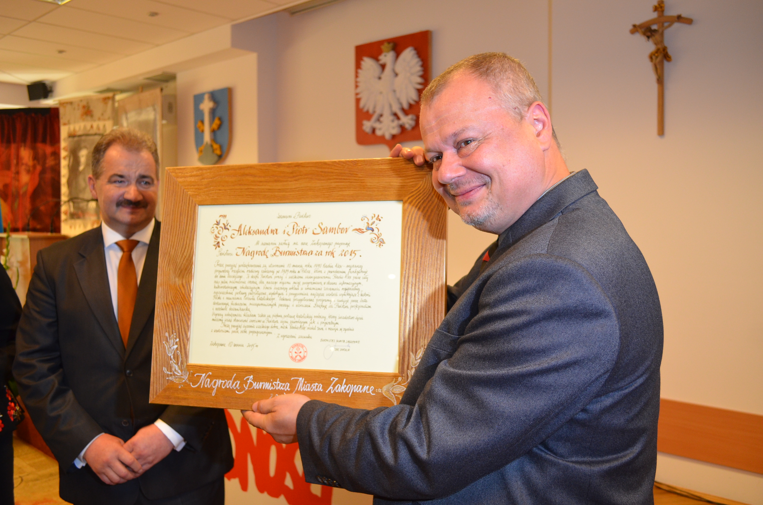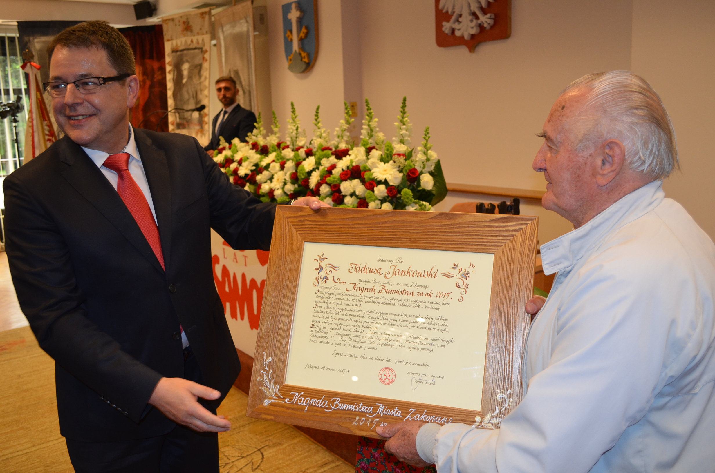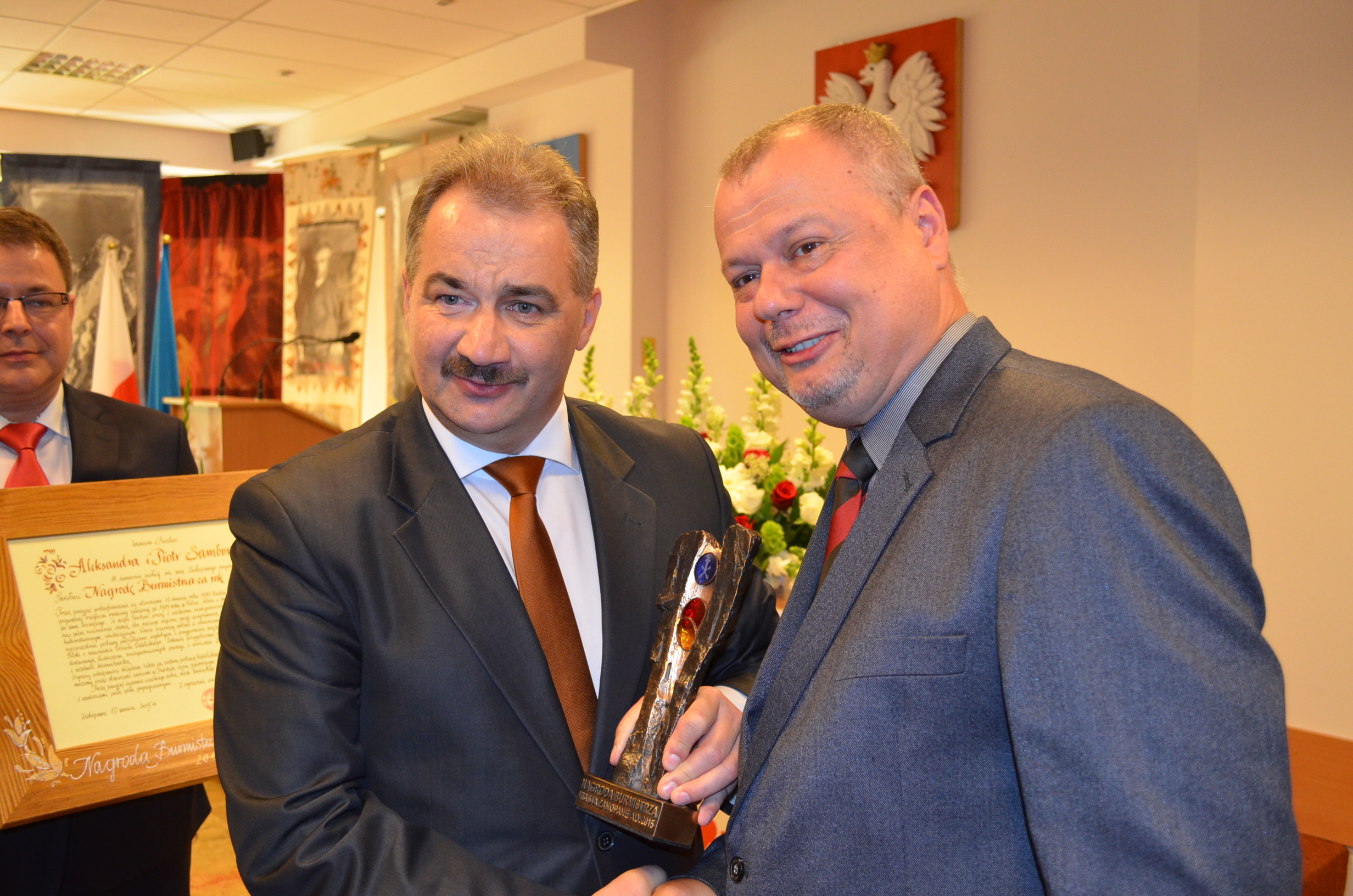 Podczas uroczystej sesji Rady Miasta Zakopane z okazji „25 lat Samorządności” Nagrody Burmistrza za rok 2015 r. otrzymali: Maria Mateja Torbiarz, Tadeusz Jankowski oraz Aleksandra i Piotr Samborowie. - Chcę pogratulować, ale przede wszystkim podziękować, bo to właśnie dzięki takim ludziom jak Państwo, Zakopane jest na ustach wszystkich, a my zakopiańczycy możemy czuć się dumnymi. Mam nadzieję, że nadal będziemy współpracować i działać na rzecz Zakopanego, naszego ukochanego miasta – powiedział burmistrz Leszek Dorula.