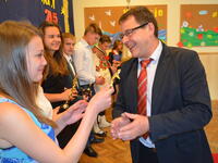 - Przede wszystkim życzę Wam bezpiecznych i udanych wakacji. Nie spędzajcie ich jednak w domu przed telewizorem lub komputerem, ale aktywnie, korzystającz dobrodziejstw natury i otwartych boisk na terenie naszego miasta – zachęcał burmistrz Leszek Dorula.