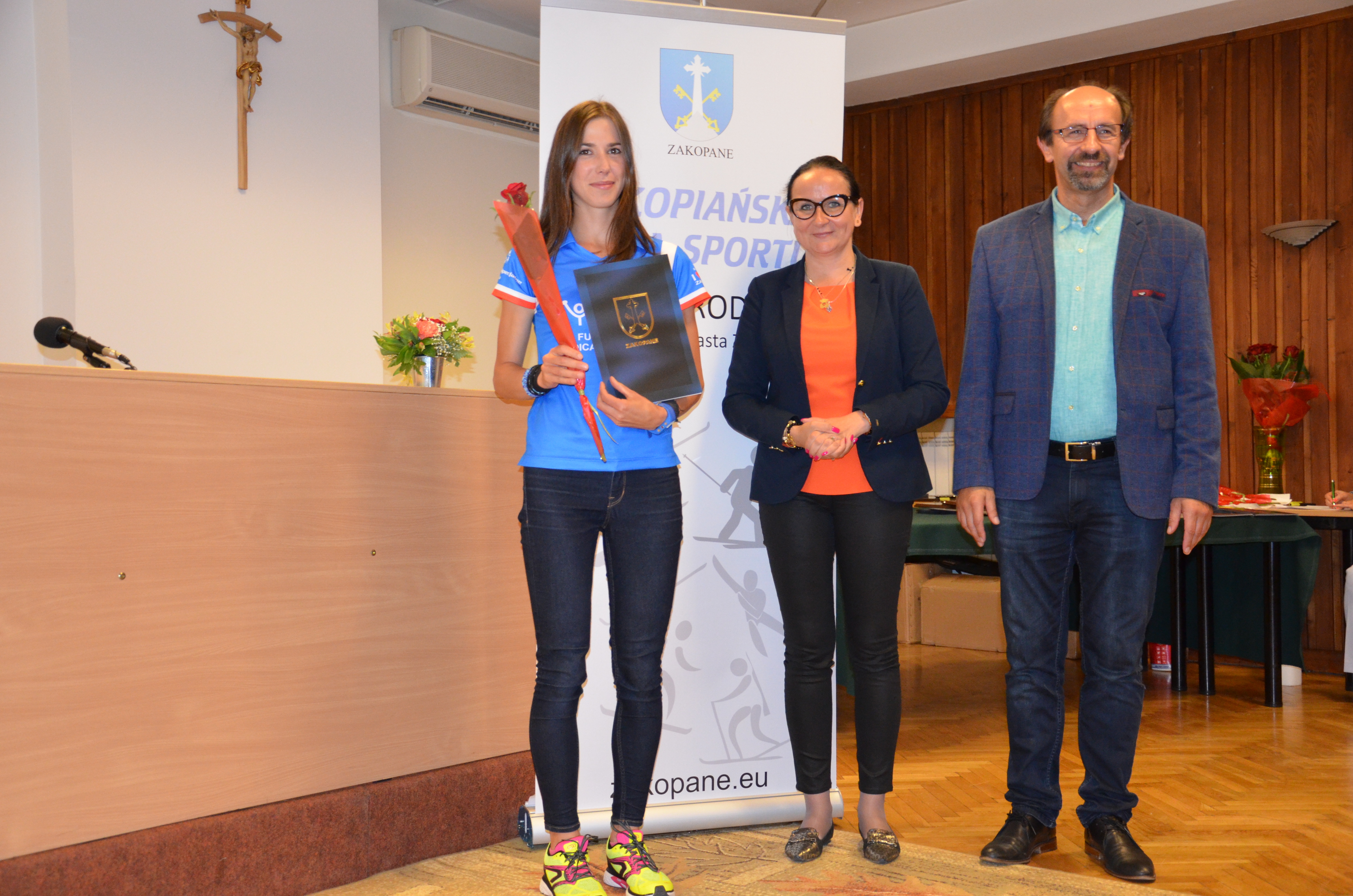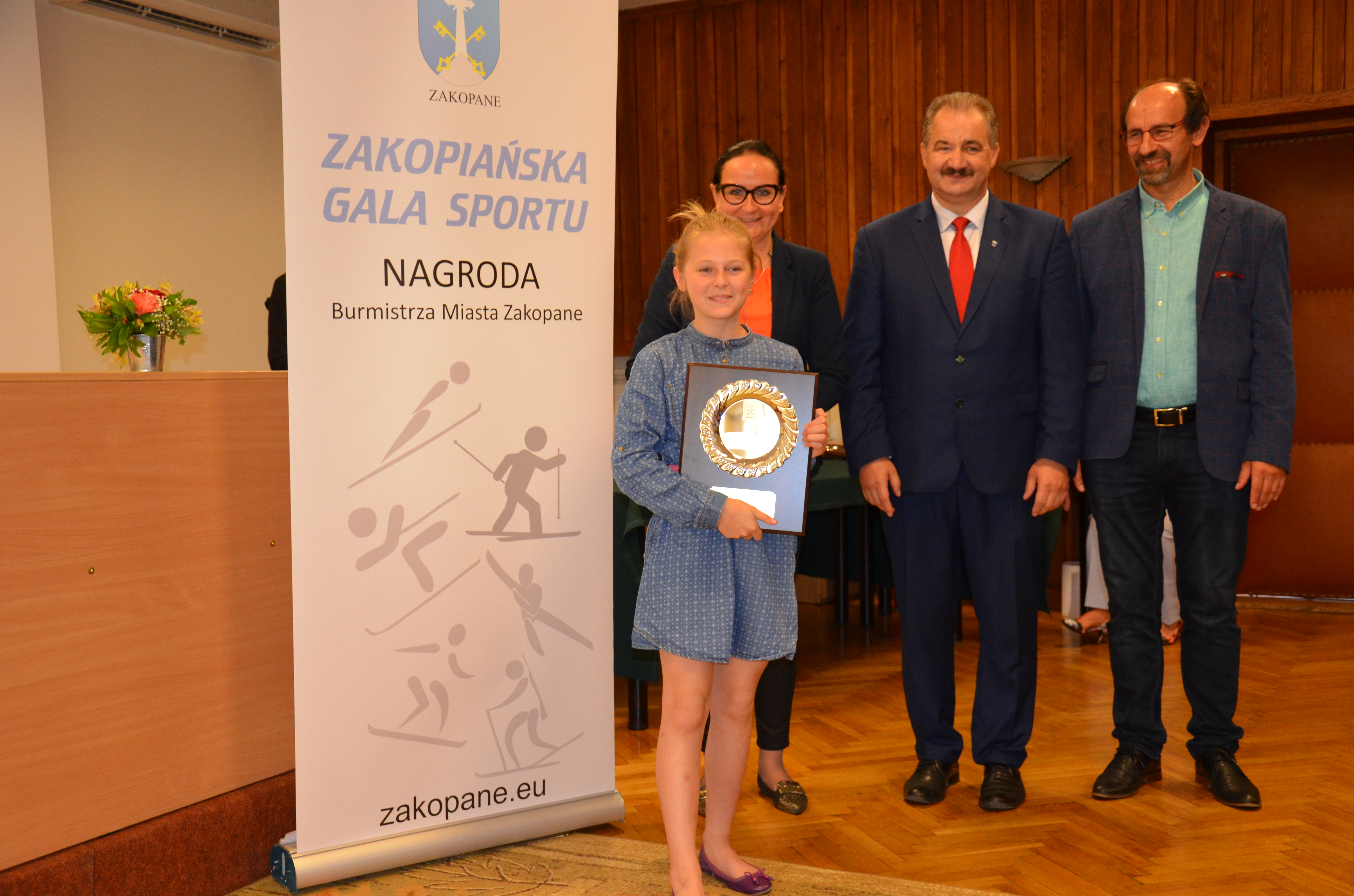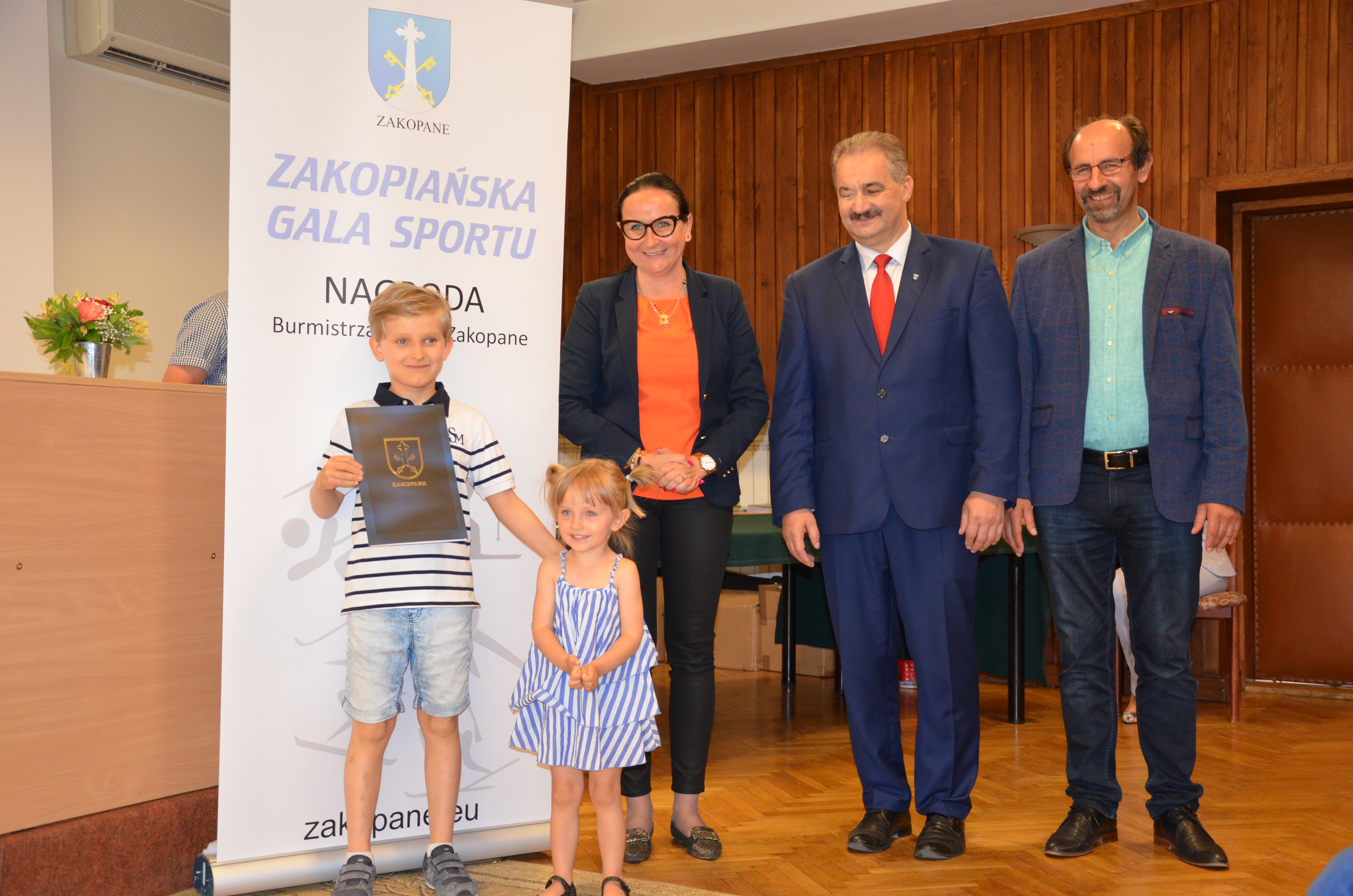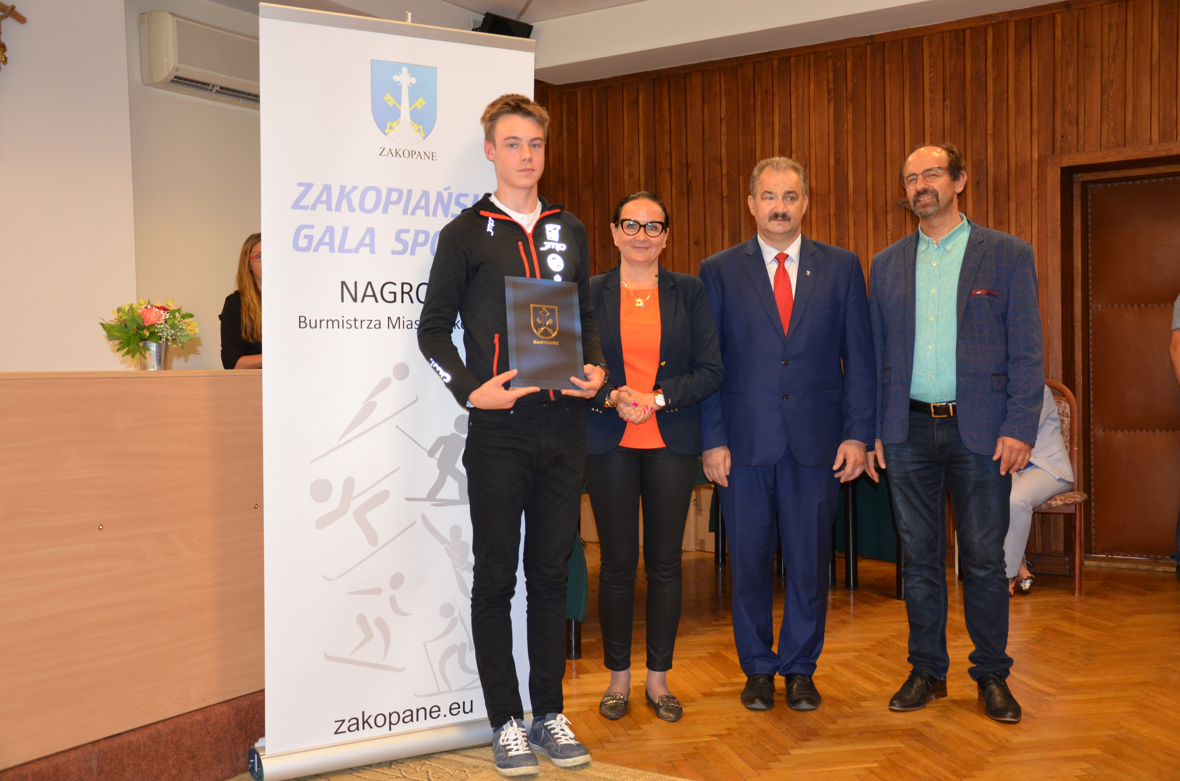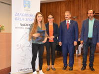 Burmistrz Miasta Zakopane Leszek Dorula wraz z wiceburmistrz Agnieszką Nowak-Gąsienicą i radnym Janem Glucem podczas uroczystego zakończenia sezonu sportowego 2017/2018 wręczyli nagrody i wyróżnienia dla trenerów i zawodników, którzy osiągnęli wysokie wyniki sportowe w międzynarodowym i krajowym współzawodnictwie.