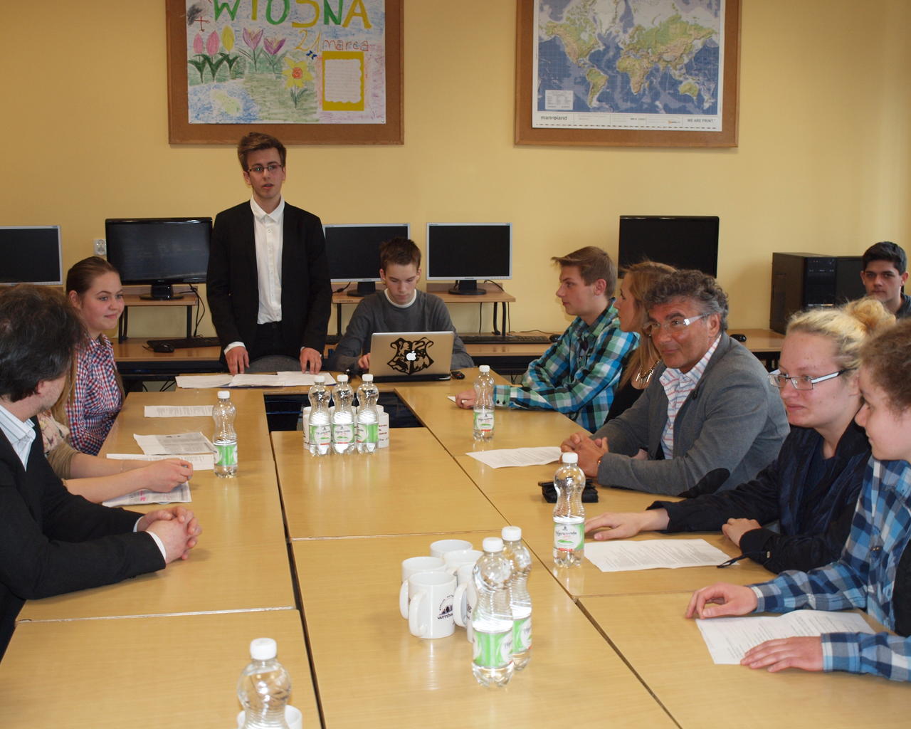 W związku z zadaniem rekrutacyjnym zorganizowali w siedzibie szkoły debatę na temat Młodzi aktywni? Co zrobić, żeby młodzież brała aktywny udział w wyborach i życiu społecznym? Zastosowanie metody AKWARIUM pozwoliło uczniom i ekspertom wypowiadać się na równych prawach. W debacie wzięła udział młodzież w/w Zespołu Szkół, jak również zaproszeni eksperci: opiekun Młodzieżowej Rady Miasta Zakopane – wiceburmistrz mgr Mariusz Koperski, przedstawiciel szkoły o tym samy profilu kształcenia – dyrektor Zespołu Szkół Ogólnokształcących im. Oswalda Balzera w Zakopanem mgr Marek Donatowicz, dyrektor Zespołu Społecznych Szkół Ogólnokształcących STO w Zakopanem mgr Barbara Wilczyńska i nauczyciel historii mgr Halina Warchoł.