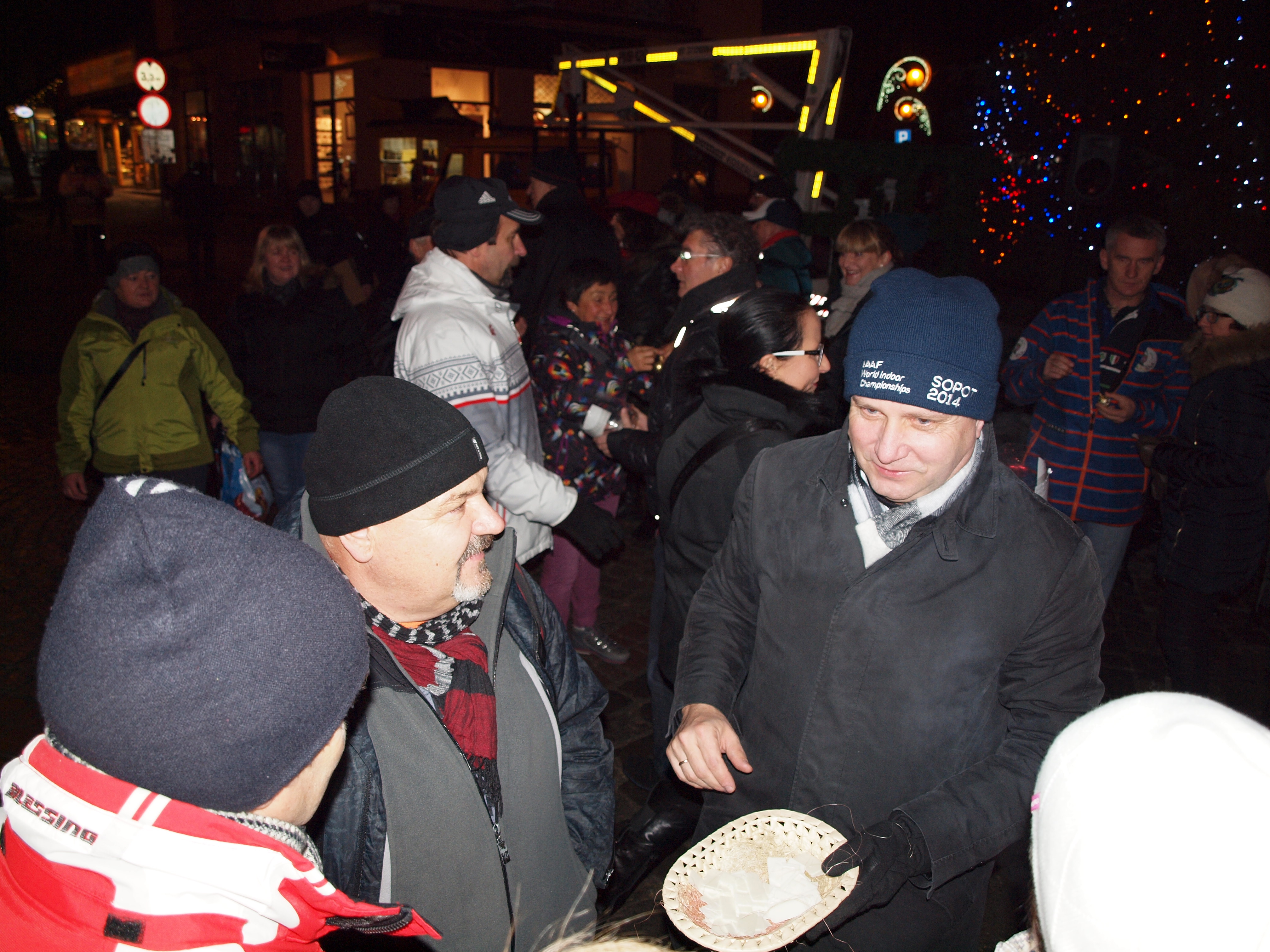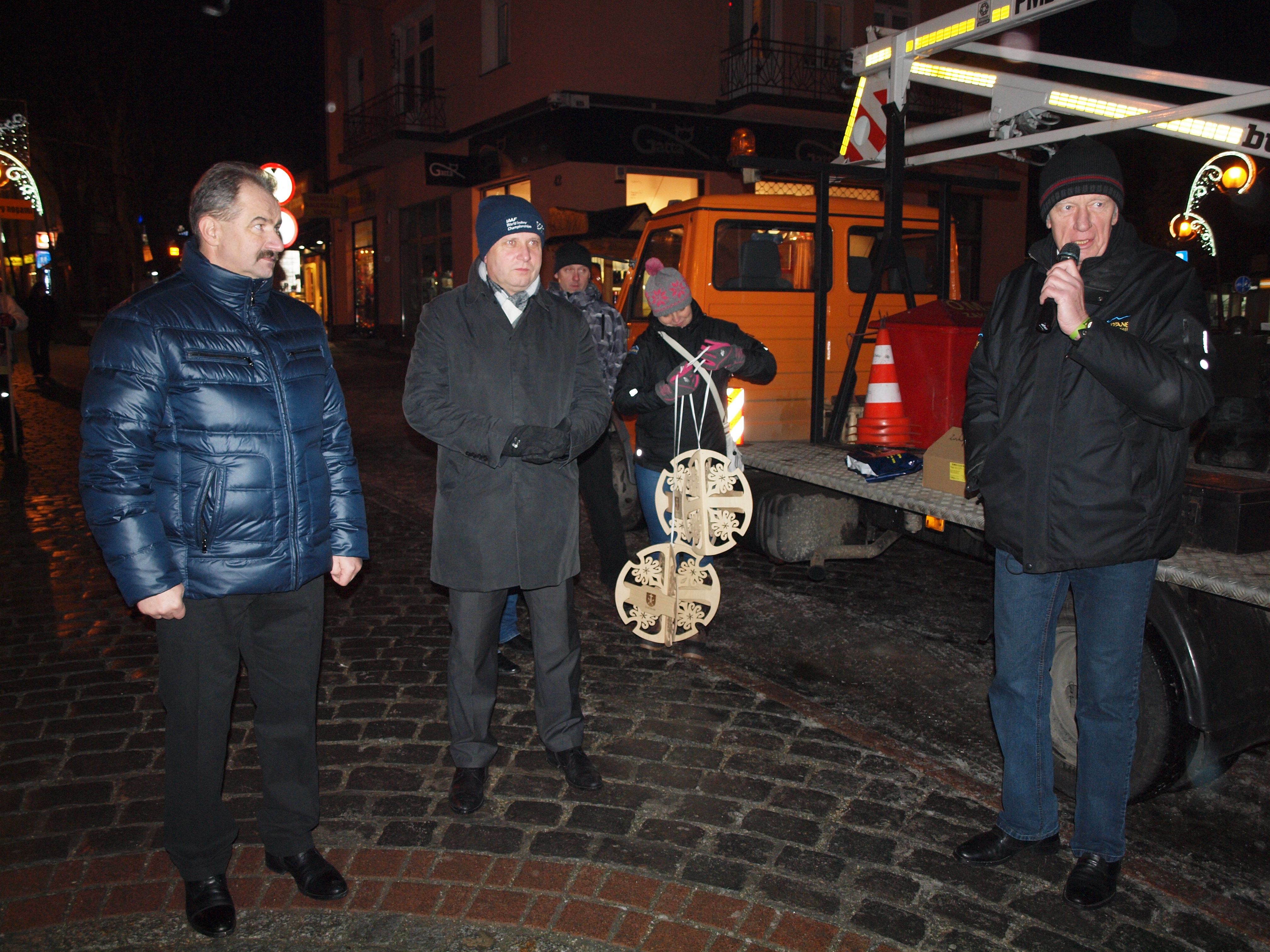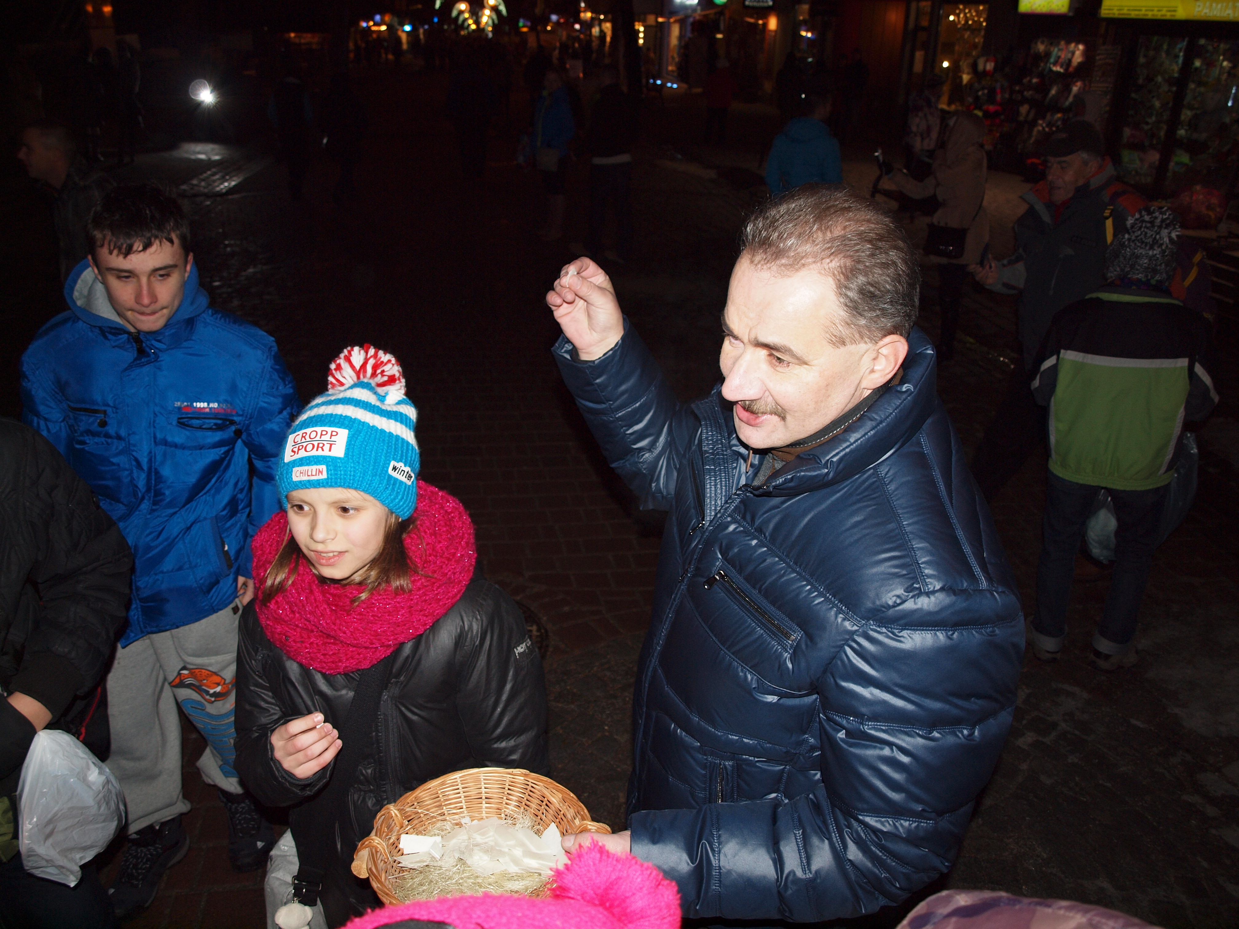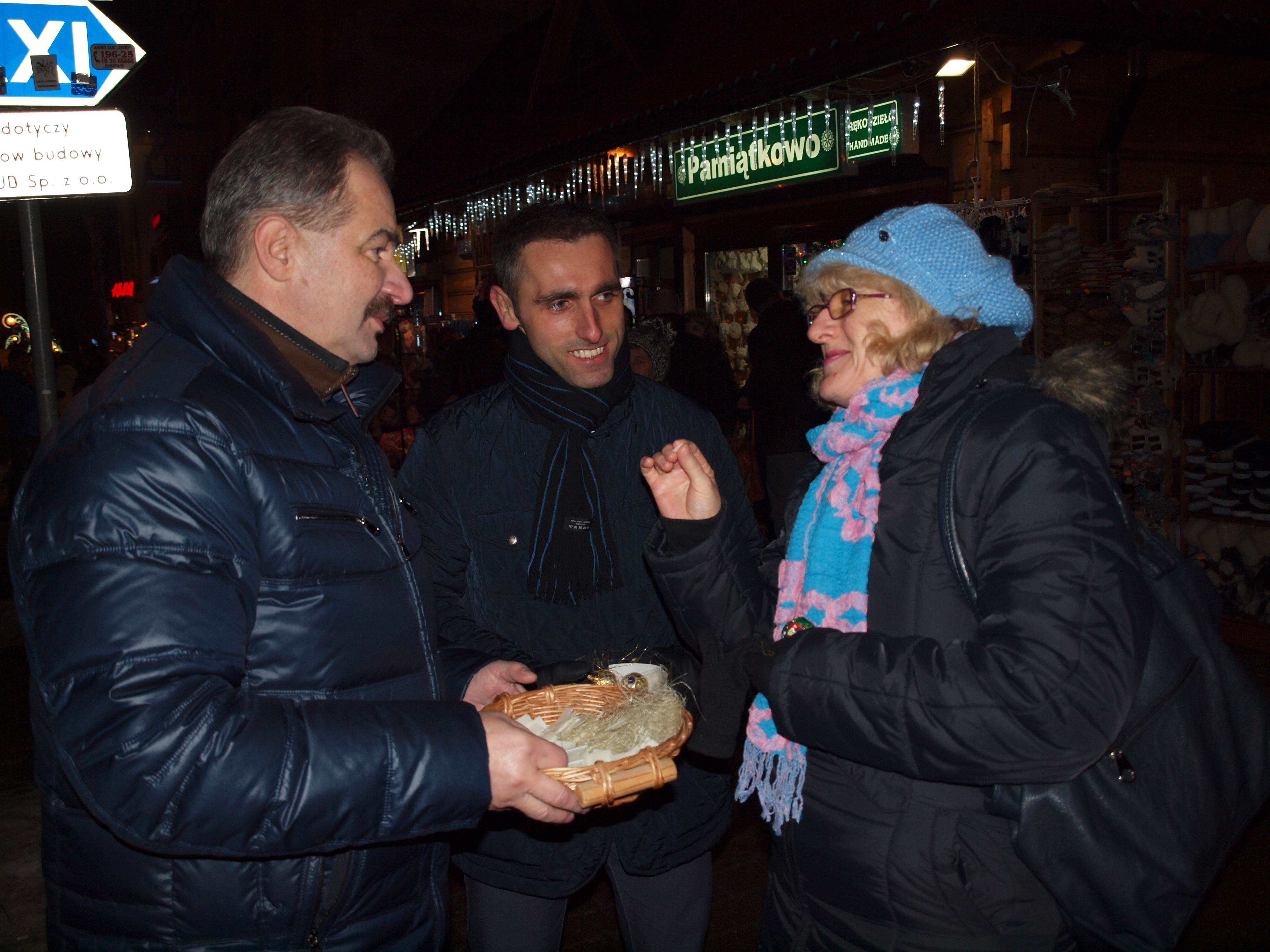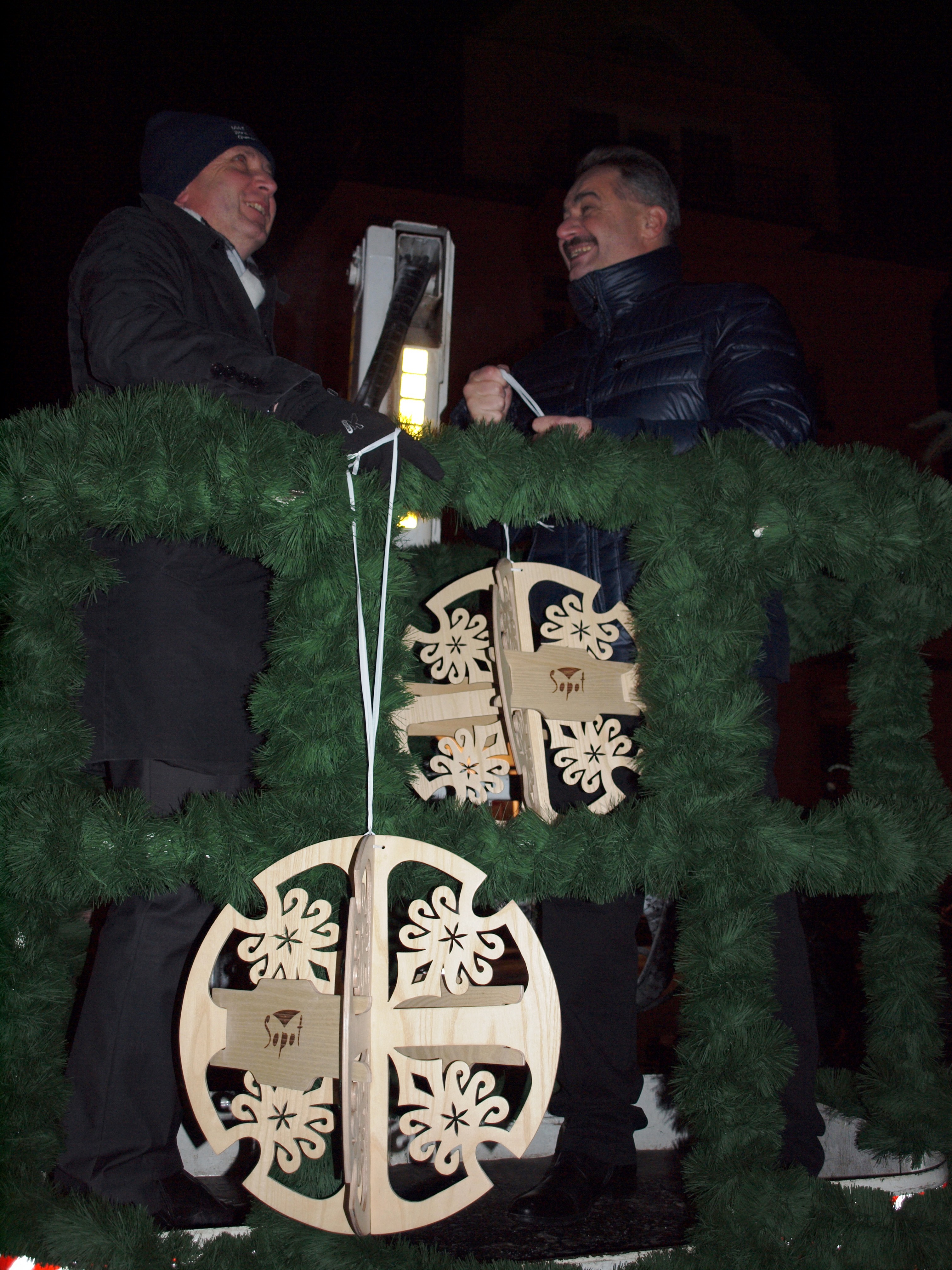 Przy oczku wodnym na Krupówkach, 13 grudnia, burmistrz Zakopanego Leszek Dorula i prezydent Sopotu Jacek Karnowski rozświetlili zakopiańską choinkę.