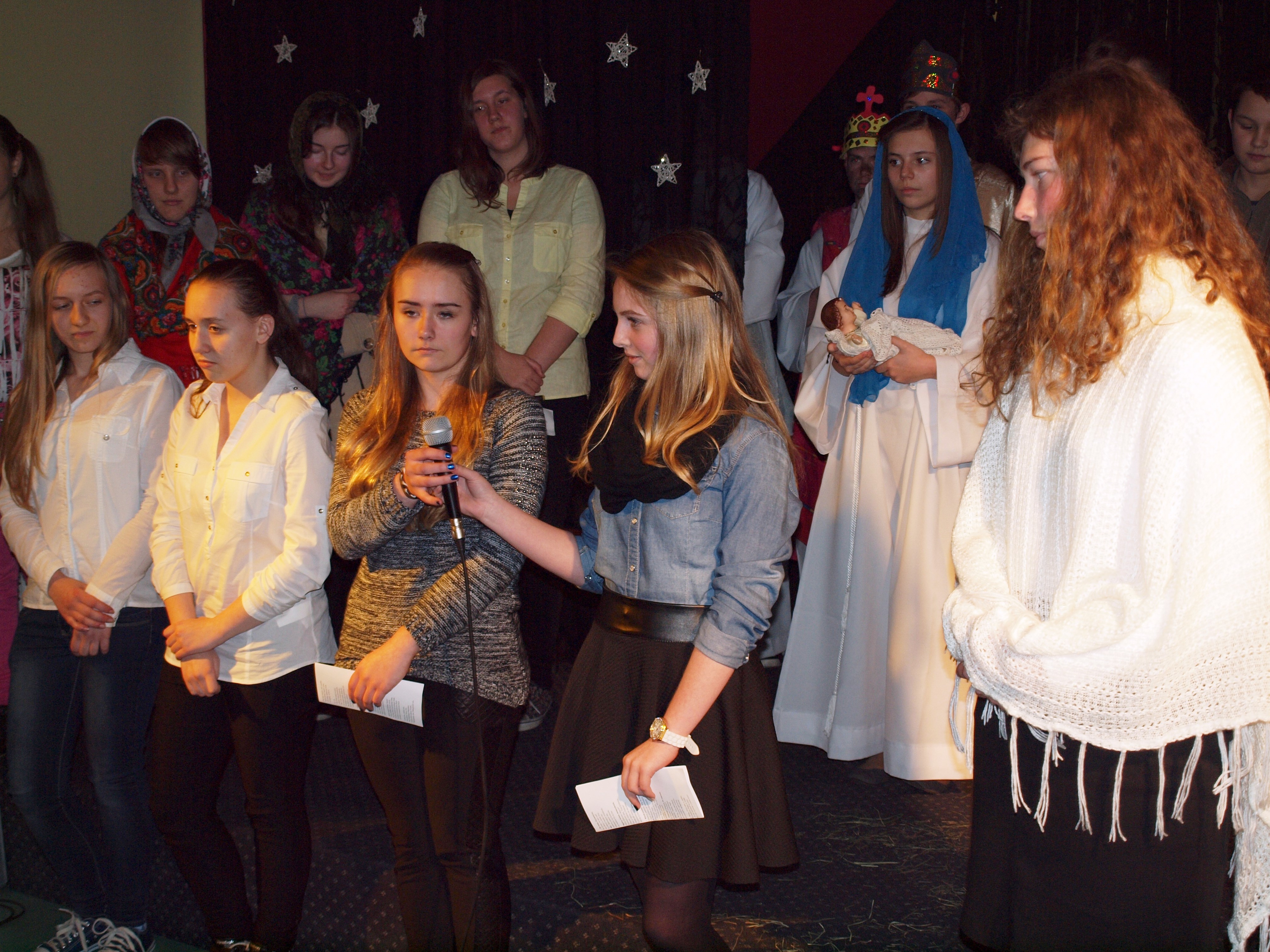 Młodzież z Gimnazjum Nr 1 zaprezentowała przedstawienie bożonarodzeniowe "Świąteczna ulica" stawiające pytania o nasze miejsce w świecie, któremu towarzyszyło wydawnictwo "Kim jesteśmy?" - Gimnazjum nr 1 artystycznie.