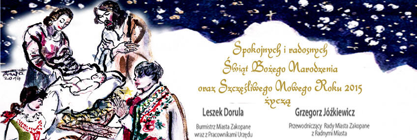 Spokojnych i radosnych świąt Bożego Narodzenia oraz szczęśliwego Nowego Roku 2015 życzą burmistrz Leszek Dorula wraz z pracownikami Urzędu i przewodniczący Rady Miasta Zakopane Grzegorz Jóźkiewicz z radnymi.