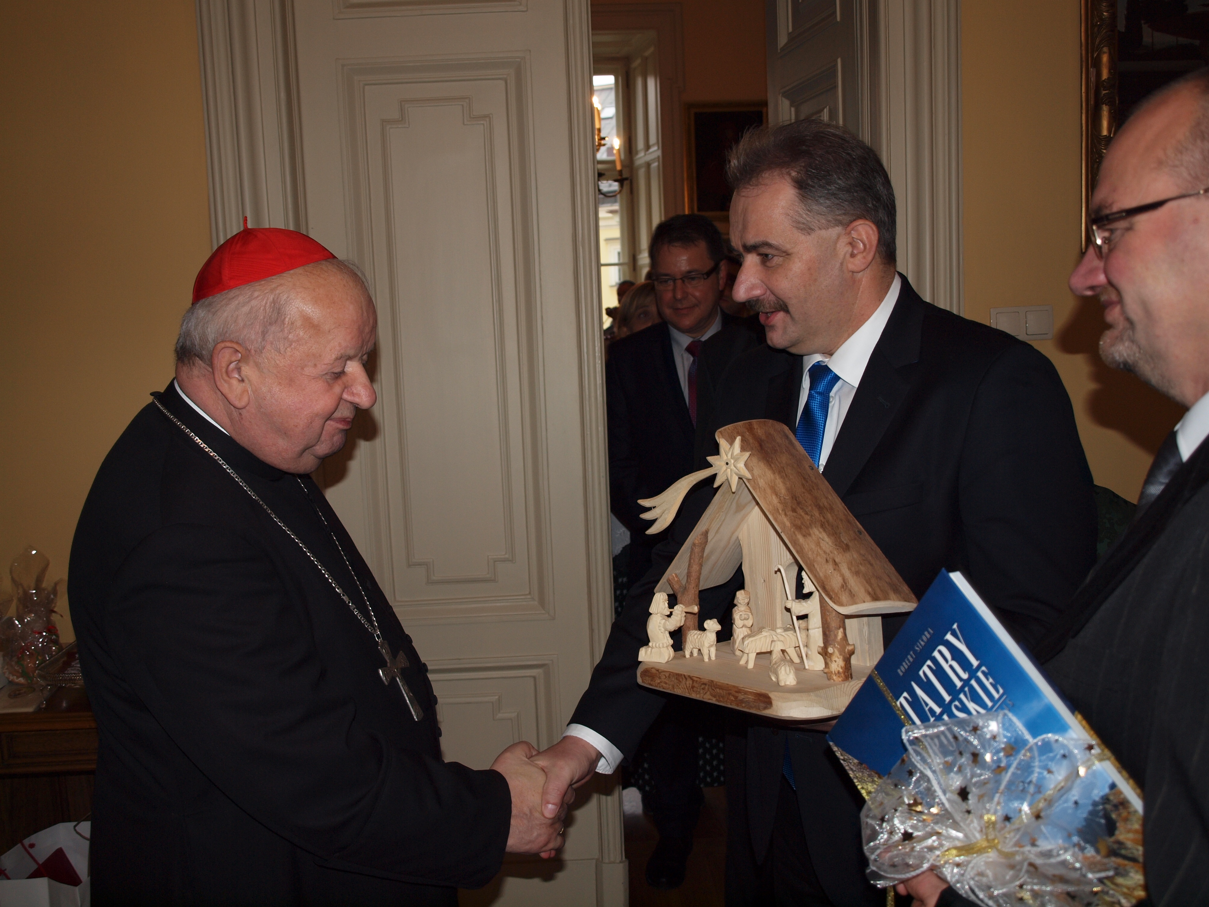 Delegacja na czele ze starostą tatrzańskim Piotrem Bąkiem, burmistrzem Leszkiem Dorulą i przewodniczącym Rady Miasta Grzegorzem Jóźkiewiczem przywiozła Księdzu Kardynałowi najlepsze życzenia spod Giewontu, tradycyjną szopkę i góralską muzykę. Nowe władze przedstawił Kardynałowi proboszcz Parafii Najświętszej Rodziny Bogusław Filipiak.