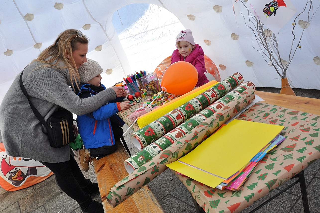 Natomiast na stoiskach zakopiańskich szkół i fundacji można było kupić niepowtarzalne świąteczne ozdoby, a dzieci ze szkół i przedszkoli ozdabiali świąteczne drzewka i robiły wspólny łańcuch, który na zakończenie dnia, podczas odpalenia światełek na Placu Niepodległości został przekazany na ręce Burmistrzów Miasta Zakopane i Świętego Mikołaja.
