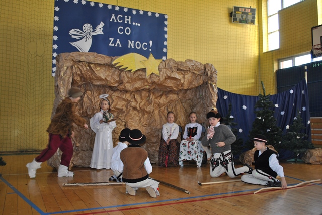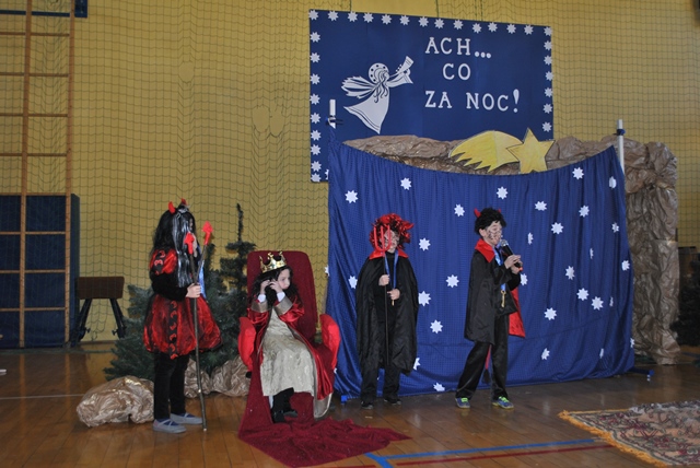 Uczniowie bardzo wiernie przedstawili sceny dotyczące narodzin Jezusa Chrystusa, ale również odegrali ciekawe dramy z udziałem Heroda i wróbli. Byli oczywiście Trzej Królowie, były Aniołki i pięknie zaśpiewane pastorałki. Po występie dyrektor szkoły podziękował uczniom, ale również wychowawczyniom, które przygotowały uczniów: Pani mgr Beacie Piskorskiej, Pani mgr Marcie Kruczek i Pani mgr Beacie Piskorskiej.