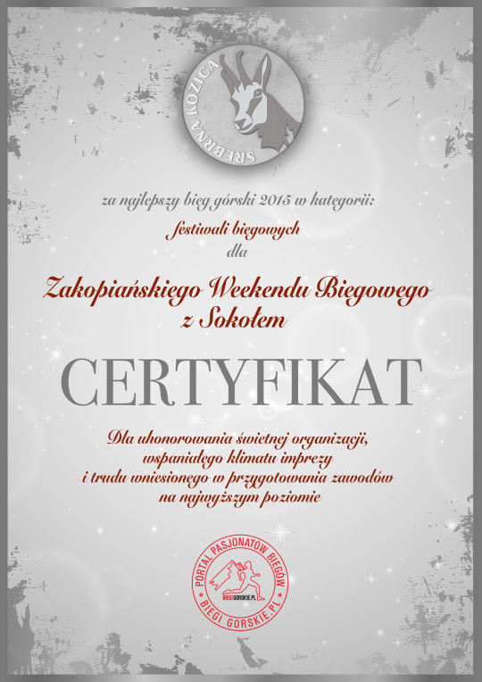 - Cieszymy się bardzo, że nasze biegi znalazły się w czołówce tego prestiżowego konkursu. Jest to dla nas ogromne wyróżnienie. Jesteśmy wdzięczni wszystkim, którzy przyczynili się do sprawnej organizacji tegorocznego Zakopiańskiego Weekendu Biegowego z Sokołem. Biegaczom, którzy tak licznie i chętnie startują w naszych zawodach, dziękujemy bardzo gorąco za dobre słowa i głosy oddane na "biegi sokole". Zapraszamy w 2016 roku. Postaramy się, żeby było jeszcze lepiej i ciekawiej – tak informację o przyznanych nagrodach komentują organizatorzy Zakopiańskiego Weekendu Biegowego z Sokołem.