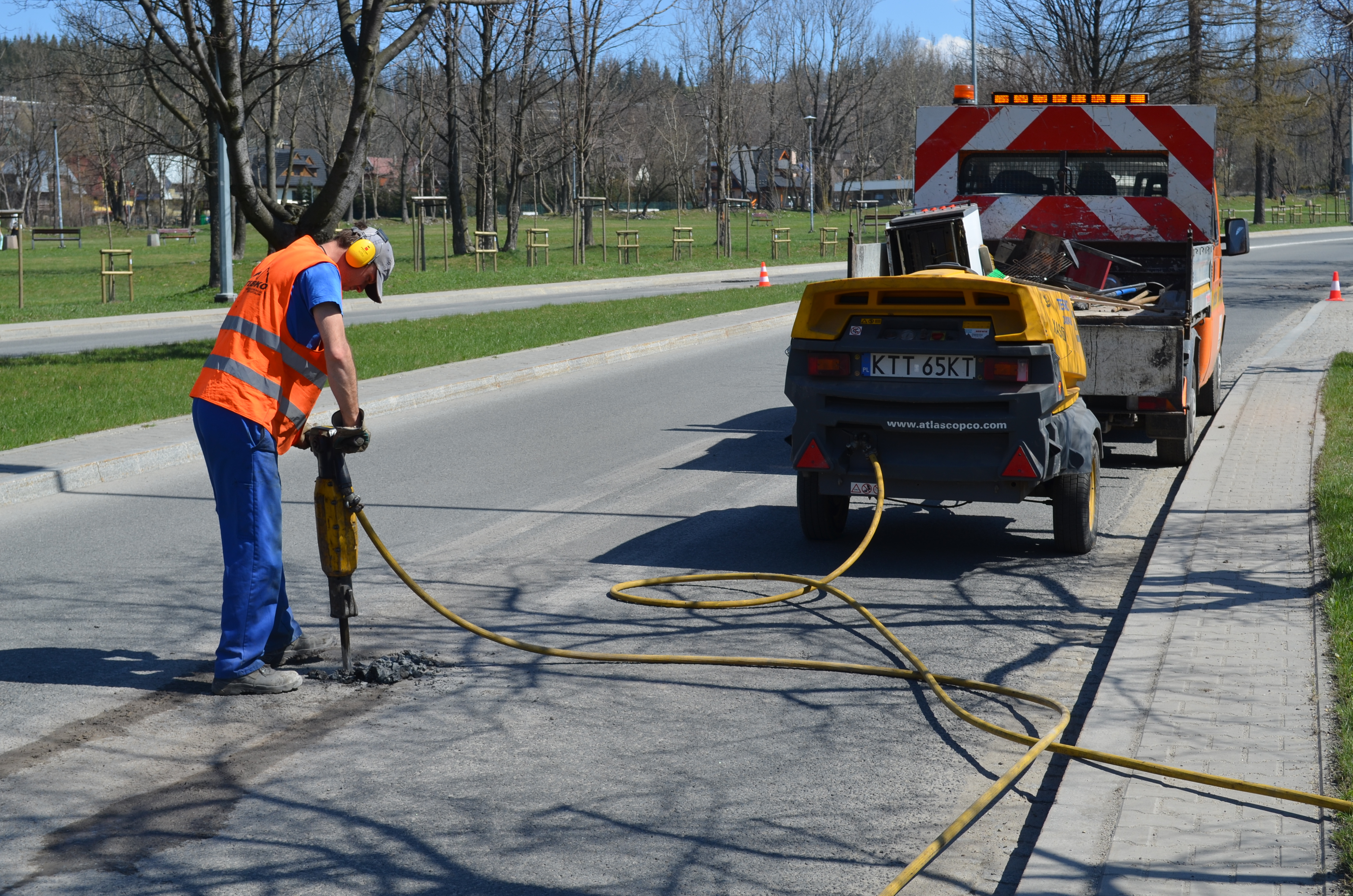 Tatrzańska Komunalna Grupa Kapitałowa Sp. z o.o. TESKO już na początku kwietnia od władz miasta otrzymała zlecenie na wykonanie prac, obejmujących uzupełnianie ubytków masą bitumiczną na gorąco na ulicach: Ustup, Nowotarska, Kościeliska, Aleje 3-ego Maja, Zamoyskiego, Bronisława Czecha, Chałubińskiego, Jagiellońska, Droga na Bystre, Droga na Antałówkę, Droga do Olczy, Guty-Bachledy-Spyrkówka, a także na Rondzie Solidarności, Rondzie Dmowskiego, Rondzie Jana Pawła II. Prace te są właśnie realizowane.