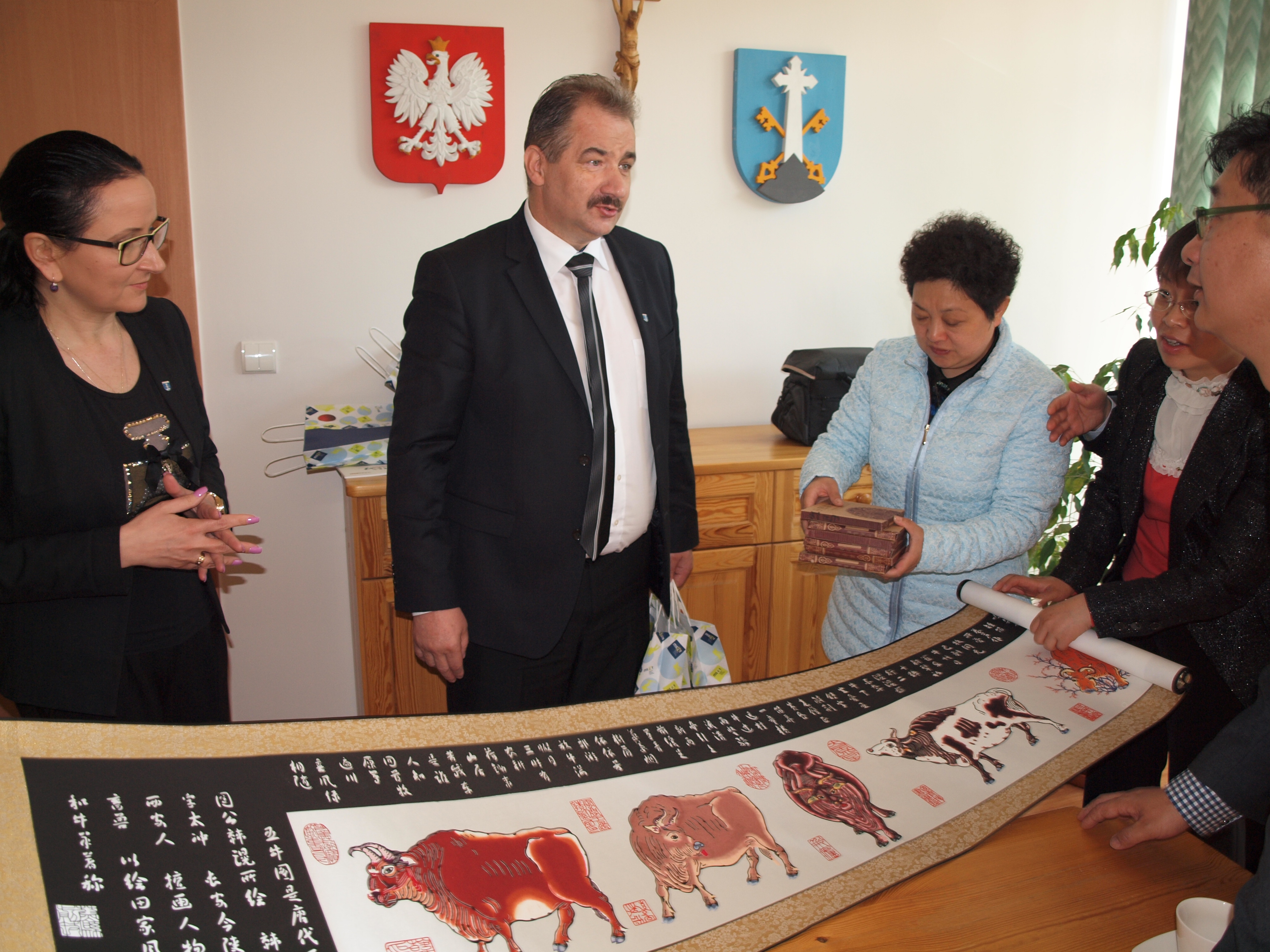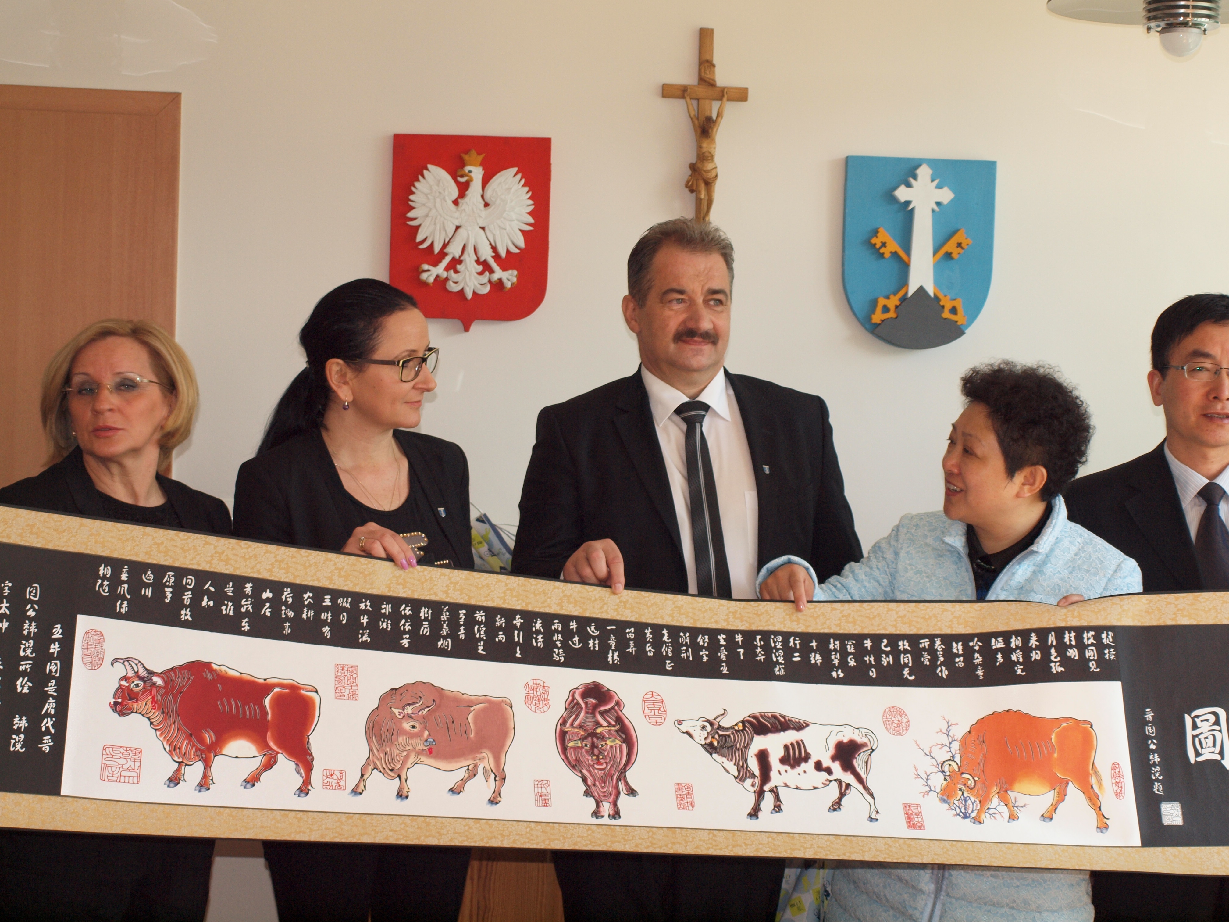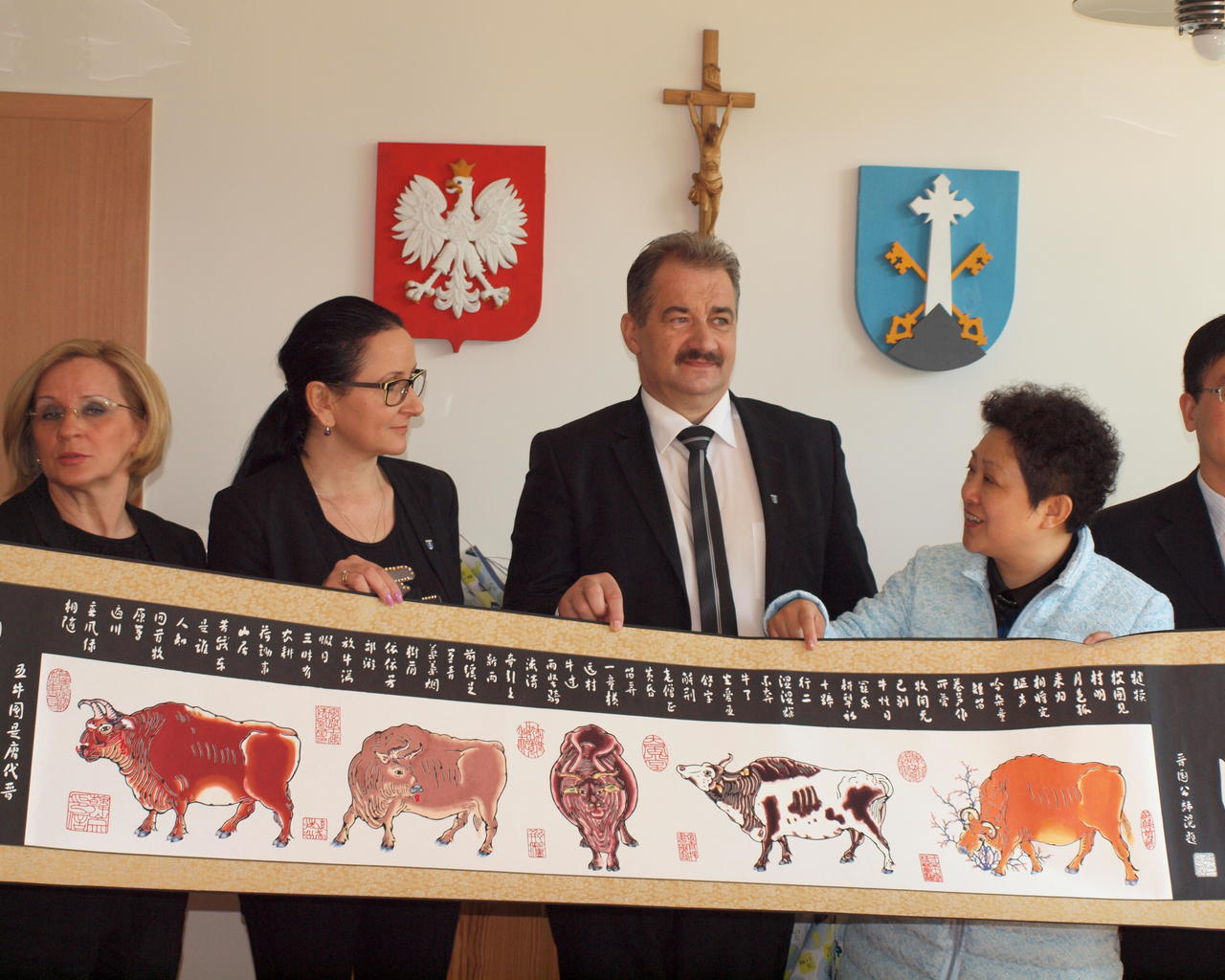 Na zdjęciu widać prezent od gości z Chin - obraz “Pięć wołów” (po chińsku tytuł brzmi: Wu niu tu) - jeden z dziesięciu najbardziej znanych obrazów w Chinach. Namalowany przez malarza i premiera z dynastii Tang: Han Huanga (618–907). Oryginał znajduje się w Muzeum Pałacowym w Pekinie. W interpretacji feng shui pięć wołów oznacza dobrobyt płynący z każdej strony. Wół jest symbolem ciężkiej pracy, szczęścia i błogosławieństwa.