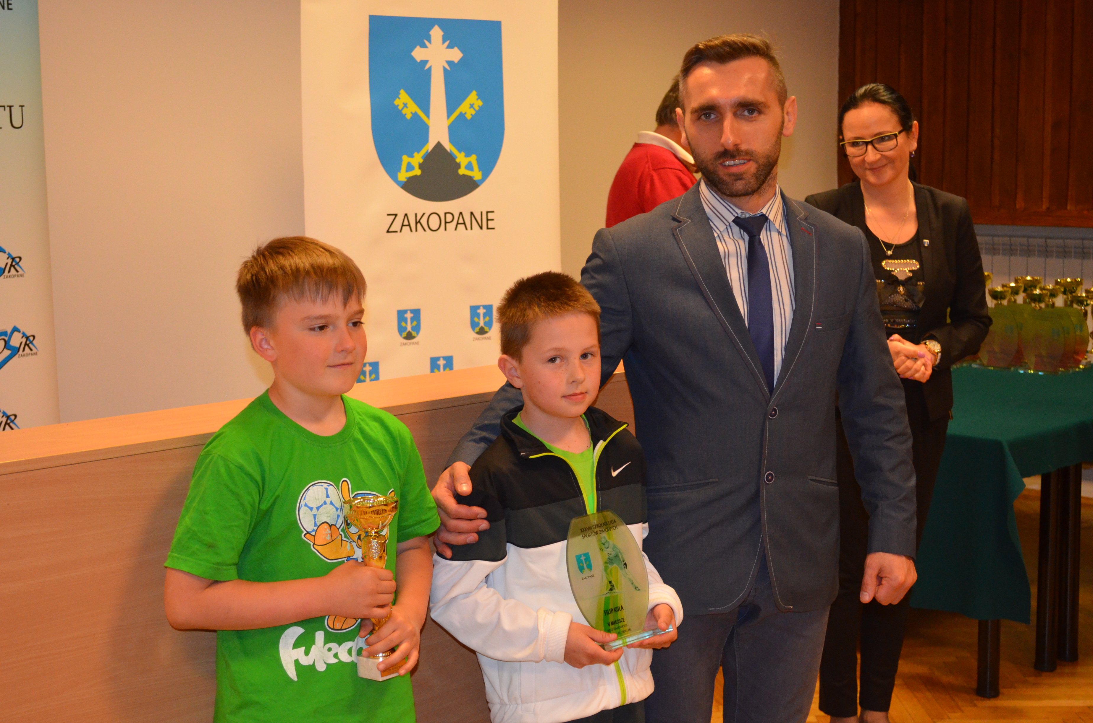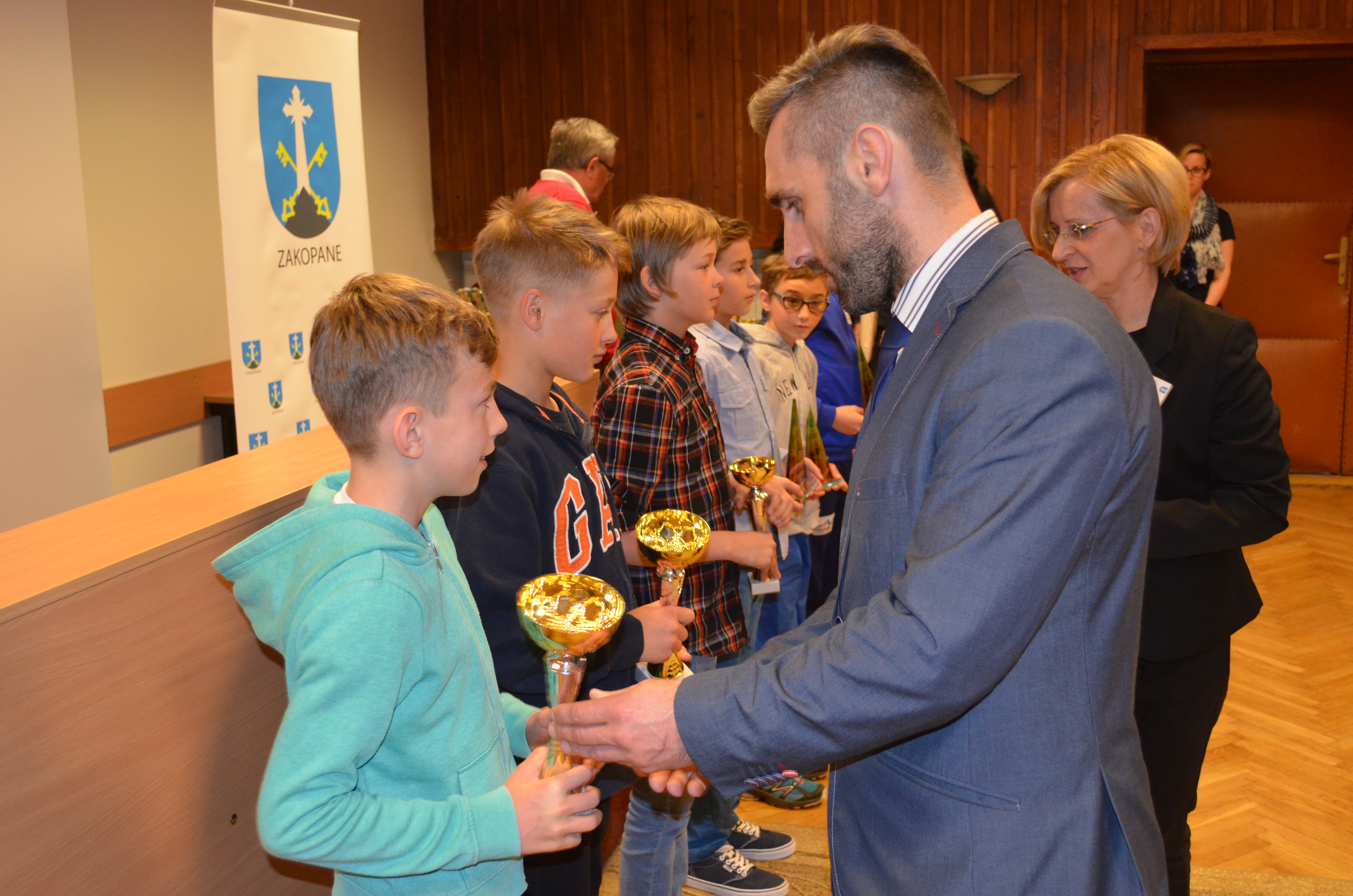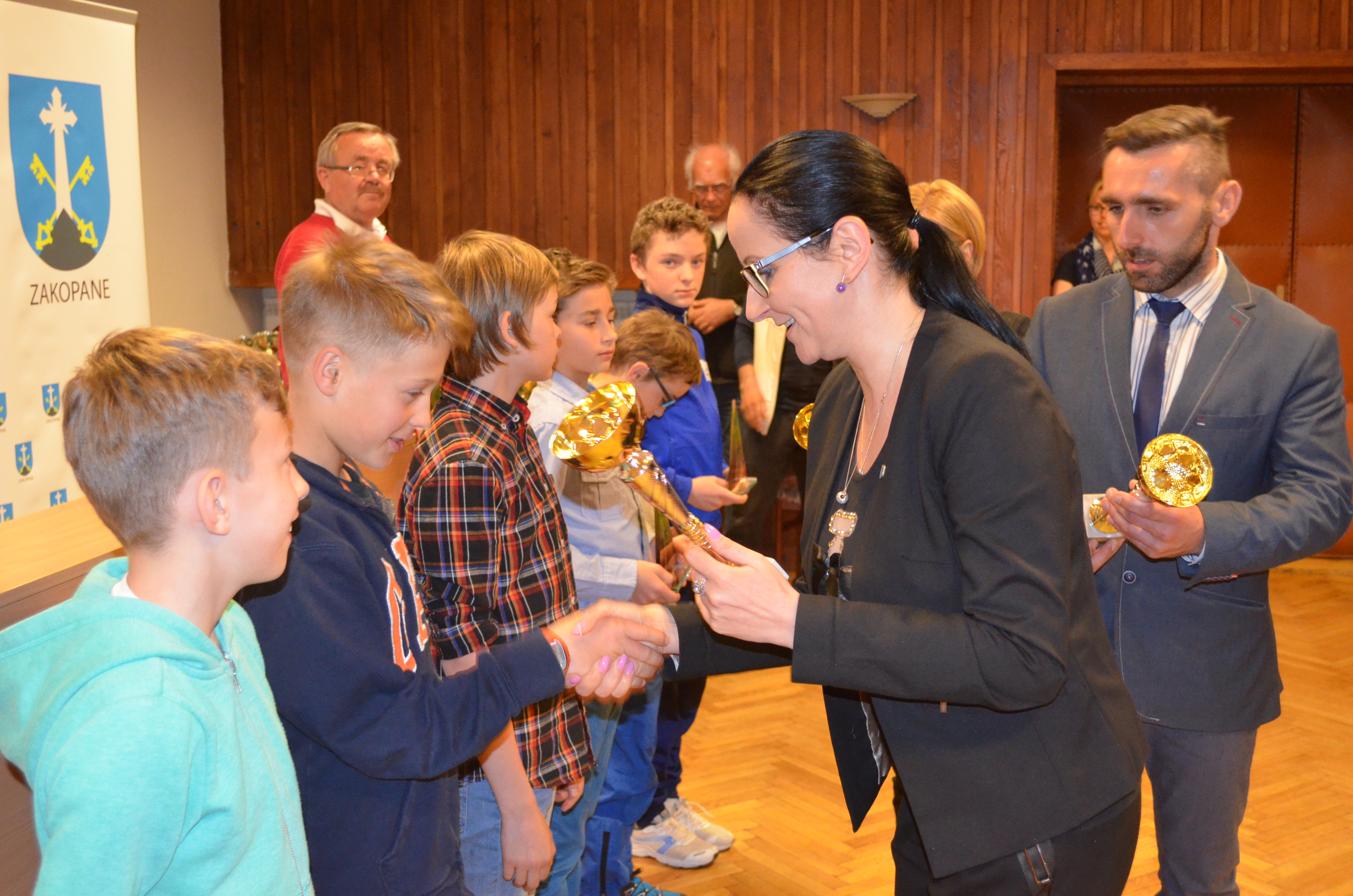 Zastępca burmistrza Zakopanego Agnieszka Nowak-Gąsienica, przewodniczący Rady Miasta Zakopane Grzegorz Jóźkiewicz i naczelnik Wydziału Edukacji, Turystyki i Sportu Urzędu Miasta Zakopane Zofia Kiełpińska wręczyli nagrody wyróżniającym się młodym sportowcom oraz szkołom i klubom, których podopieczni osiągają najlepsze wyniki sportowe.