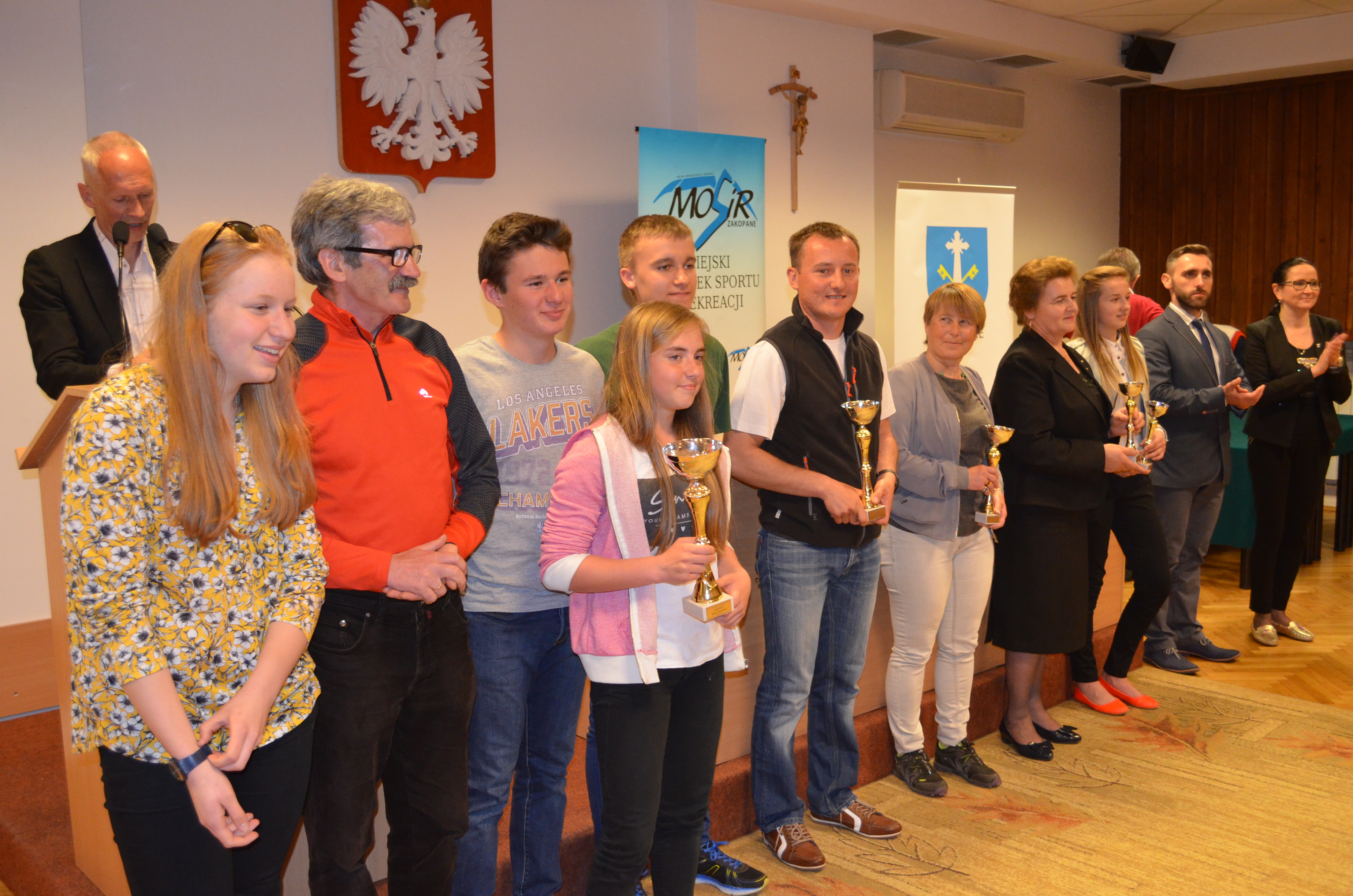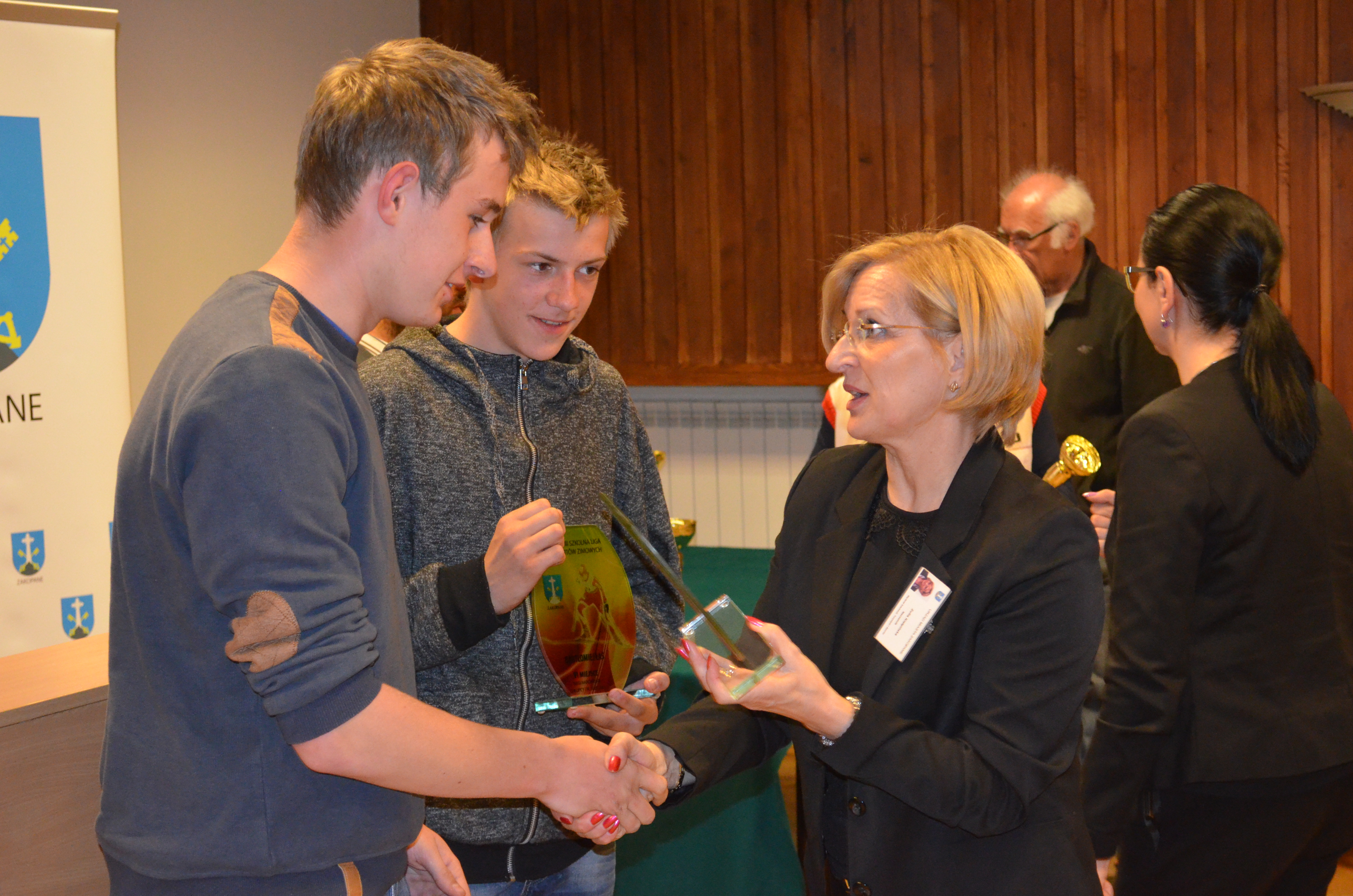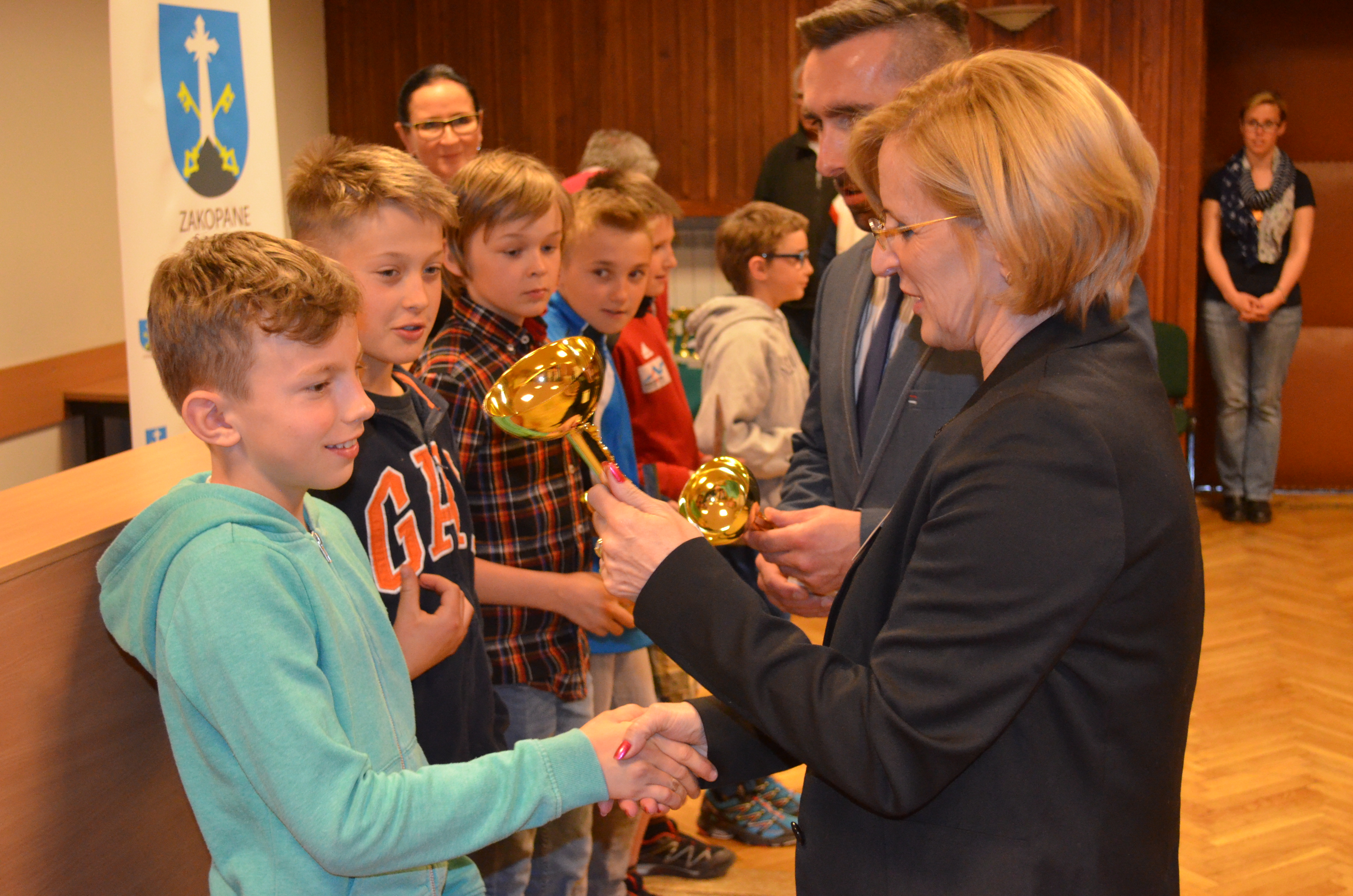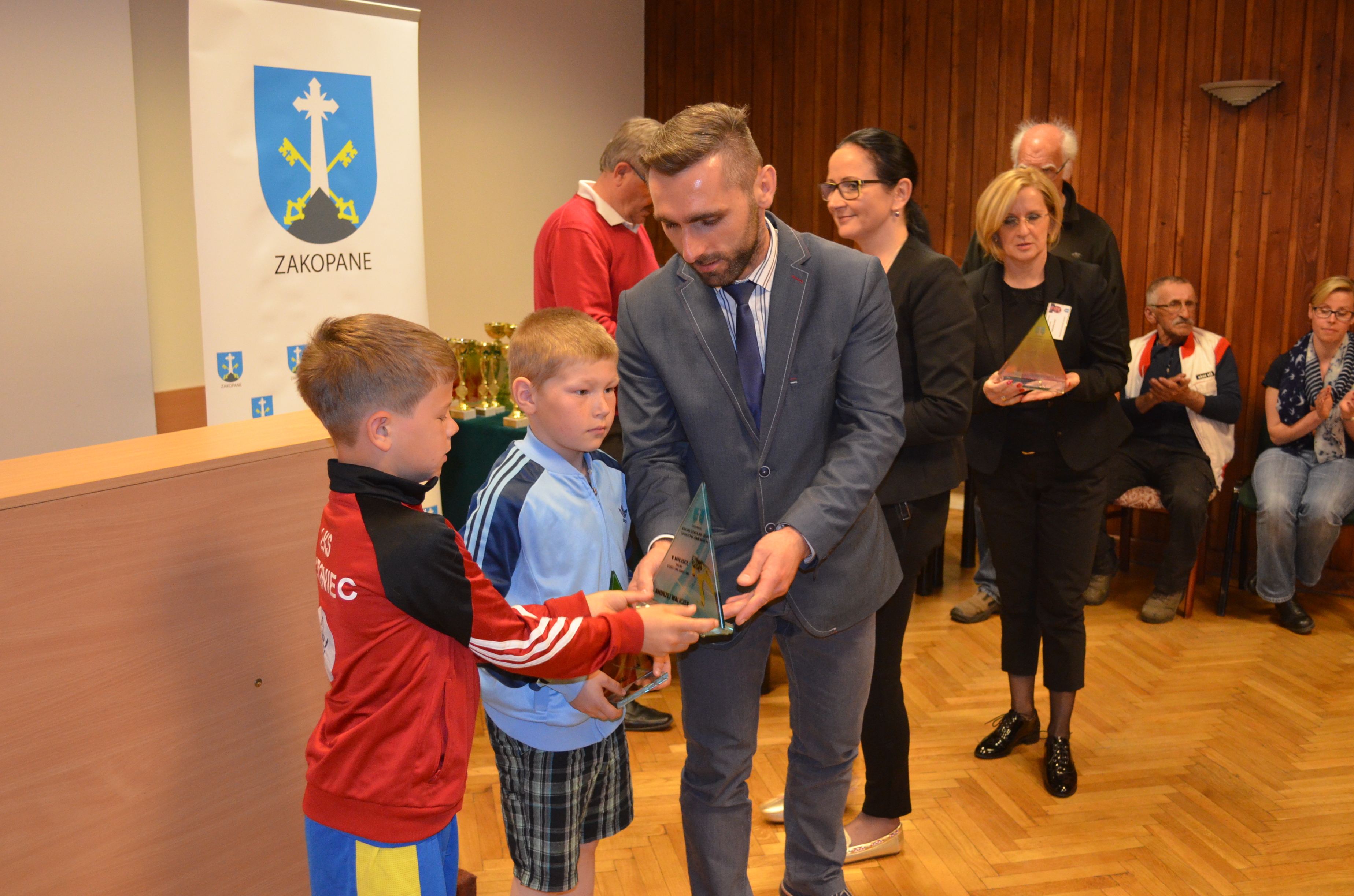 Zastępca burmistrza Zakopanego Agnieszka Nowak-Gąsienica, przewodniczący Rady Miasta Zakopane Grzegorz Jóźkiewicz i naczelnik Wydziału Edukacji, Turystyki i Sportu Urzędu Miasta Zakopane Zofia Kiełpińska wręczyli nagrody wyróżniającym się młodym sportowcom oraz szkołom i klubom, których podopieczni osiągają najlepsze wyniki sportowe.