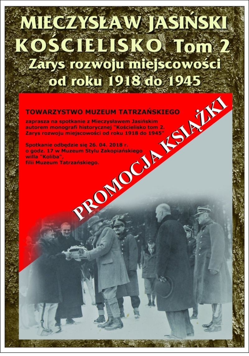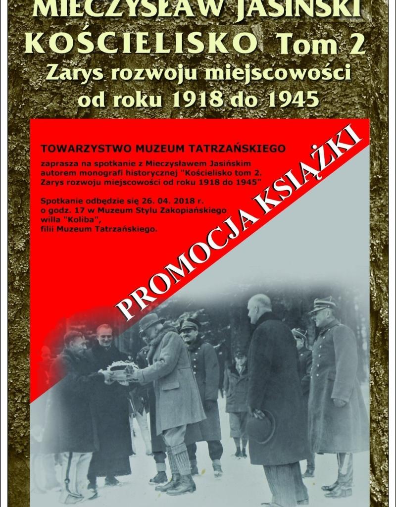 Towarzystwo Muzeum Tatrzańskiego zaprasza na spotkanie z Mieczysławem Jasińskim, autorem monografii historycznej "Kościelisko tom 2. Zarys rozwoju miejscowości od roku 1918 do 1945". Spotkanie odbędzie się 26 kwietnia 2018r. (czwartek) o godz. 17:00 w Muzeum Stylu Zakopiańskiego willa " Koliba", filii Muzeum Tatrzańskiego.