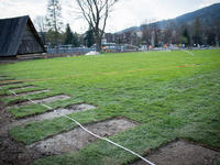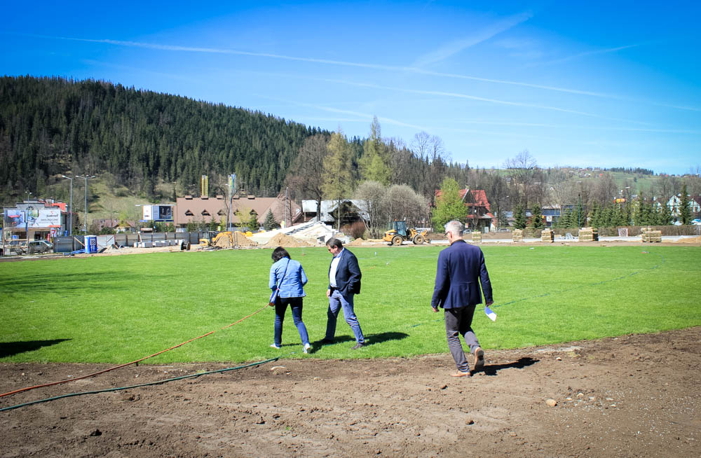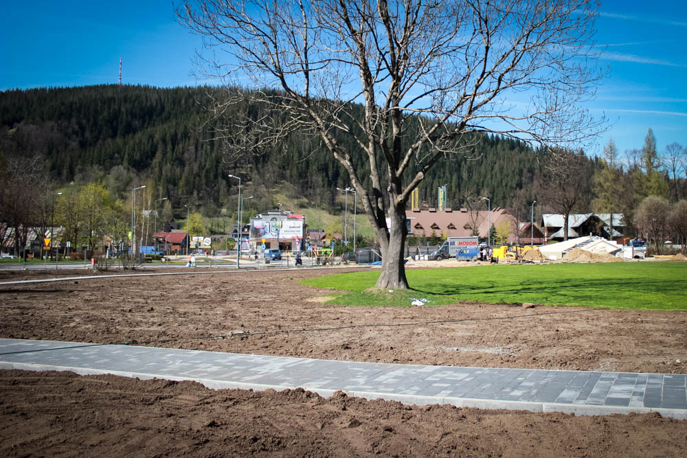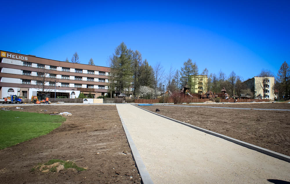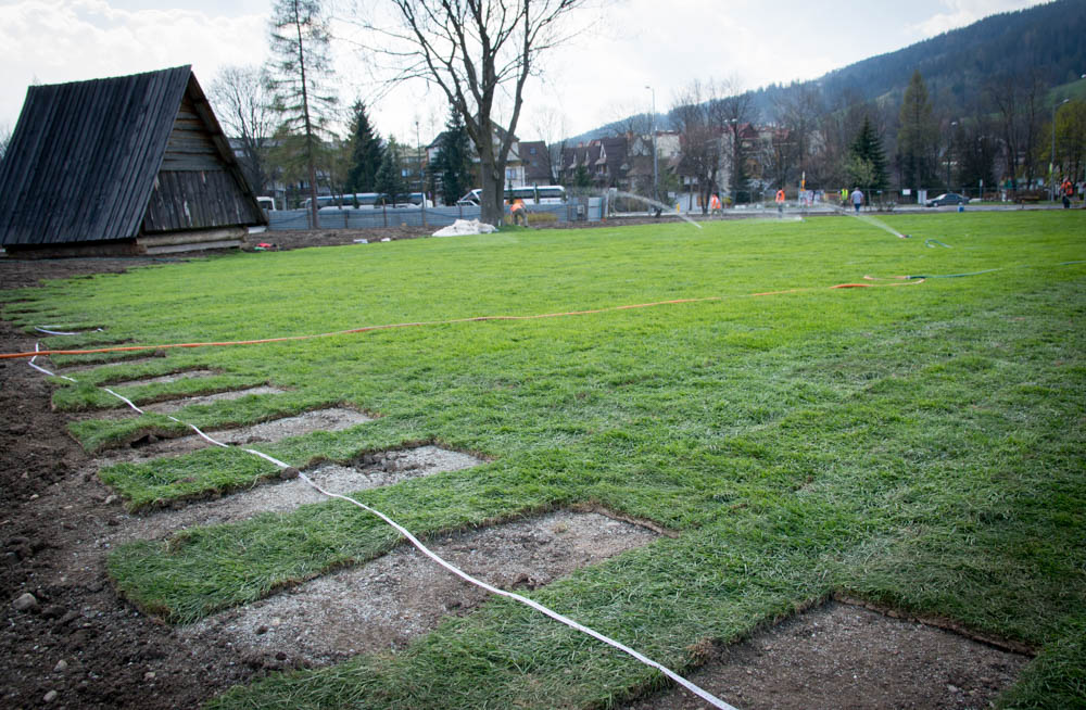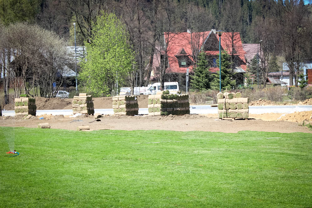 Kilka dni ciepłej i słonecznej pogody pozwoliły wykonawcy na przejście do kolejnego etapu prac na Dolnej Równi Krupowej. Na remontowanym obecnie odcinku rozłożona została nowa trawa.