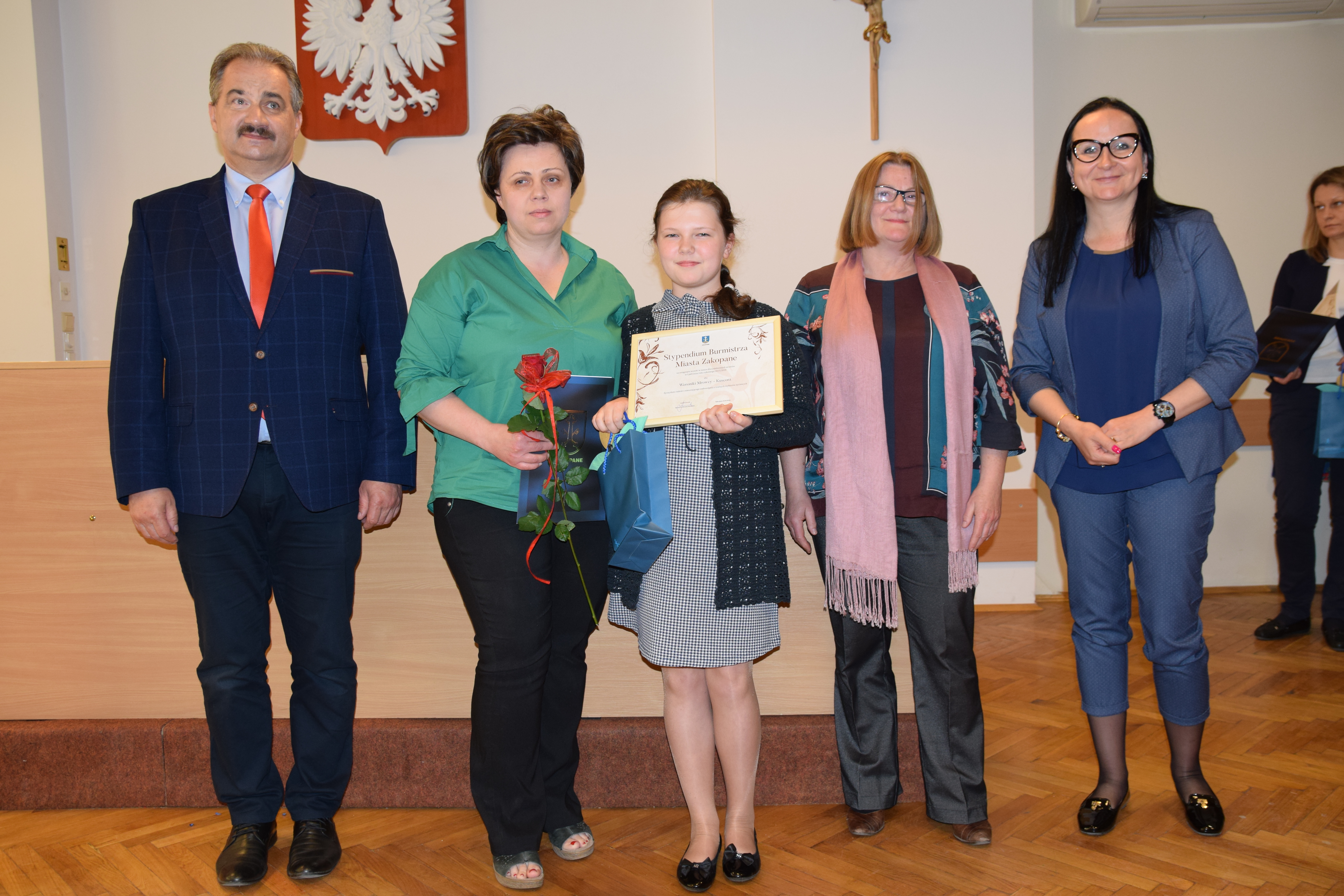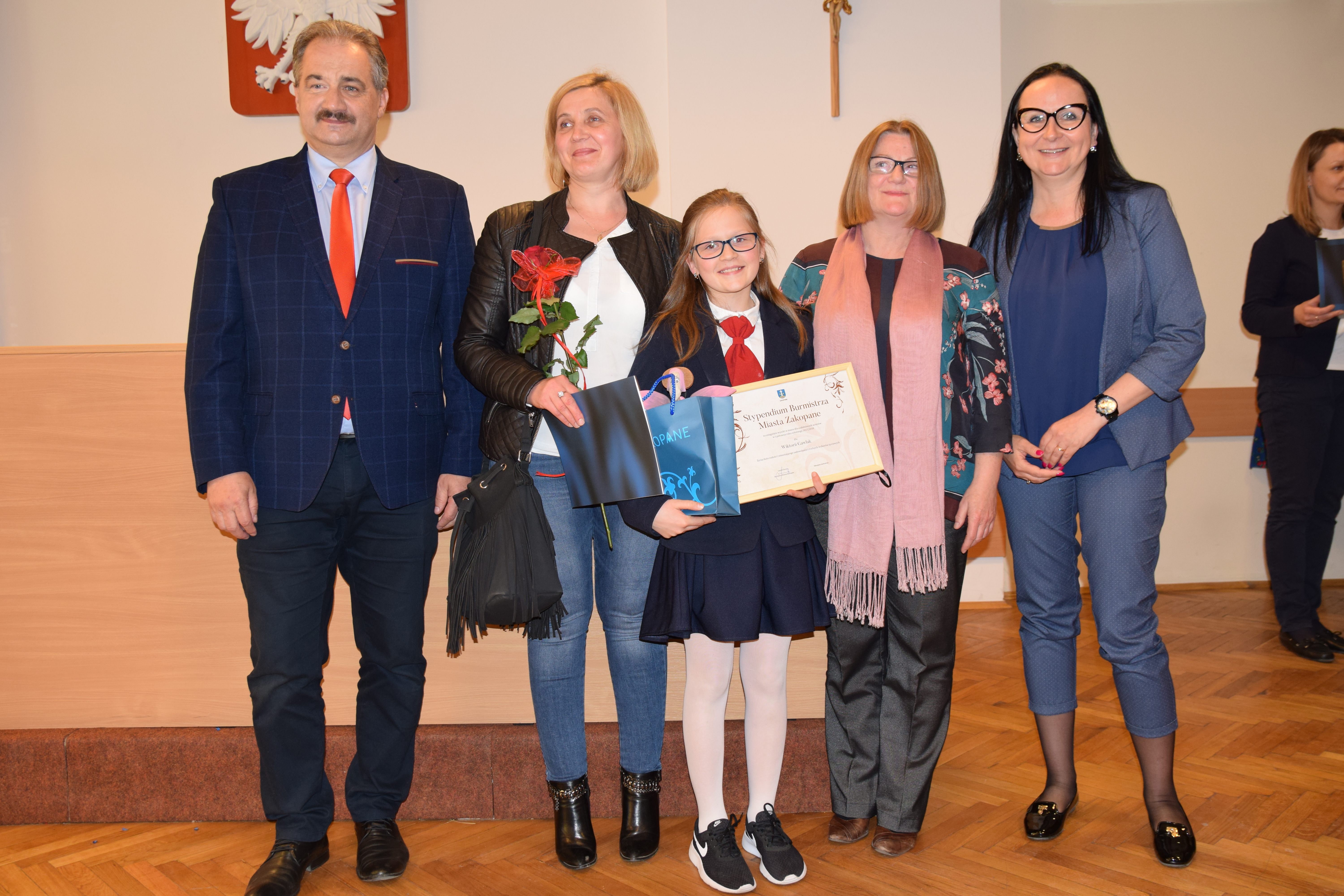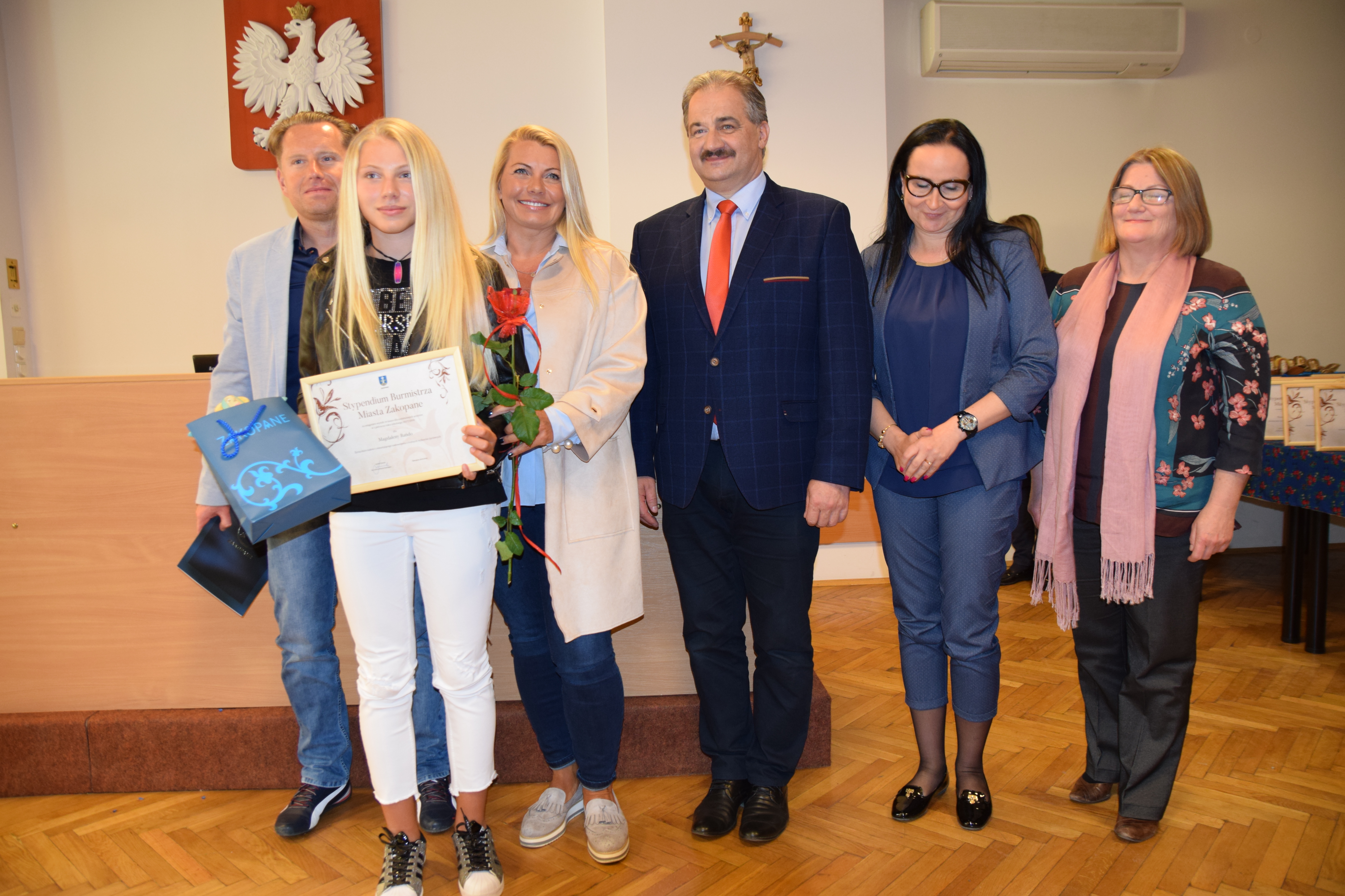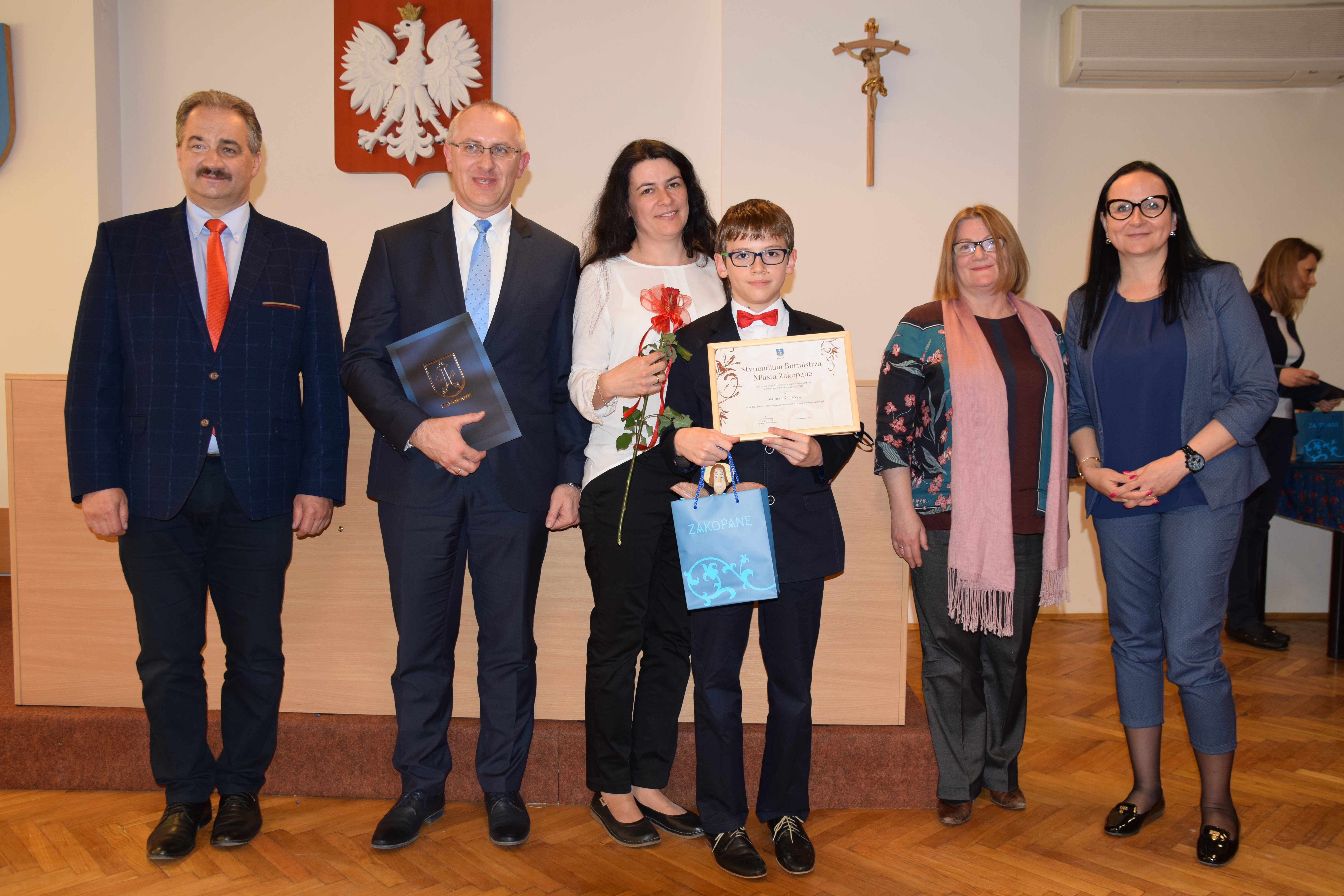 Burmistrz Miasta Zakopane Leszek Dorula wraz z wiceburmistrz Agnieszką Nowak-Gąsienicą i wizytator Marią Zielińską z Nowotarskiej Delegatury Kuratorium Oświaty w Krakowie w dniu wczorajszym wręczył nagrody za wyniki w nauce i inne osiągnięcia za I półrocze roku szkolnego 2017/2018 wyróżniającym się uczniom ze szkół podstawowych i gimnazjów.