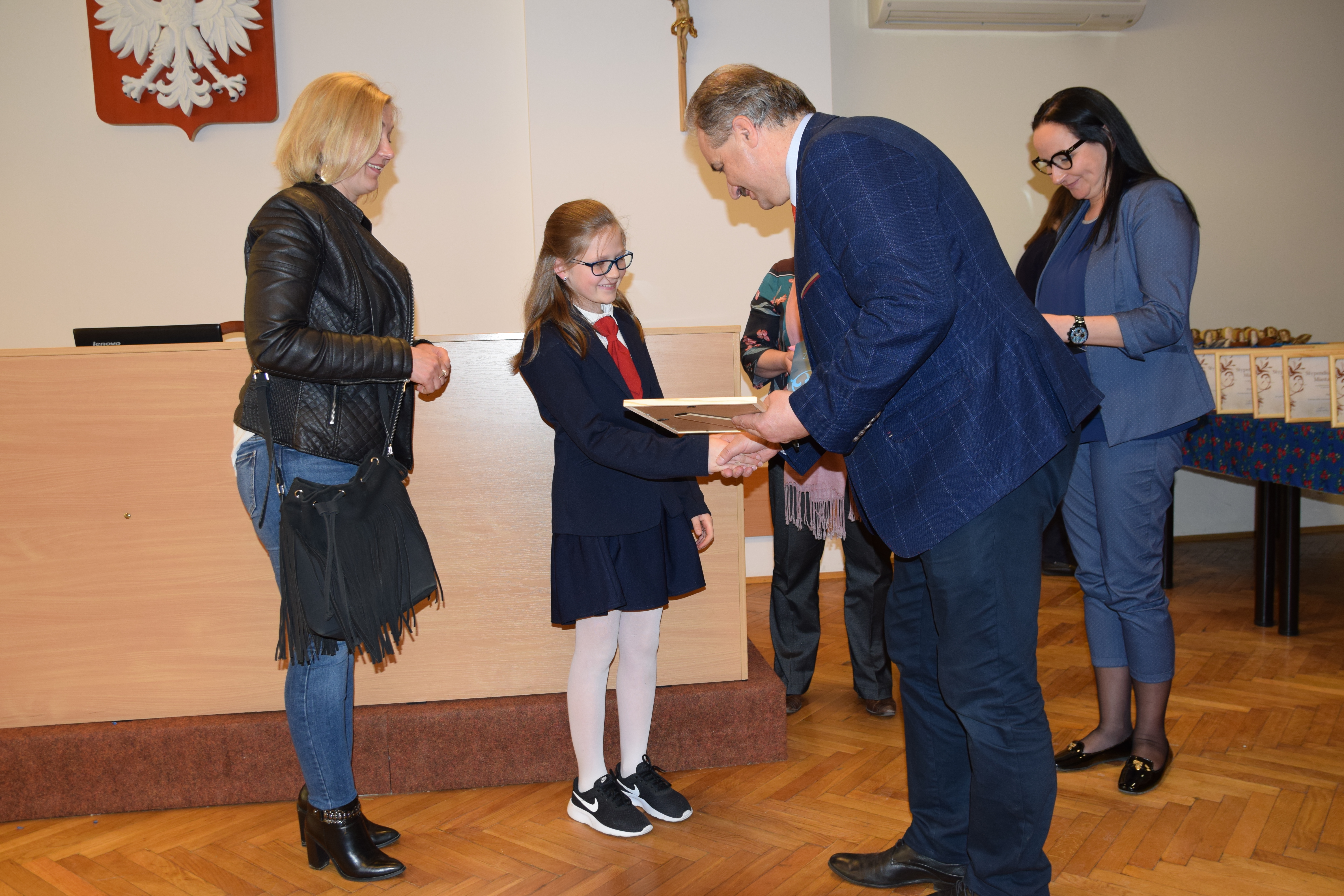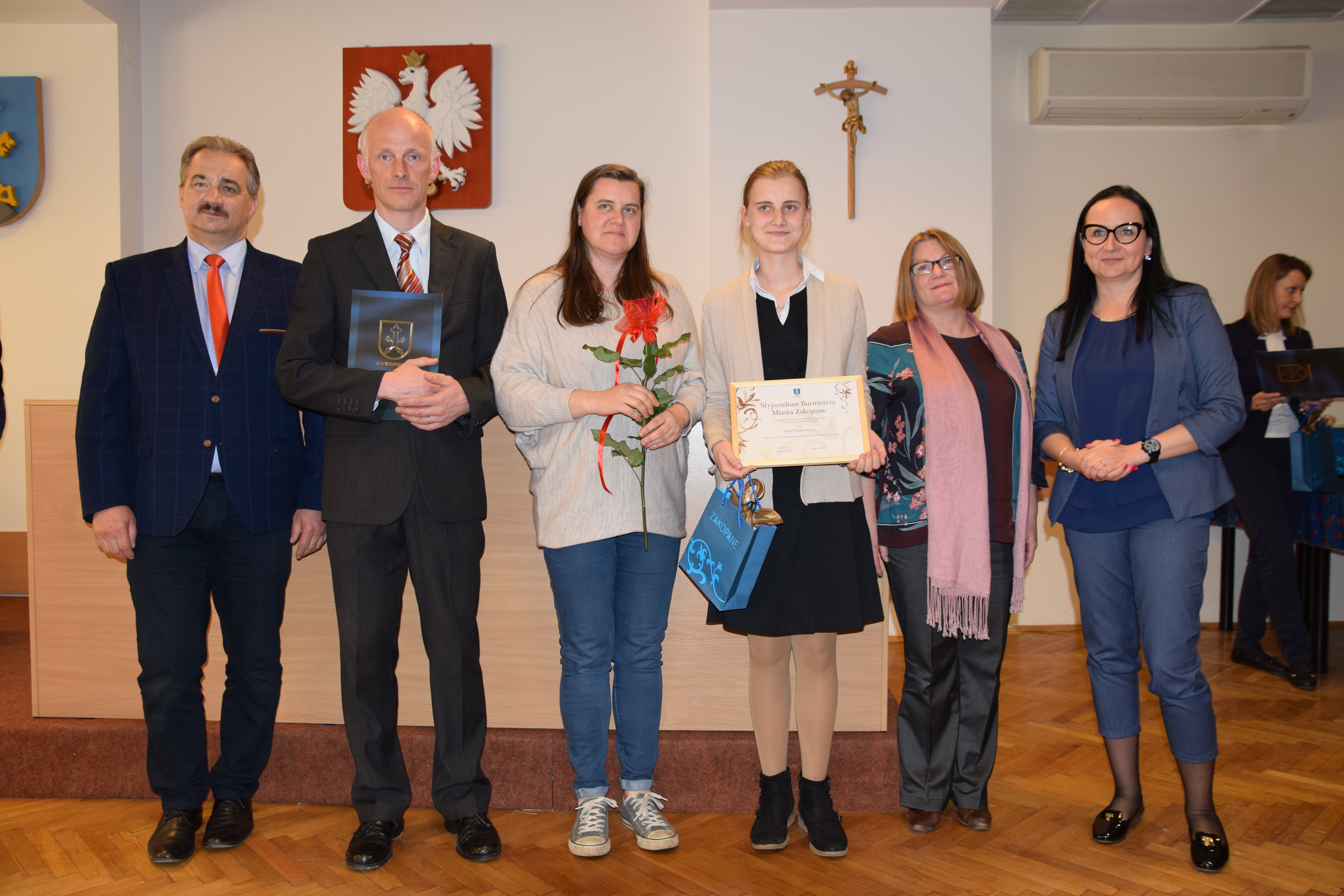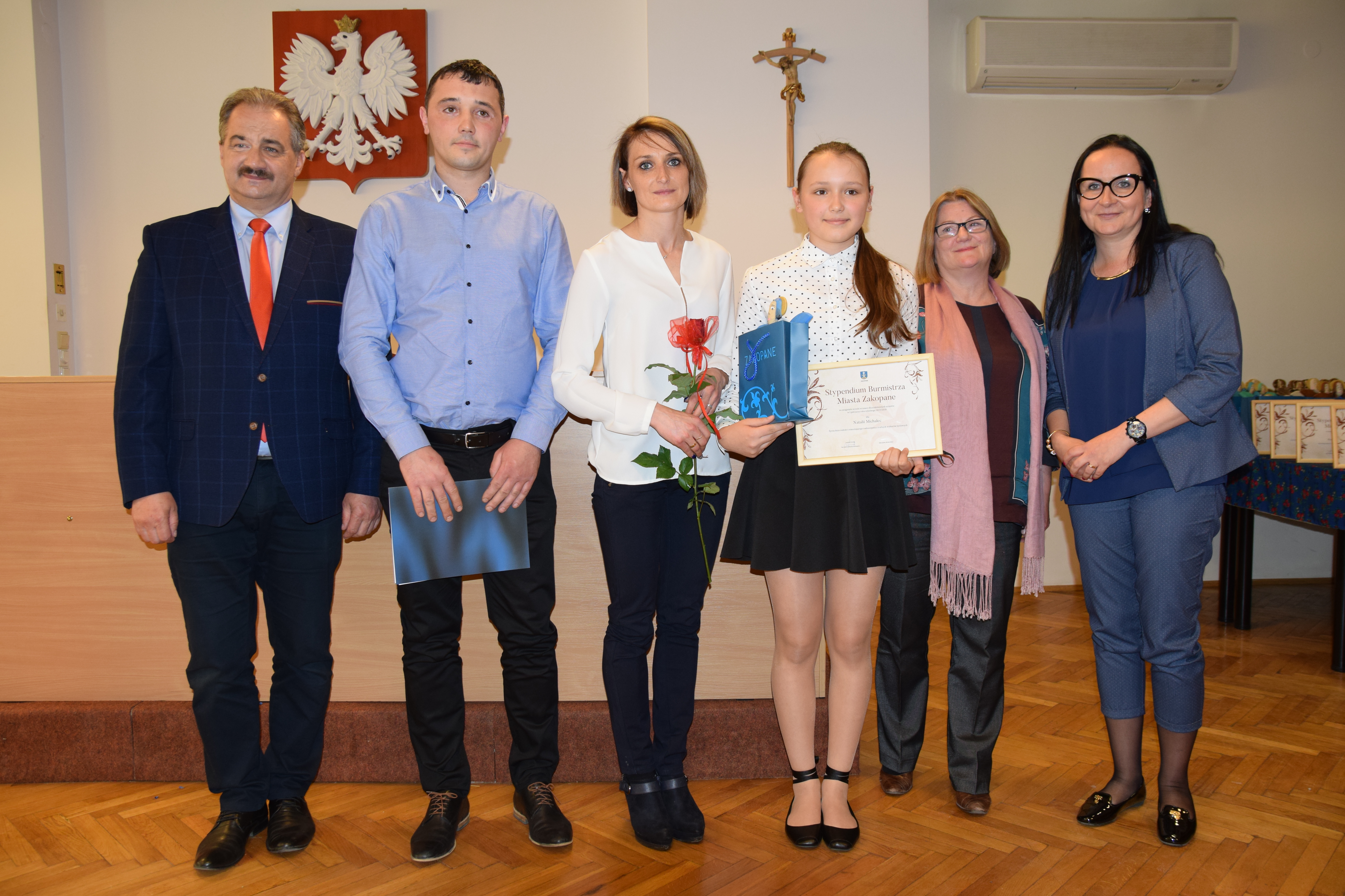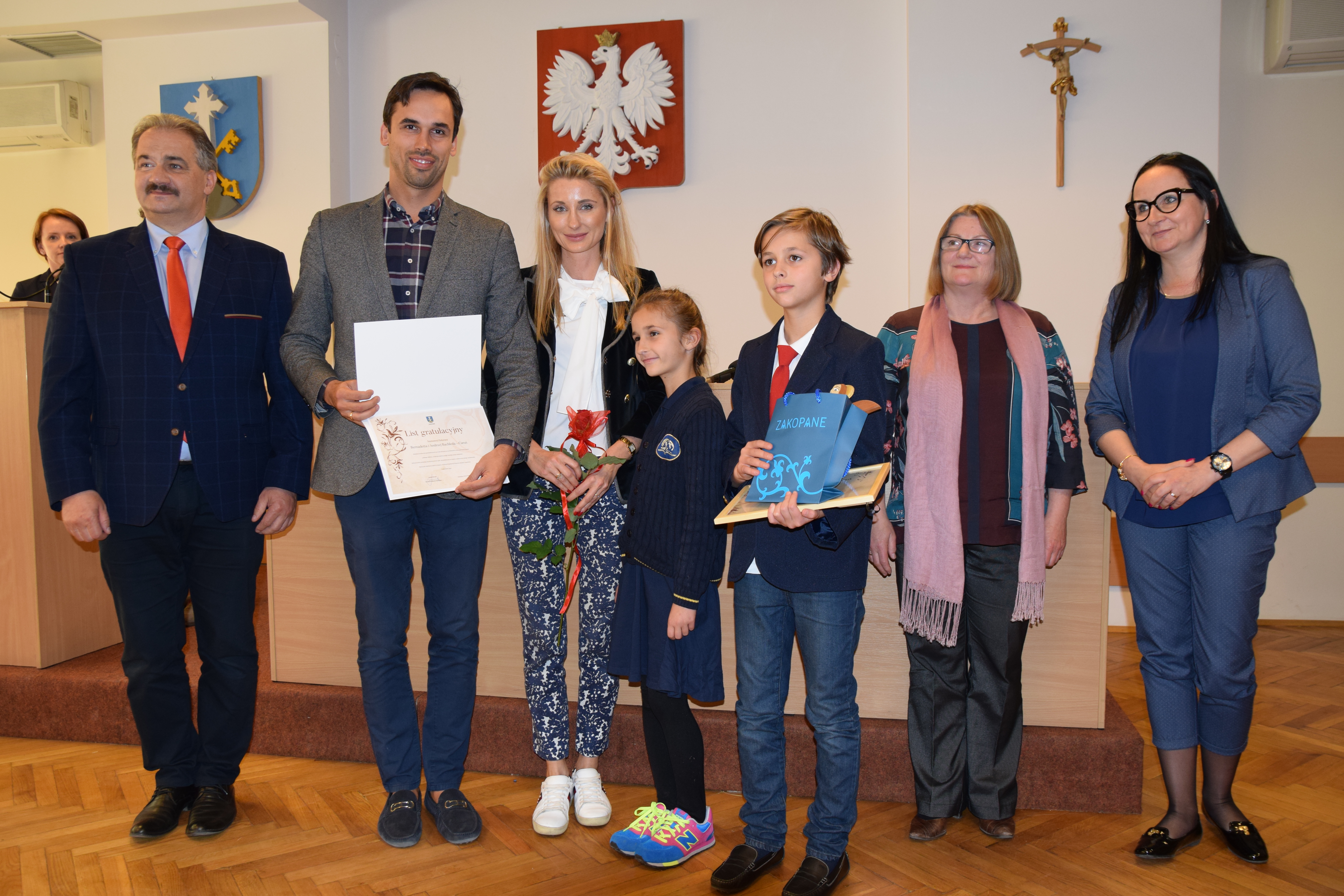 Burmistrz Miasta Zakopane Leszek Dorula wraz z wiceburmistrz Agnieszką Nowak-Gąsienicą i wizytator Marią Zielińską z Nowotarskiej Delegatury Kuratorium Oświaty w Krakowie w dniu wczorajszym wręczył nagrody za wyniki w nauce i inne osiągnięcia za I półrocze roku szkolnego 2017/2018 wyróżniającym się uczniom ze szkół podstawowych i gimnazjów.