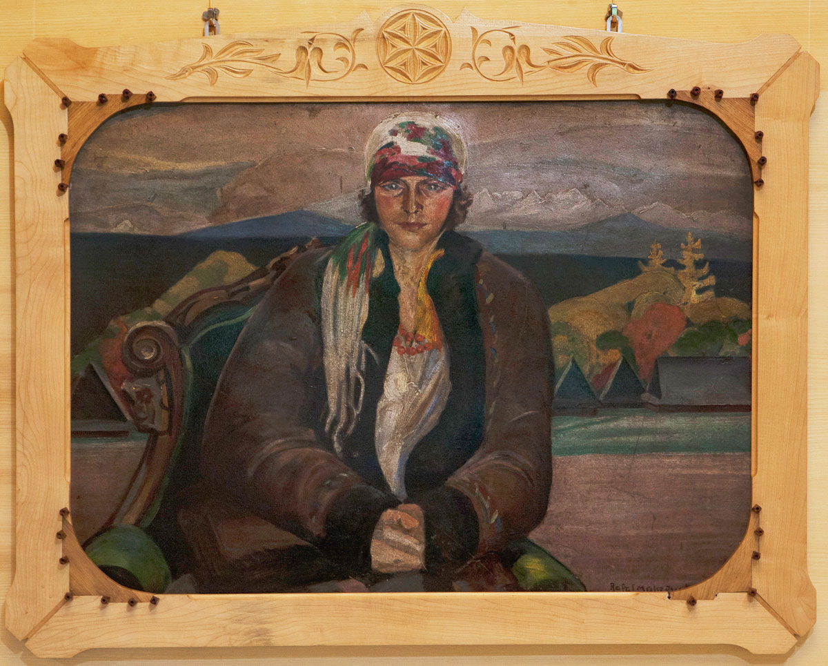 Barwna to postać, która swobodnie czuła się w towarzystwie górali, jak też i „panów”, w tym również Witkacego. Na prezentowanym w muzealnej filii portrecie pozuje w góralskim stroju w kożuszku z czarnymi karakułami i kwiecistej chuście zawiązanej z tyłu głowy. Siedzi na rozłożystym zielonym fotelu, za nią rozciąga się górski pejzaż. Ów fotel znany jest z innych obrazów Rafała Malczewskiego, można domniemywać, że modelka pozowała w mieszkaniu lub pracowni artysty. Obraz datowany jest na wiosnę 1923 roku. Ujmuje wyraz oczu portretowanej, jej zdecydowanie, odwaga i swoboda z jaką patrzy na widza.