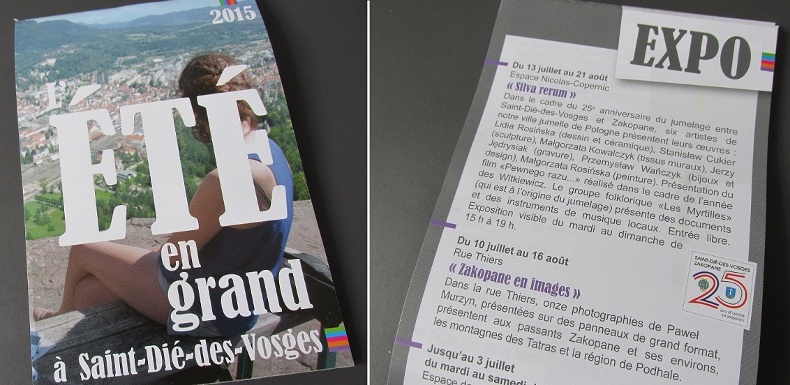 Ćwierć wieku oficjalnego partnerstwa – przyjaźni, wspólnych doświadczeń i wymian kulturalnych, szkolnych i ekonomicznych. Ale tak właściwie to zaczęło się od zainteresowania podhalańskim folklorem o wiele wcześniej, już w latach siedemdziesiątych. Wtedy to zespół folklorystyczny z Saint-Dié „les Myrtilles” (czyli po polsku Borówki) dwukrotnie wystąpił na Międzynarodowym Festiwalu Folkloru Ziem Górskich i zaprzyjaźnił się z członkami zakopiańskiego zespołu im. Bartusia Obrochty. Zaprosili wówczas naszych górali w Wogezy, aby pokazali szerokiej publiczności tańce i śpiewy spod Giewontu. Niedługo potem uczniowie z zakopiańskiego Technikum Hotelarskiego byli przyjmowani z honorami w ratuszu w Saint-Dié.