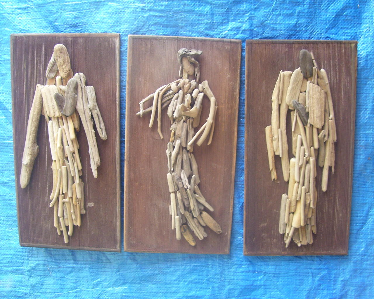 - Chciałem połączyć morze z górami (Gdańsk, Poronin). Chodząc sobie po gdańskiej plaży pomyślałem, że może by tak zrobić coś z tych tak różnych patyczków - czystych, szlifowanych latami przez morze. A z drugiej strony deski, które otrzymałem od kolegi z jego ponad 100-letniej chałupy. Bardzo podoba się mi ich struktura, faktura drewna tworzona latami przez słońce, wiatr, deszcz. No i w końcu połączyłem morskie z górskim drewnem i powychodziły mi „Janiołecki”- ekspresyjne w swej formie, działające na wyobraźnię, dając „niebiańską” rozkosz zmysłom. Anioły dla każdego są czymś innym. Dla Mnie są one takimi stróżami, które chronią od złego i rozjaśniają nasz świat. Dlatego też zdecydowałem się wystawić te Anioły w „Jasnym Pałacu”.
