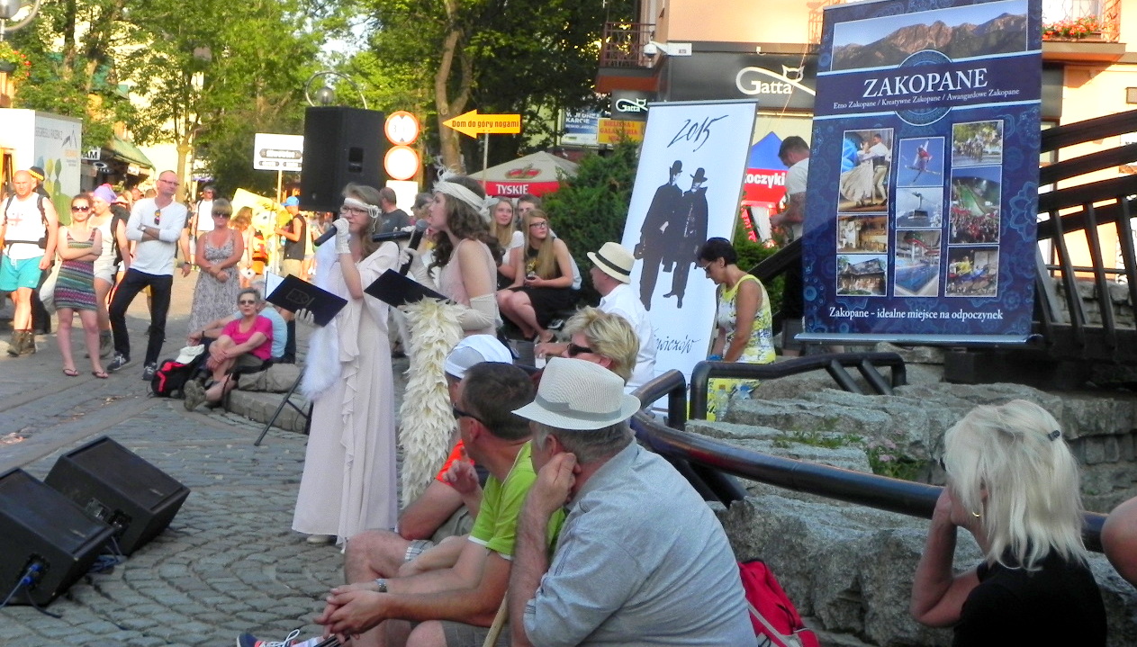 W niedzielny wieczór przy Oczku Wodnym przy ulicy Krupówki na turystów i mieszkańców czekała miła niespodzianka. Z okazji obchodów Roku Witkiewiczów odbył się happening artystyczny w wykonaniu trzech młodych dam, które zaśpiewały piosenki z XX-lecia międzywojennego. Koncert otworzyła Zastępca Burmistrza Miasta Zakopane, Pani Agnieszka Nowak-Gąsienica.