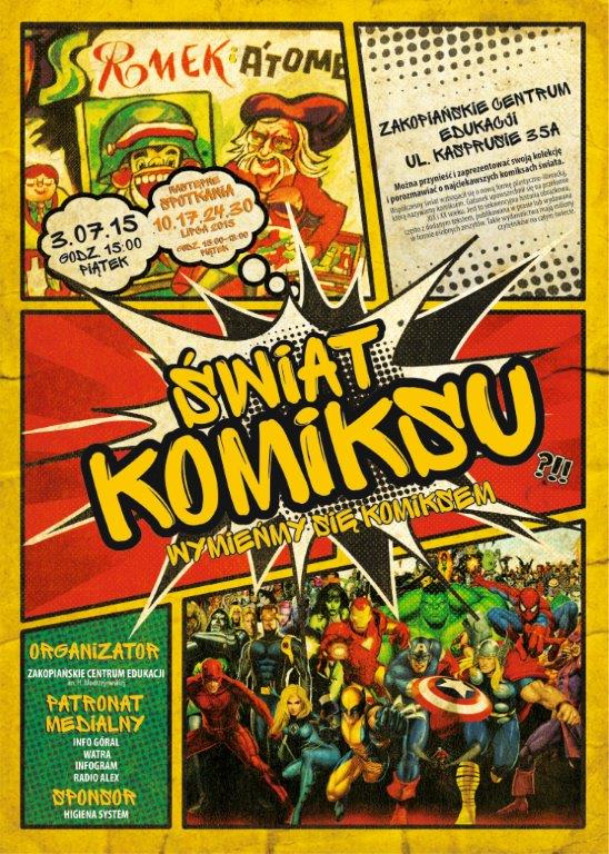 Przez kilka godzin będzie możliwość zapoznać się ze zbiorami komiksowymi zakopiańczyków i nowotarżan, którzy zaprezentują swoje kolekcje. W tym czasie będzie można dokonać (nieodpłatnie) wymiany swoich komiksów na inne.