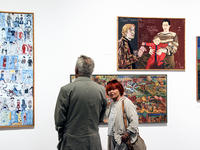 Fałat: F jak figuracja inspirowana fotografią. Malarstwo Andrzeja Fałata, a szczególnie temat postaci i portretu czerpie z inspiracji starą fotografią, zapomnianym klimatem epoki, atrybutów i konwencji zastygłych w migawce starych obiektów. Ten zbiór nieczytelnych gestów i twarzy staje się „materiałem wyjściowym” dla budowania nowatorskiej wizji malarskiej. Za pomocą wytrawnych środków malarskich: płaskiej plamy, deformacji, kontrastu walorowego i wyszukanego monochromu artysta zamienia w intrygujący wizerunek człowieka, w portret zbiorowy, w często ironiczny obraz społeczeństwa. Uważny widz odnajdzie w tych obrazach całe bogactwo odniesień, aluzji i interpretacji wielkiego dorobku sztuki portretowej od reprezentacyjnych konterfektów dworskich Velazqueza i Goi, aż po prowincjonalno- odpustowe, ręcznie podmalowane fotografie.