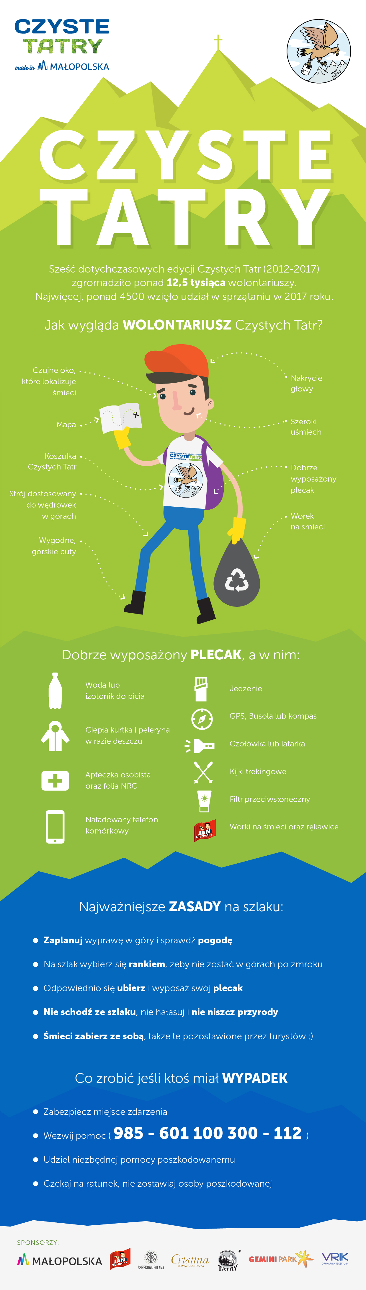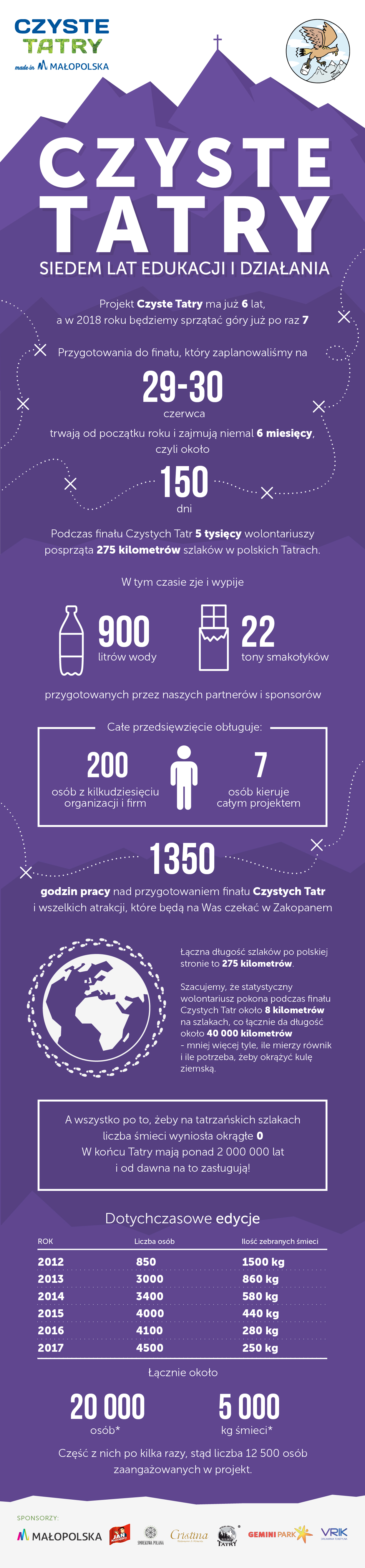 Czyste Tatry Made in Małopolska dobiegły końca i na pewno będziemy je pamiętać jeszcze bardzo długo. 7180 wolontariuszy, mimo kapryśnej i czasami bardzo dokuczliwej pogody, posprzątało dokładnie 275 kilometrów tatrzańskich szlaków. Zebraliśmy 420 kilogramów śmieci i znów nasze ukochane góry są czyste! Dwa dni wspólnej pracy i zabawy na Górnej Równi Krupowej w Zakopanem wspominać będziemy jeszcze bardzo długo i bardzo ciepło. Ale na razie serdecznie wszystkim dziękujemy!