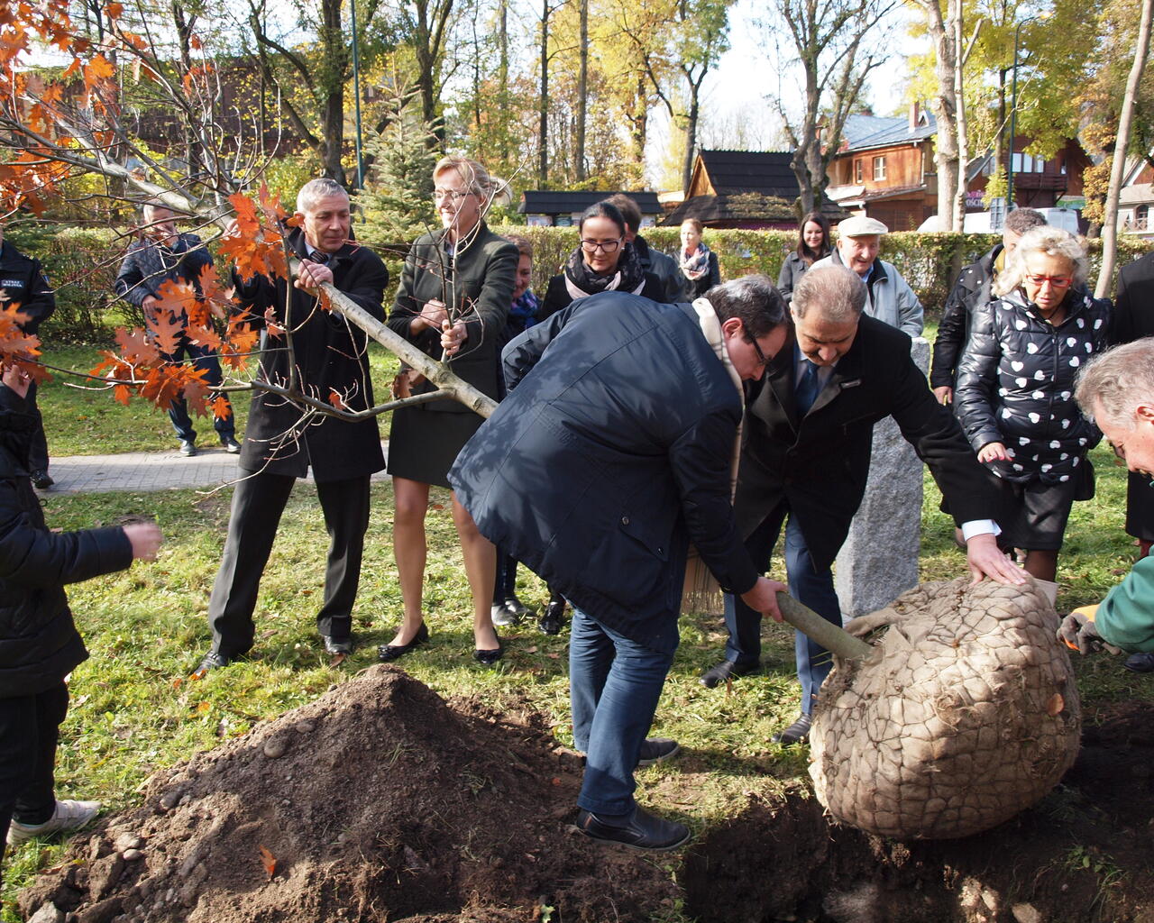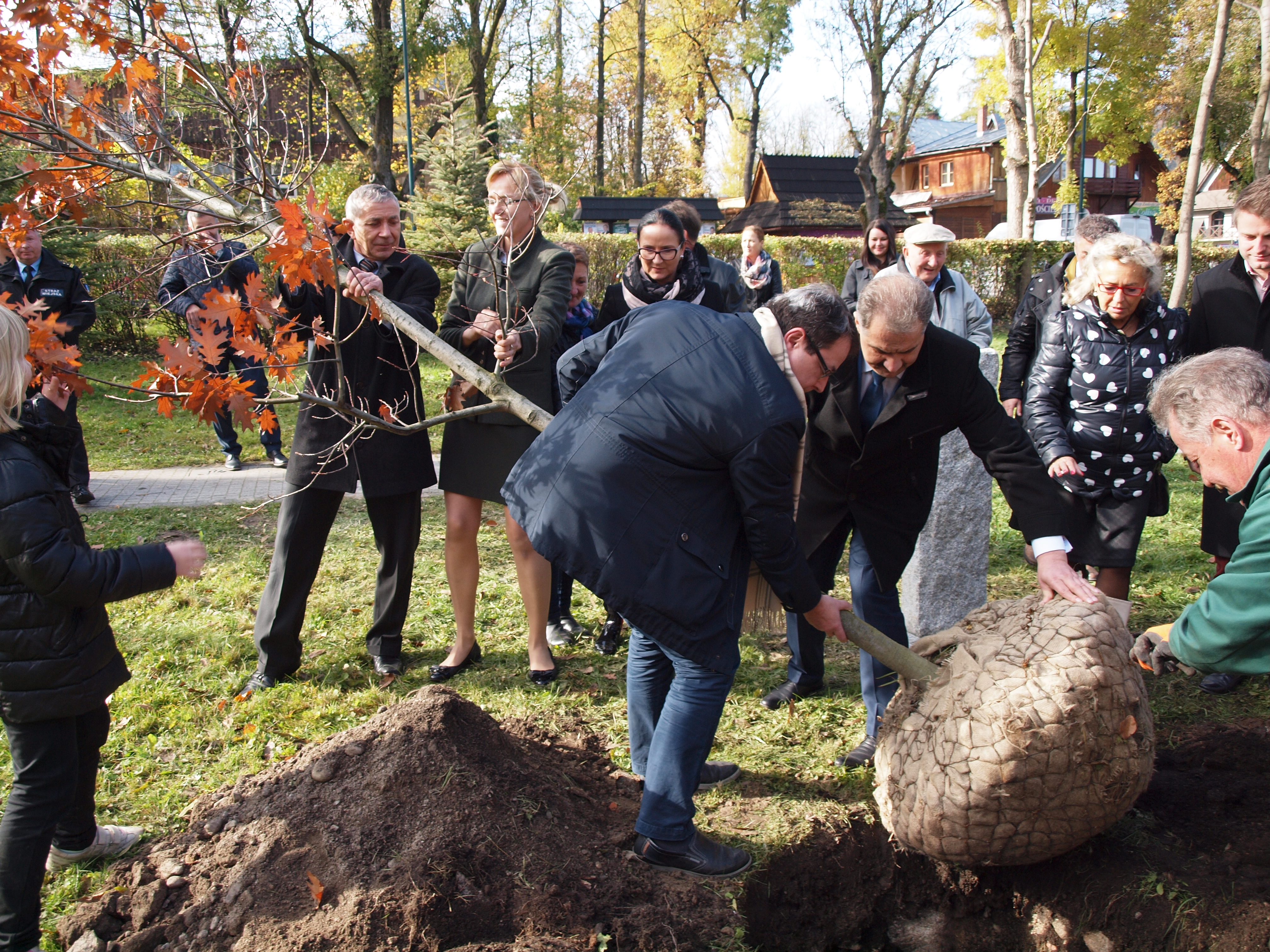 W czwartek, 29 października, na skwerze Josepha Conrada w Zakopanem burmistrzowie, radni i członkowie rodzin kurierów tatrzańskich zasadzili pamiątkowe drzewo.