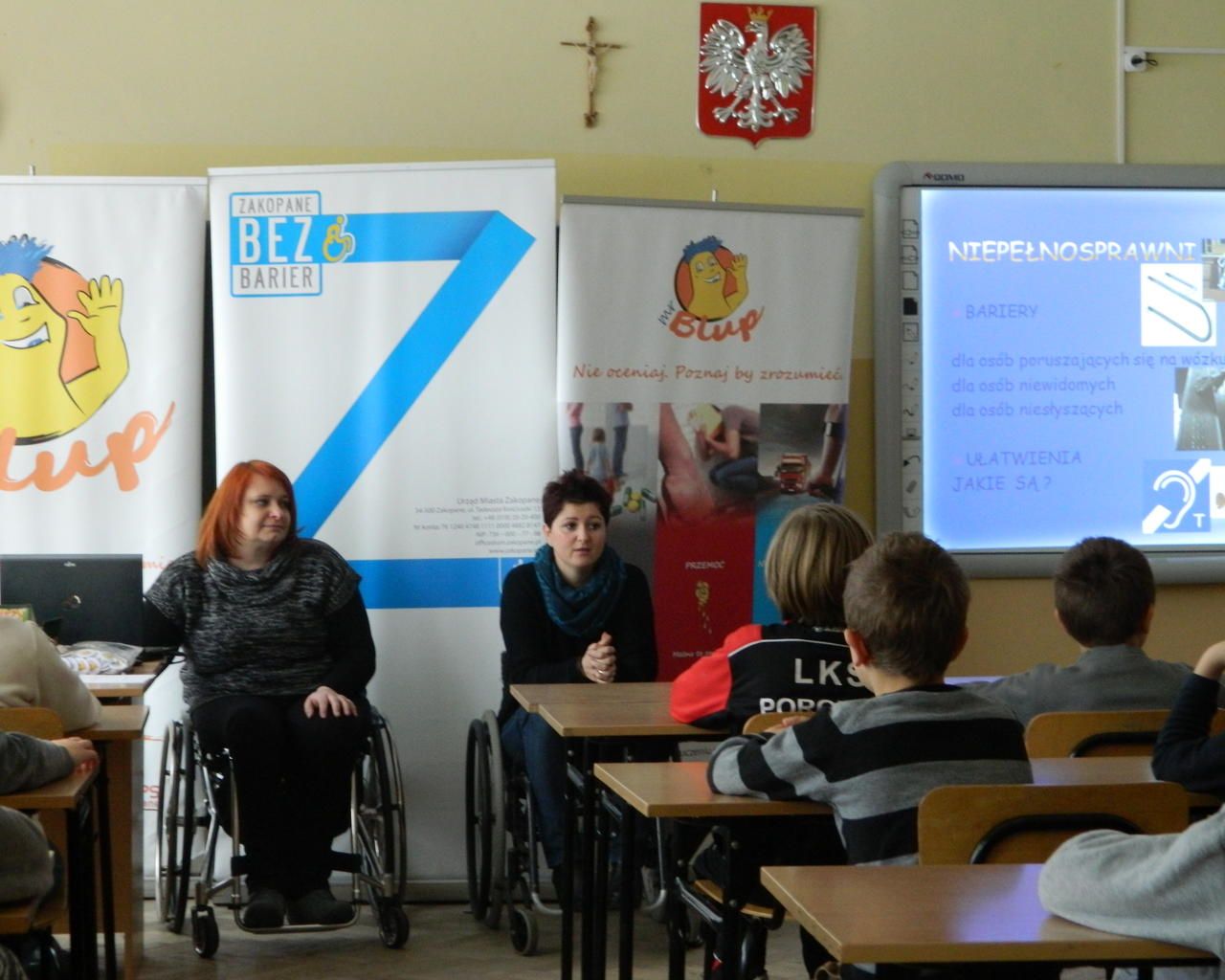 Założenie to zostało zrealizowane poprzez przeprowadzenie we wszystkich klasach III SP oraz klasach III Gimnazjów szkoleń – warsztatów. Projekt realizowany był przez Urząd Miasta Zakopane przy współpracy z zakopiańskimi szkołami. Prelegentami były doświadczone instruktorki w tym jedna osoba poruszająca się na wózku inwalidzkim.