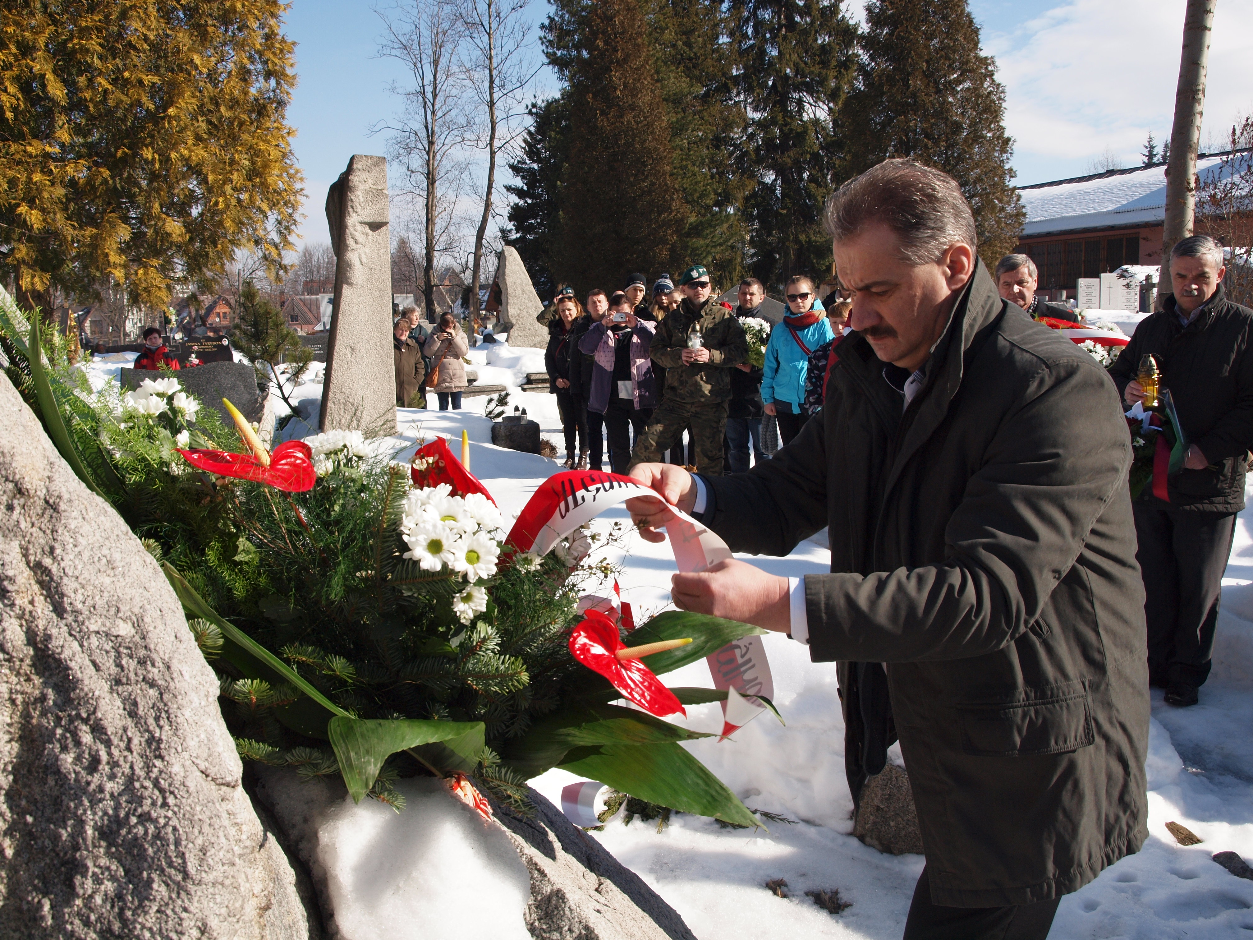 Na grobie generała na nowym cmentarzu, 20 lutego, wiązanki kwiatów złożyły delegacje: miasta z burmistrzem Leszkiem Dorulą na czele, powiatu, 21. Brygady Strzelców Podhalańskich i Gimnazjum Nr 1.