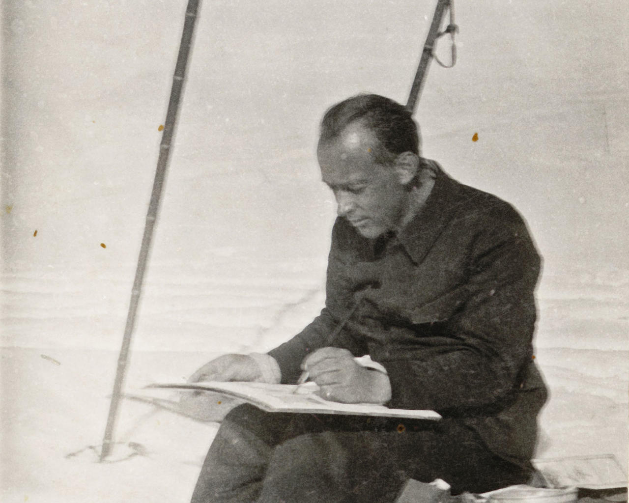 Rafał Malczewski (1892-1965) był jedną z barwniejszych postaci Zakopanego lat międzywojennych. Wzrastał w atmosferze kontaktu ze sztuką i malarstwem. W latach 1910–1915 studiował w Wiedniu filozofię, architekturę i agronomię. W tym samym czasie zaczął zajmować się narciarstwem. Po powrocie do kraju kształcił się w krakowskiej Akademii Sztuk Pięknych. Uczył się również malarstwa w atelier ojca, Jacka Malczewskiego, znanego malarza. W okresie 1915–1939 Rafał Malczewski mieszkał w Zakopanem. Dał się poznać jako zamiłowany taternik, doskonały narciarz i ratownik TOPR. Znał wielu wybitnych zakopiańczyków tamtego okresu. W 1917 r., podczas wspinaczki na południowej ścianie Zamarłej Turni w Tatrach, spotkała go tragedia. Śmierć poniósł jego towarzysz, Stanisław Bronikowski, a sam Malczewski przez całą noc, przywiązany do haka, na niewielkiej półce skalnej, oczekiwał na pomoc ratowników TOPR. W dwudziestoleciu międzywojennym Rafał Malczewski zyskał znaczną sławę jako malarz. Prezentował prace na wielu wystawach zbiorowych i indywidualnych, w kraju i za granicą (Międzynarodowe Biennale w Wenecji w 1932, Berlin, Helsinki, Los Angeles, Moskwa, Nowy Jork). Otrzymał specjalną nagrodę prezydenta Mościckiego złoty laur Polskiej Akademii Literatury za zasługi na polu plastyki, a także złoty medal za obraz Wiosna w górach na Wystawie Światowej Sztuki i Techniki w Paryżu w 1937 r. Malował krajobrazy, a zwłaszcza senne stacyjki kolejowe, małe miasteczka, tatrzańskie hale, błotniste drogi, pejzaże fabryczne oraz portrety. Upraszczał kształty, celowo je prymitywizował, co zbliżało jego styl do charakteru twórczości nieprofesjonalnej. Brał udział w powstaniu filmu „Biały ślad” w reż. Adama Krzeptowskiego. Był także autorem felietonów, ukazujących specyficzną atmosferę Zakopanego w okresie międzywojennym: Od cepra do wariata, Narkotyk gór. Nowele tatrzańskie, Pępek świata. Wspomnienia z Zakopanego. Zmarł w Motrealu w 1965 r. /W. Szatkowski/