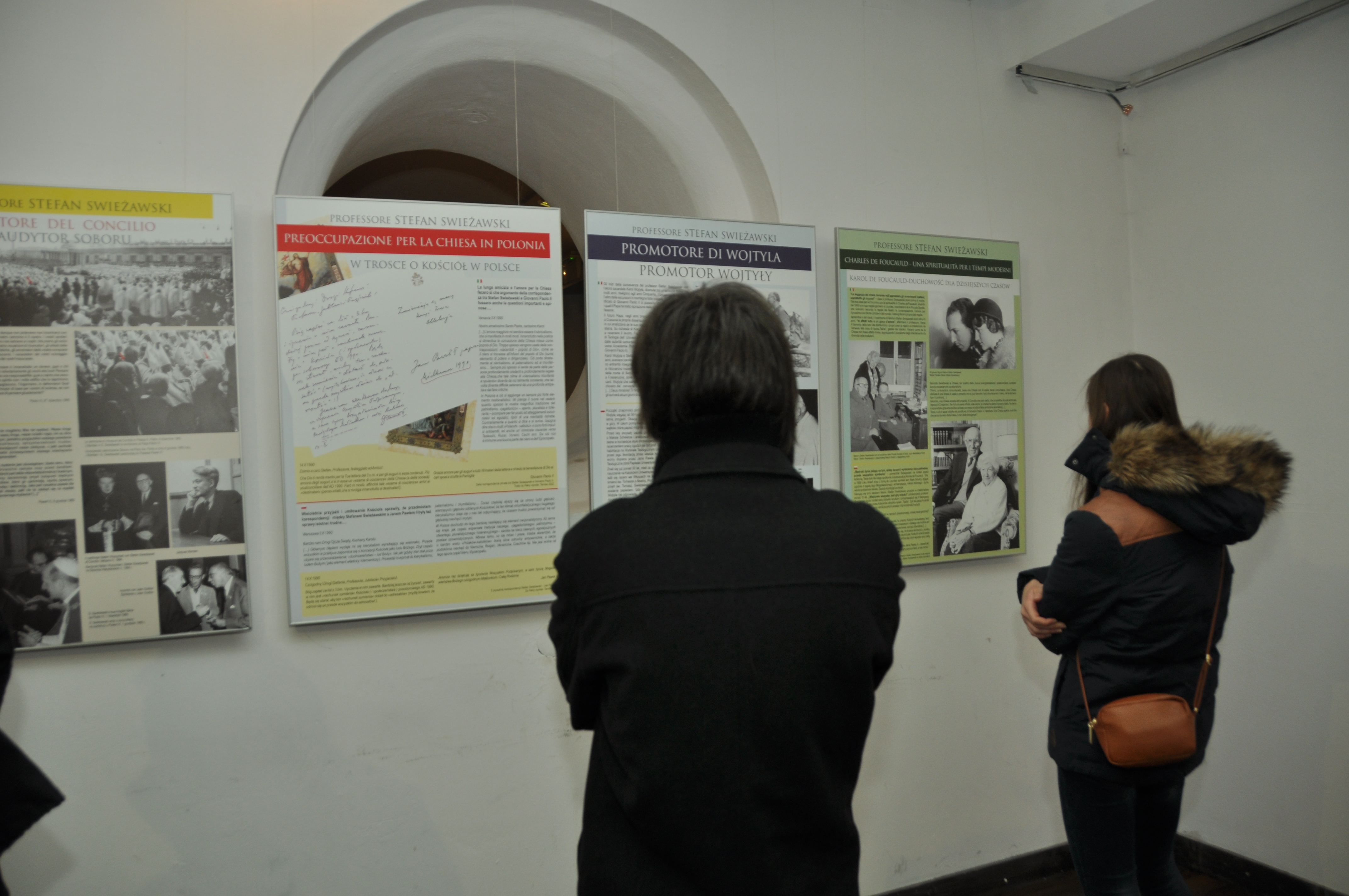 Wystawa została zorganizowana i pokazana po raz pierwszy w Rzymie, staraniem Ambasady Rzeczpospolitej Polskiej przy Stolicy Apostolskiej, w związku z kanonizacją papieży Jana XXIII i Jana Pawła II. Teksty, dobór ilustracji i współpraca: Wojciech Bonowicz, o. Tomasz Dostatni OP, Tadeusz Konopka, Edmund Wnuk-Lipiński, o. Maciej Zięba OP, s. Alberta Chorążyczewska FSK. Zdjęcia archiwalne zostały uzyskane dzięki uprzejmości Sióstr Franciszkanek Służebnic Krzyża, rodzin: Mazowieckich, Świeżawskich i Tischnerów oraz miesięcznika „Więź”, Polskiej Agencji Prasowej, Servizio Fotografico Romano, Eco di Bergamo.