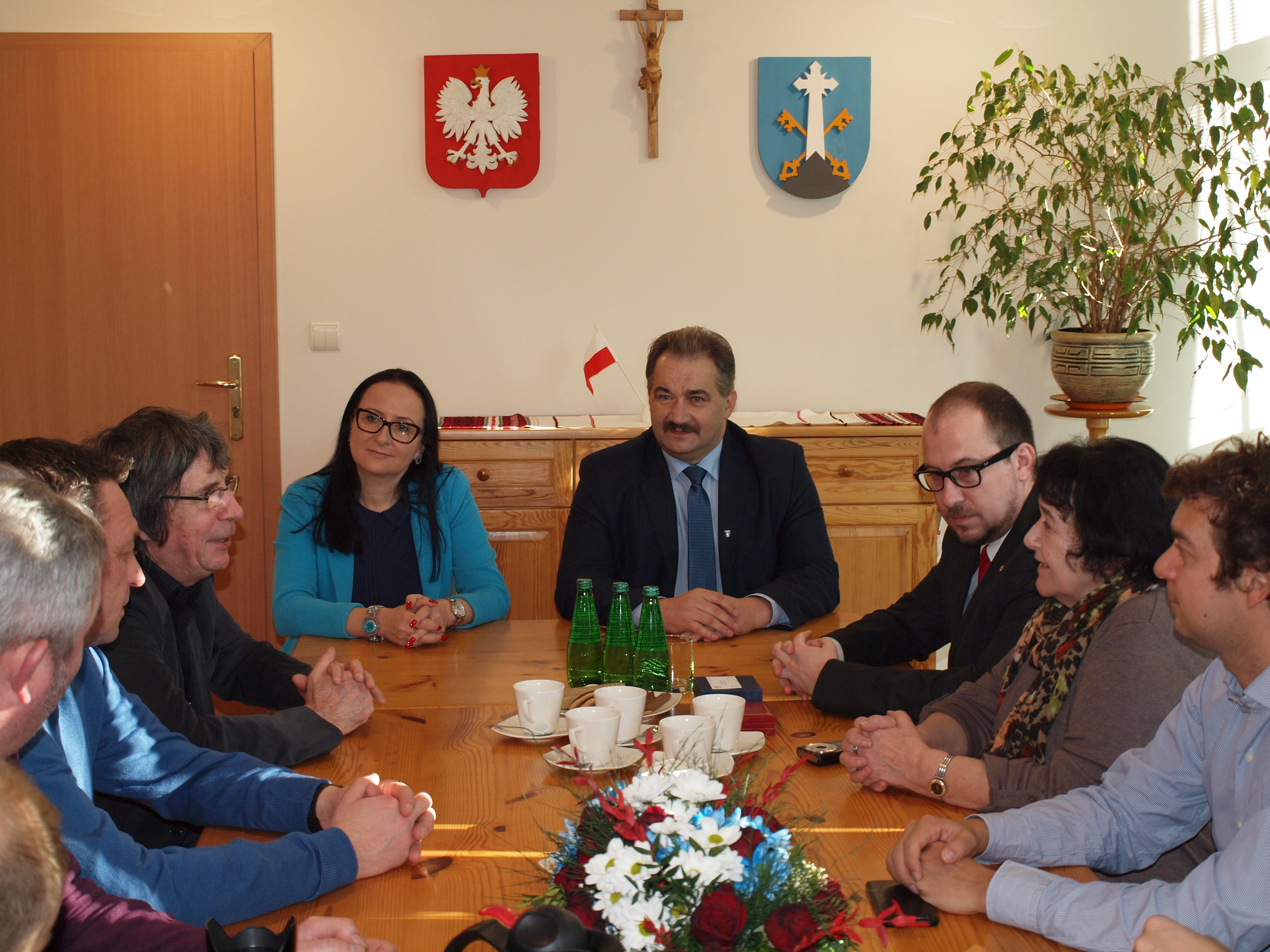 Przedstawiciele grupy, na czele z posłem Nicolas Bays, odwiedzili dziś Urząd Miasta, by spotkać się z burmistrzem Leszkiem Dorulą i wiceburmistrz Agnieszką Nowak-Gąsienicą. Podczas serdecznej rozmowy wspominano łączące Polskę i Francję od wieków więzy przyjaźni i braterskiej pomocy.