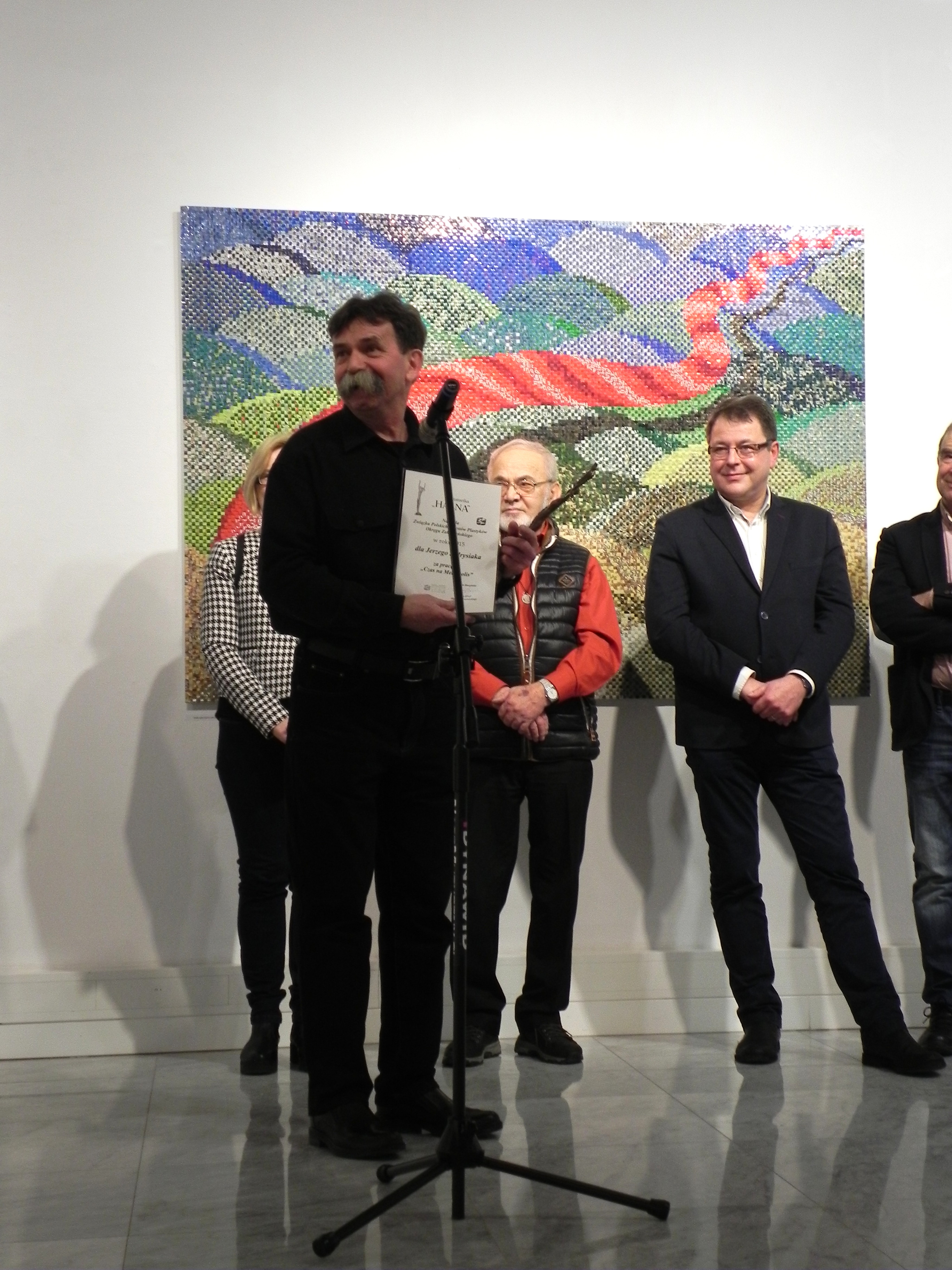Podczas wernisażu Jerzy Jędrysiak otrzymał statuetkę "Halna" za pracę "Czas na Metropolis".