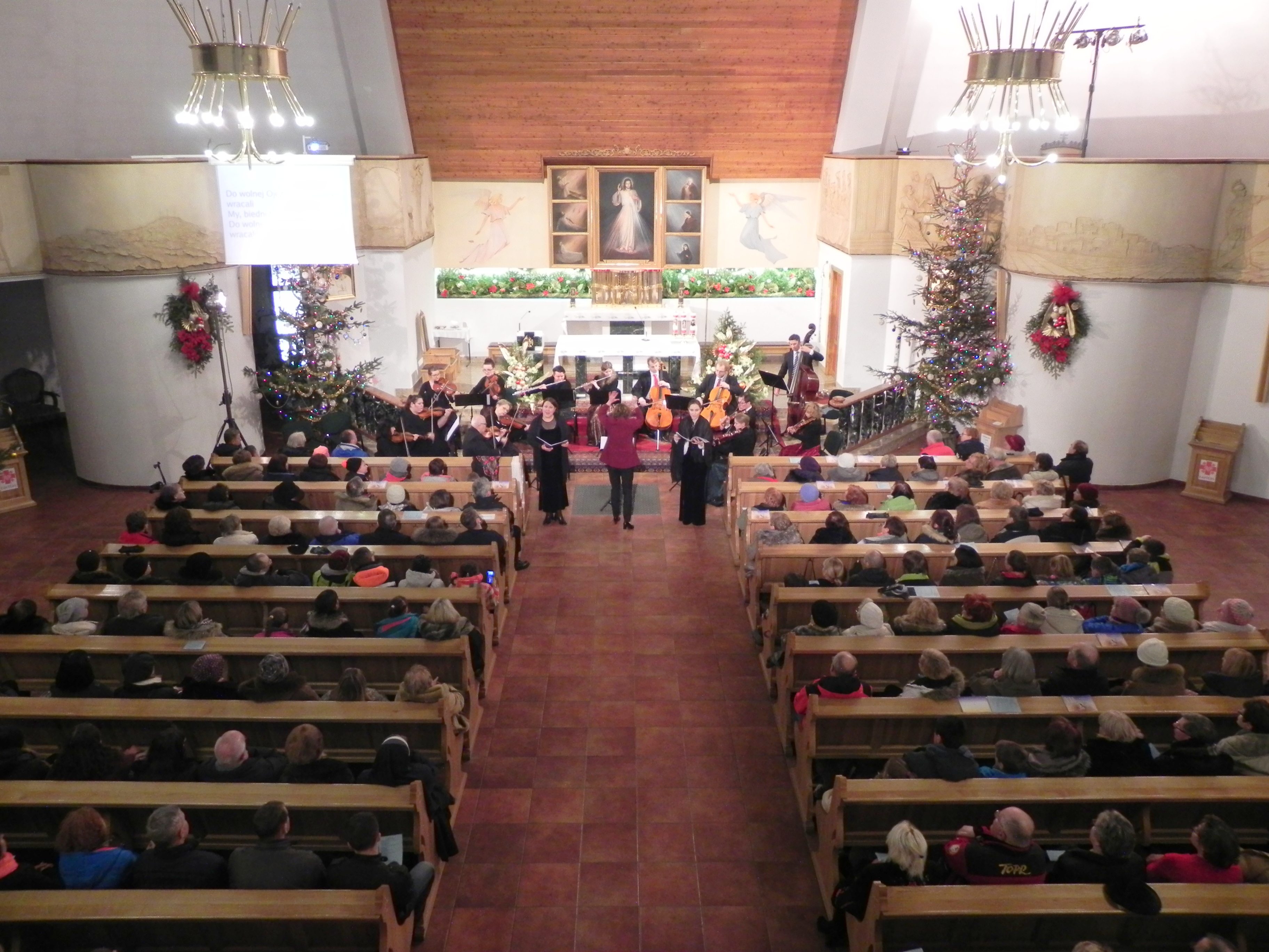 W niedzielę, 31 stycznia w Kościele Miłosierdzia Bożego na Chramcówkach odbył się wspaniały koncert „Kolędy Patriotyczne i Staropolskie”. Tatrzańskiej Orkiestrze Klimatycznej pod dyrekcją Agnieszki Kreiner towarzyszyli: Katarzyna Wiwer - sopran, Joanna Bogdańska - mezzosopran, Renata Guzik flet i flet altowy, Milena Gąsienica – flet oraz Tomasz Gronkowski – organy. W repertuarze znalazły się m.in. kolędy staropolskie „Anioł Pasterzom Mówił”, „Dzieciątko się Narodziło”, „Aniołowie Zaśpiewali”; kolędy patriotyczne „Bóg się Rodzi”, „Kolęda Polska”, „Kolęda Żołnierska”; pastorałki ucieszne „Pastereczka”, „Pastorałka Muzykancka” oraz „Kolęda Zbójnicka”. Oprócz kolęd usłyszeliśmy również Koncert Vivaldiego na dwa flety i orkiestrę. Po koncercie, kwiaty i podziękowania artystom w imieniu Burmistrza Miasta Zakopane Leszka Doruli złożył Wiceburmistrz Wiktor Łukaszczyk oraz Przewodniczący Rady Miasta Grzegorz Jóźkiewicz i Przewodniczący Komisji Kultury Maciej Wojak.