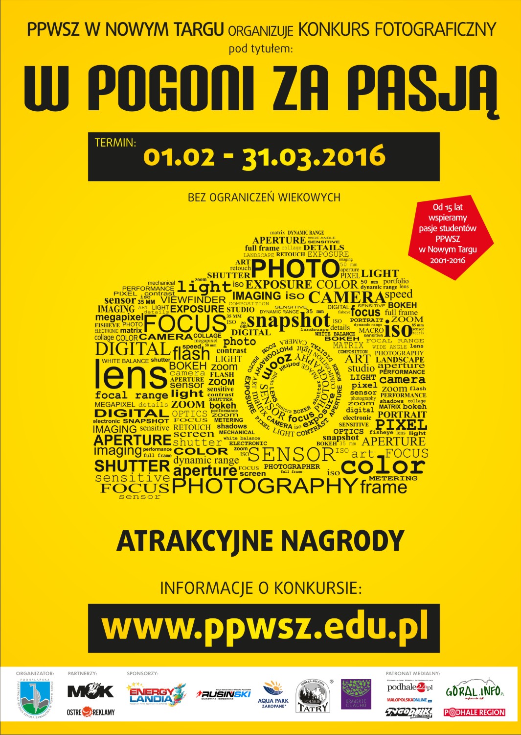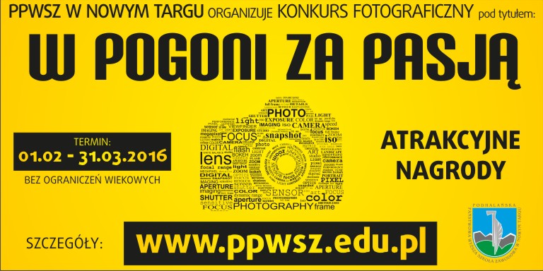 Zapraszamy do udziału w konkursie fotograficznym pt. „ W pogoni za pasją" organizowanym przez Podhalańską Państwową Wyższą Szkołę Zawodową w Nowym Targu, z okazji obchodów piętnastolecia uczelni.