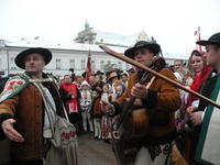 W imieniu gości z Podhala głos zabrał Burmistrz Miasta Zakopane Leszek Dorula – My górale kierujemy się w życiu takimi zwykłymi wartościami, ale najważniejszymi, to jest wiara, tradycja, miłość do ojczyzny, ale też i wolność. Jednym słowem: Bóg, Honor i Ojczyzna – mówił Burmistrz.