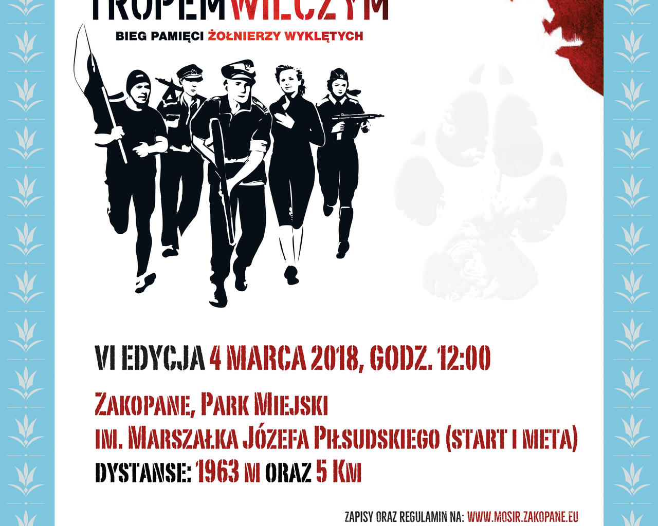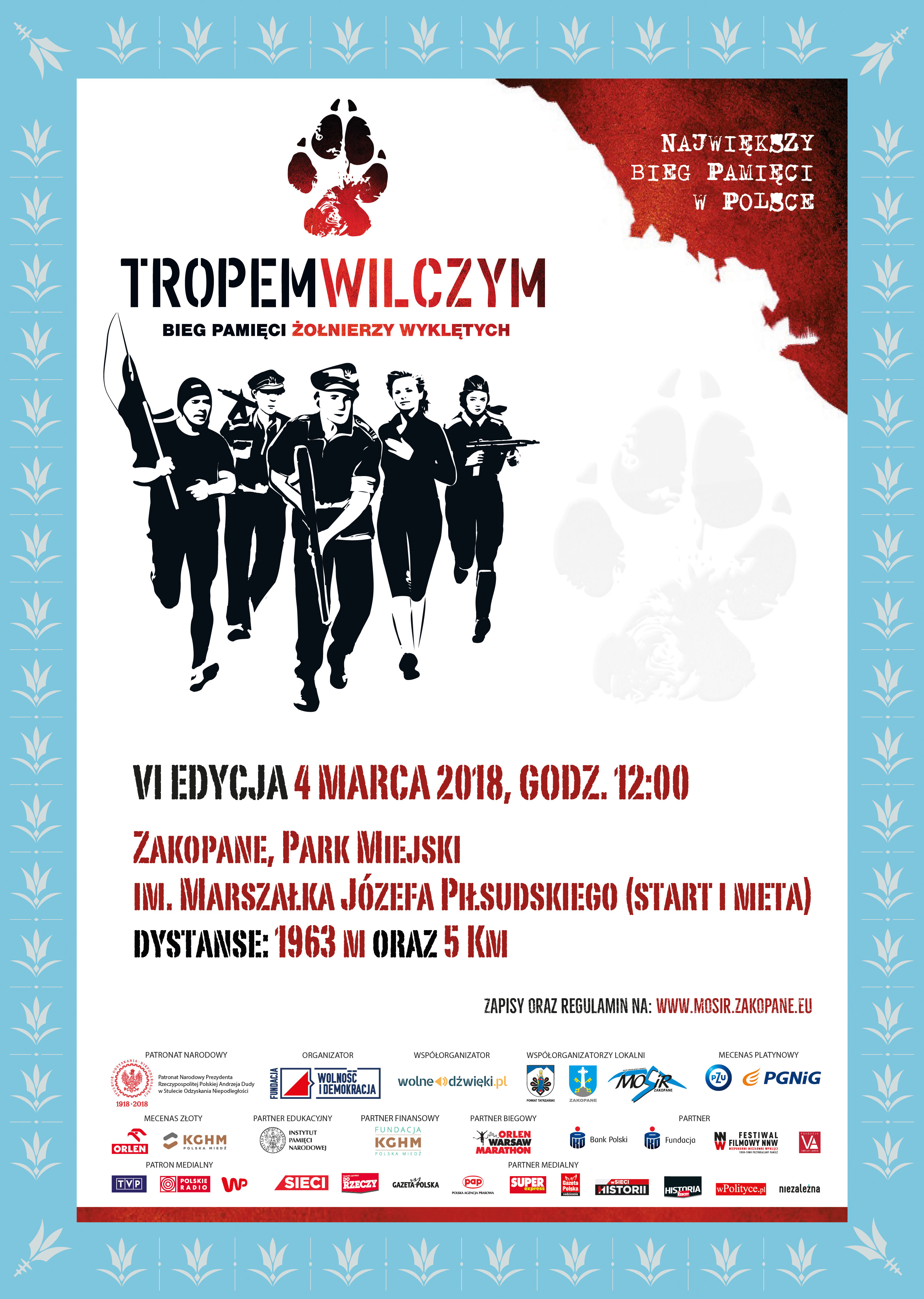 Miejski Ośrodek Sportu i Rekreacji w Zakopanem oraz Fundacja Wolność i Demokracja 4 marca zapraszają do udziału w Biegu Pamięci Żołnierzy Wyklętych - Tropem Wilczym, który odbędzie się pod patronatem honorowym Starosty Powiatu Tatrzańskiego Piotra Bąka i Burmistrza Miasta Zakopane Leszka Doruli.