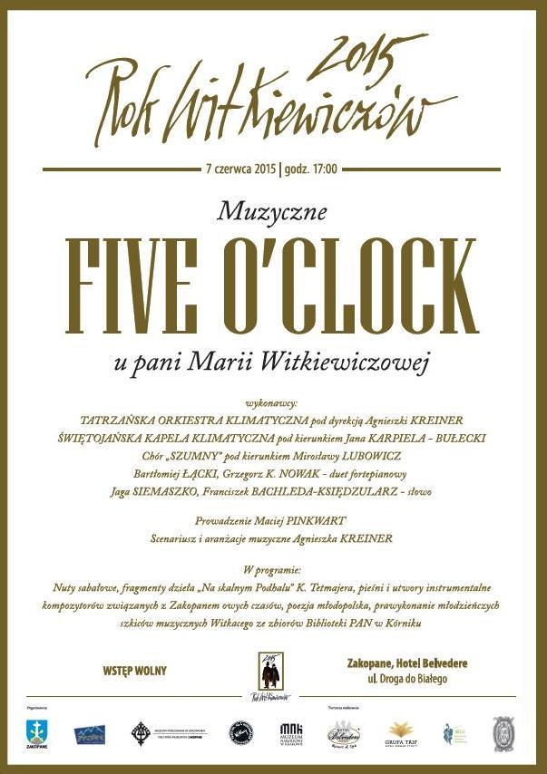 W ramach XIII Dni Zakopanego 7 czerwca o godz. 17.00 zapraszamy na Muzyczne Five o’Clock u Pani Marii Witkiewiczowej.