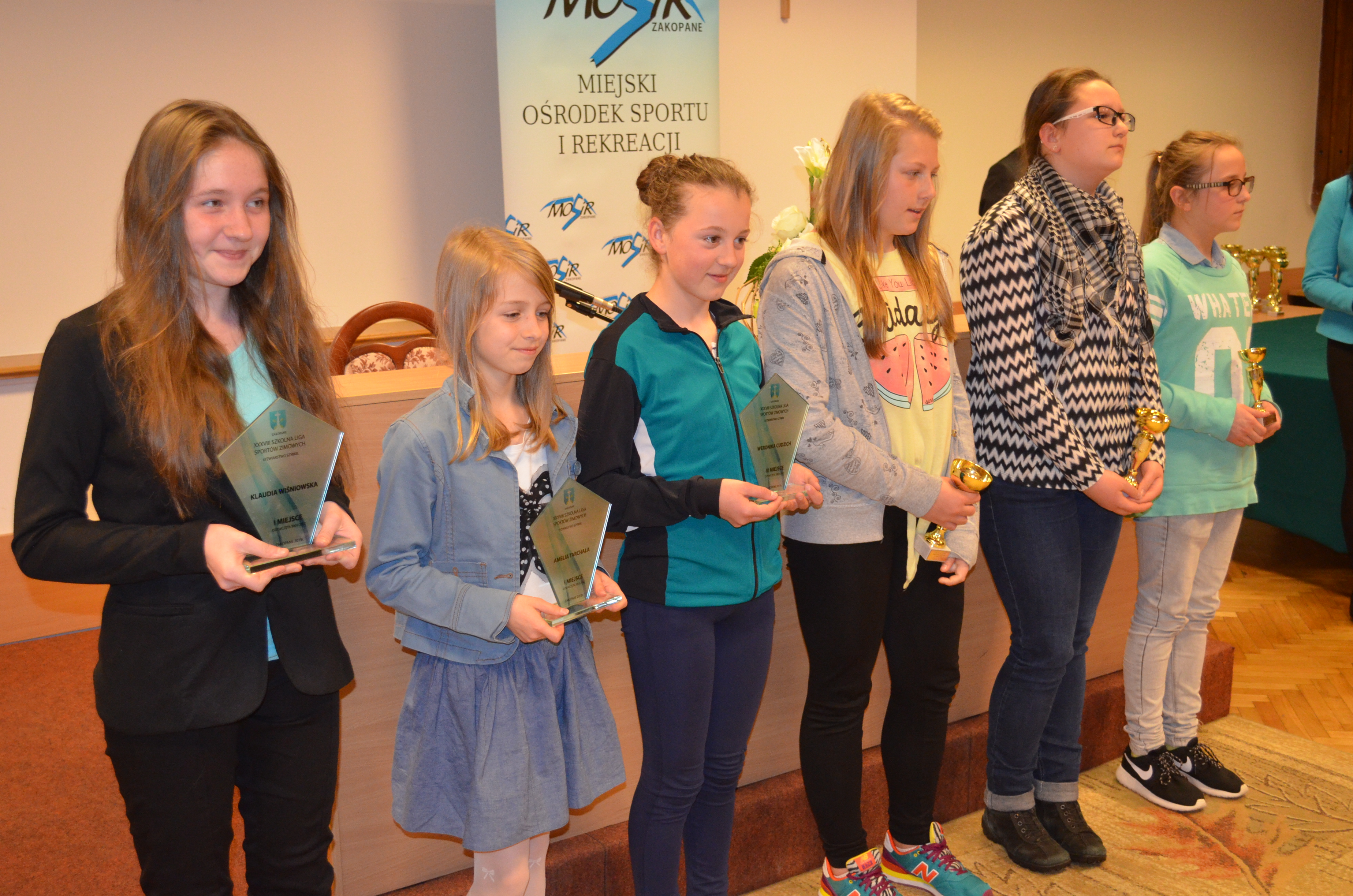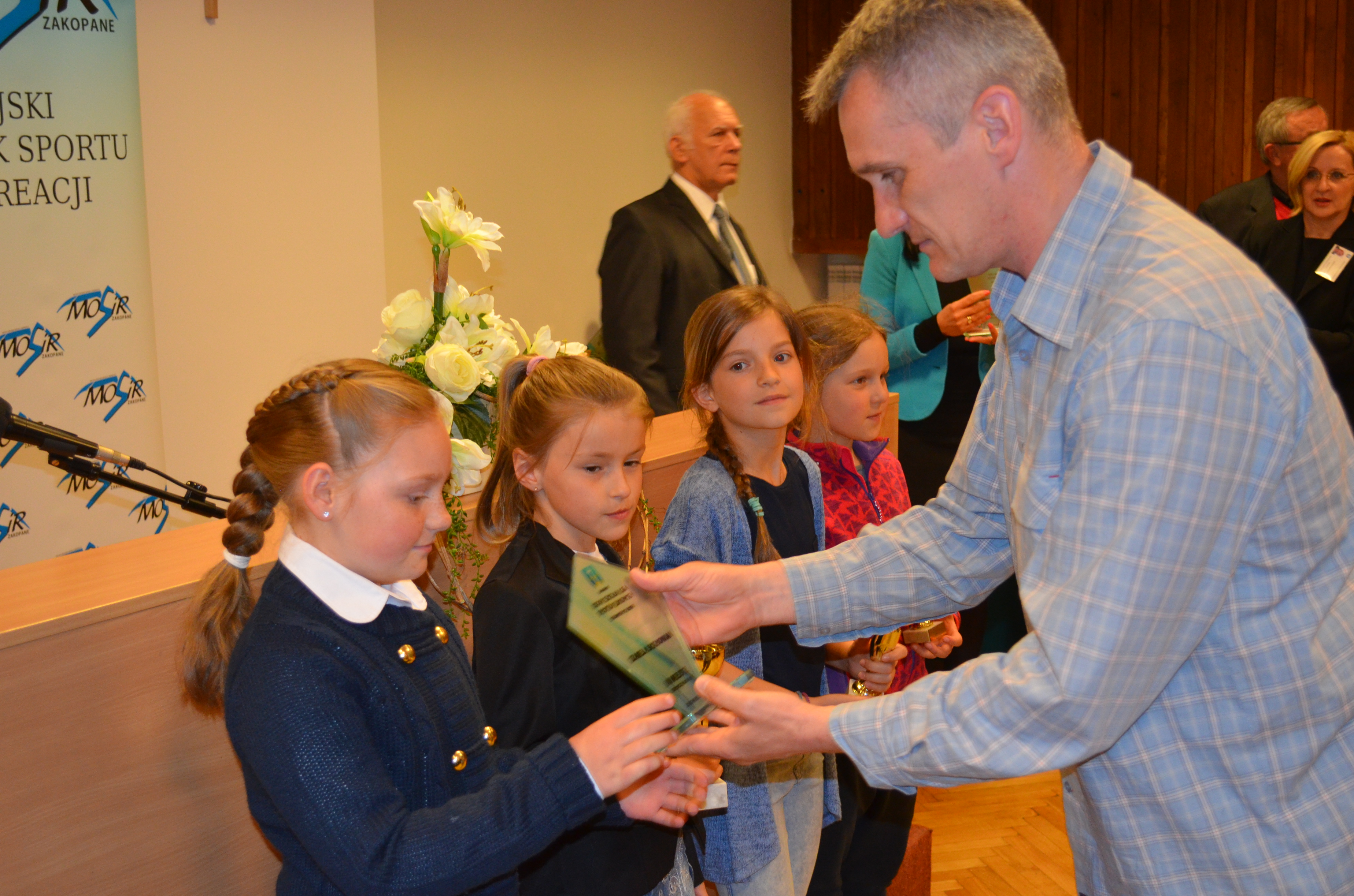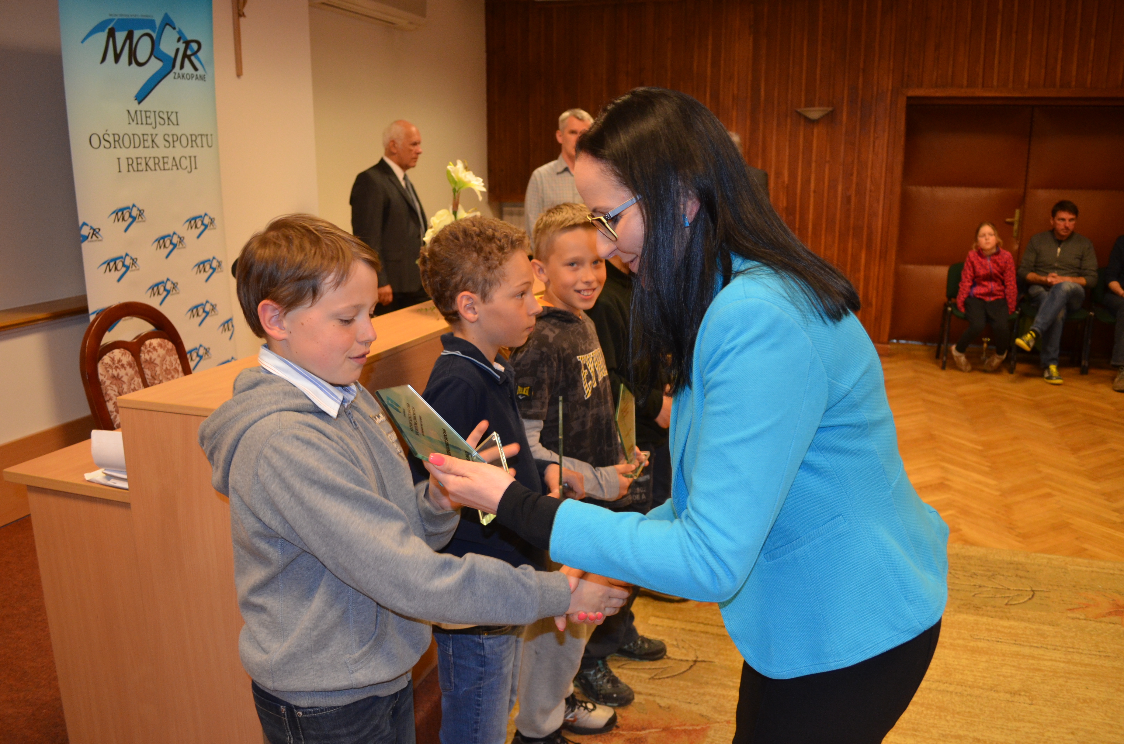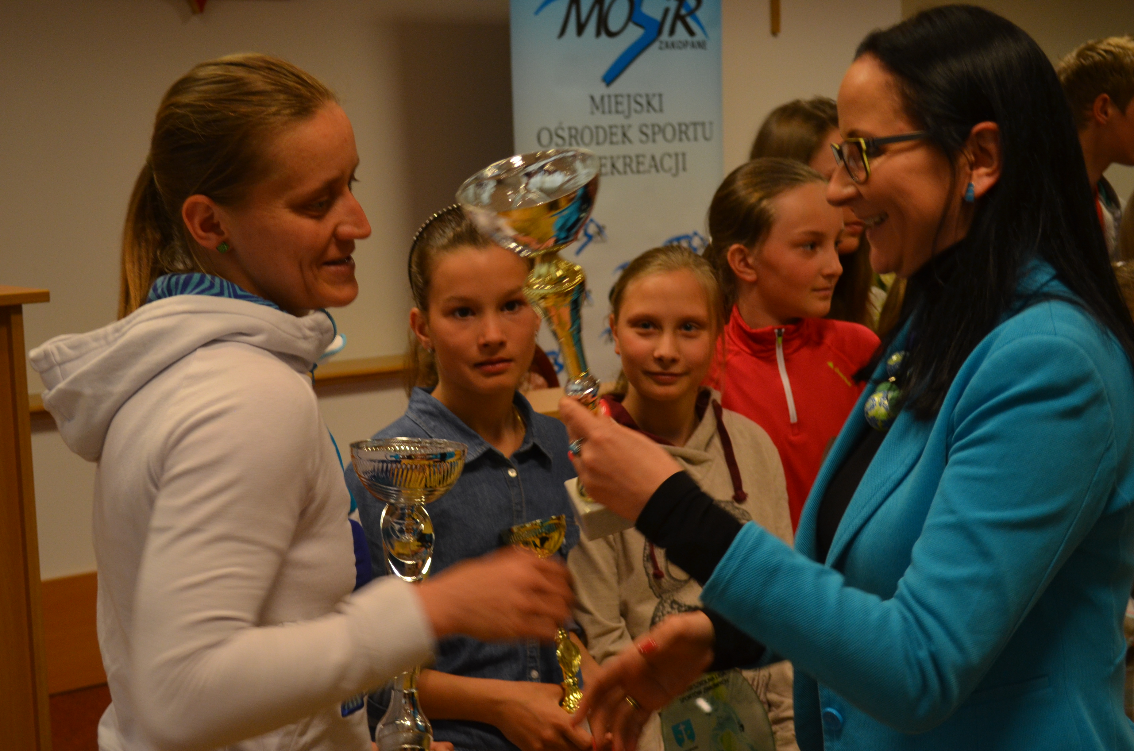 Wiceburmistrz Agnieszka Nowak-Gąsienica, przewodniczący Komisji Sportu i Turystyki Rady Miasta Zakopane Krzysztof Wiśniowski oraz naczelnik Wydziału Edukacji, Turystyki i Sportu Urzędu Miasta Zakopane Zofia Kiełpińska wręczyli nagrody w XXXVIII Szkolnej Ligi Sportów Zimowych w łyżwiarstwie szybkim i slalomie gigancie.