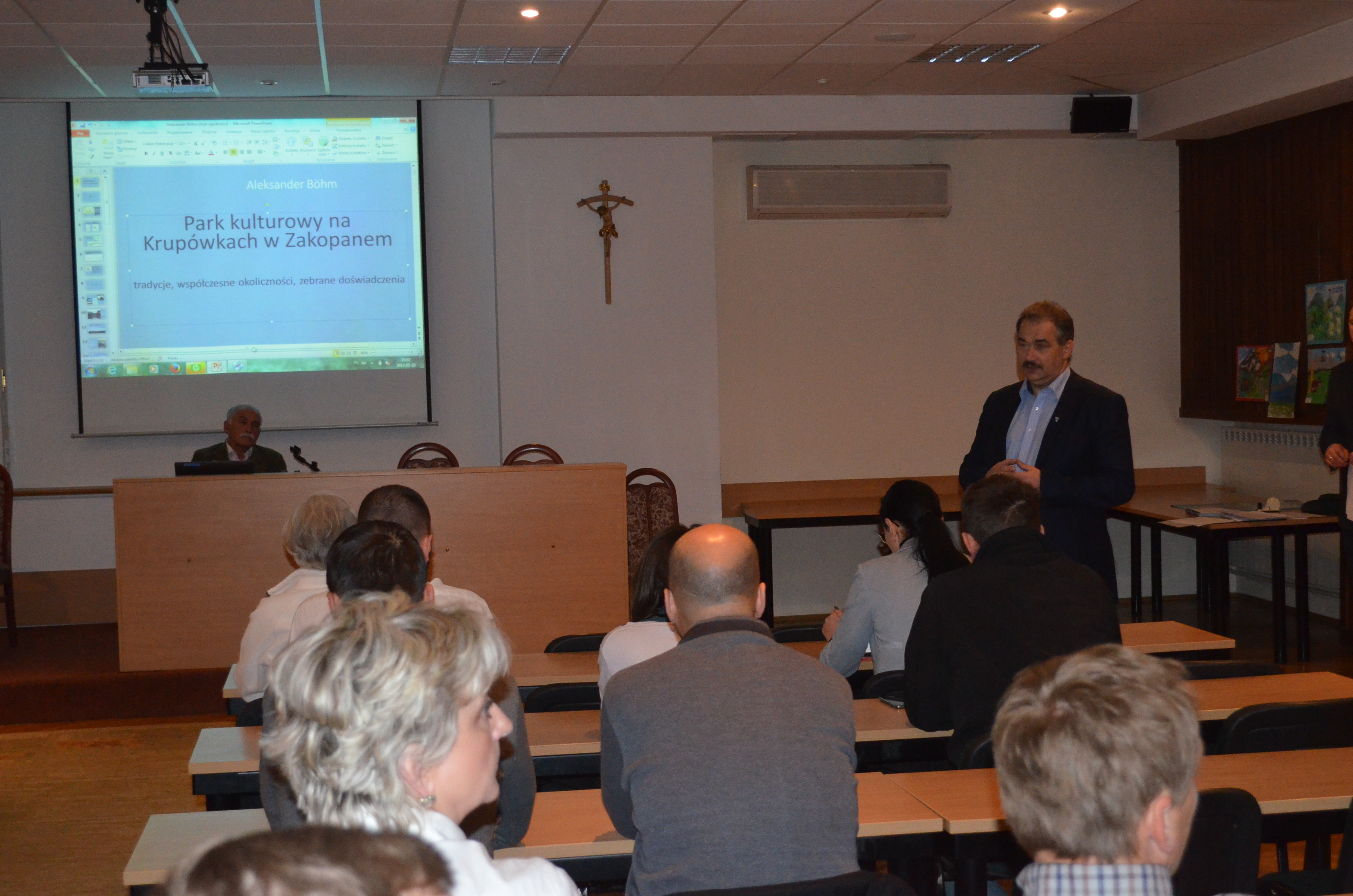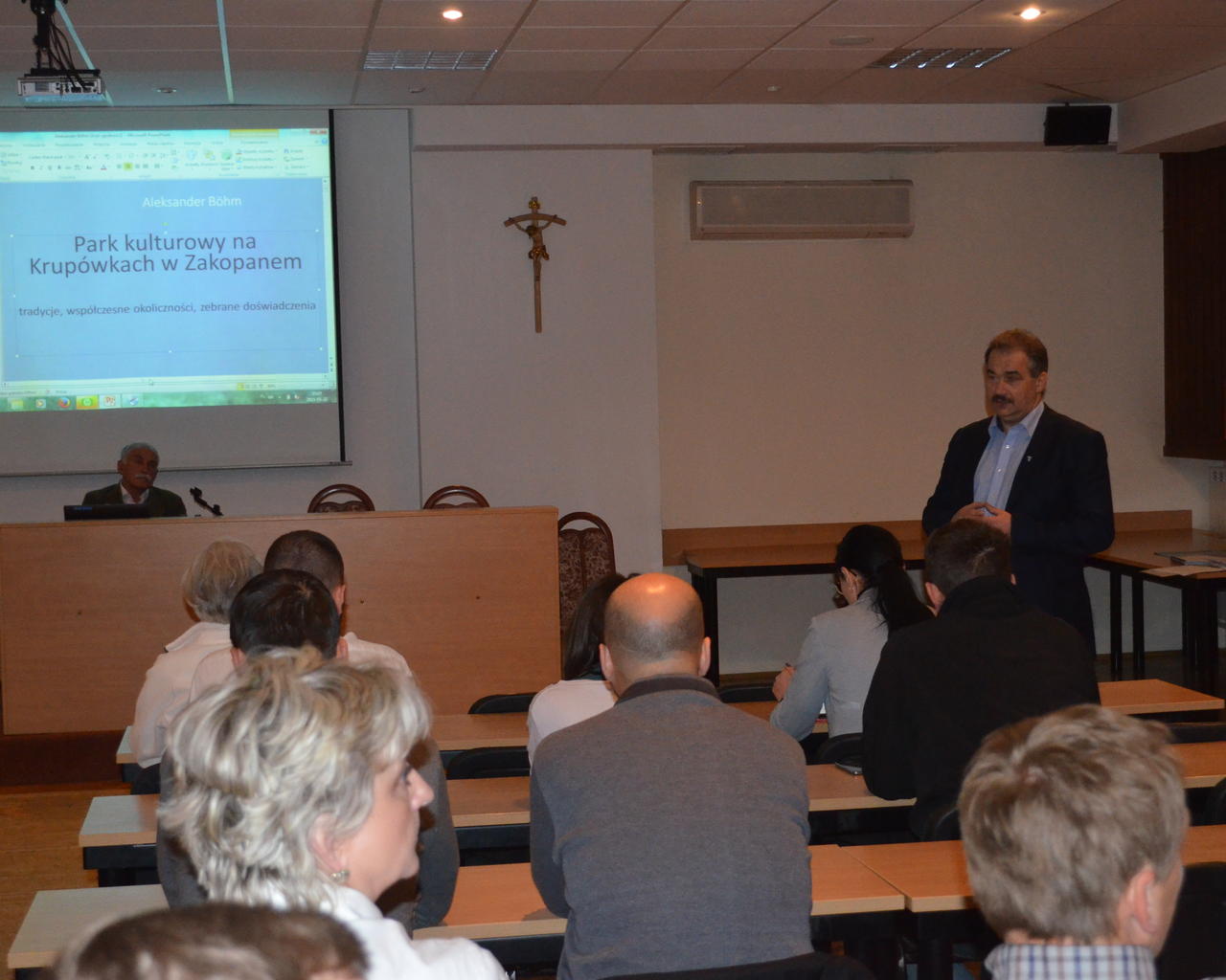 Wprowadzeniem do dyskusji był wykład pt. „Park Kulturowy na Krupówkach w Zakopanem – tradycje, współczesne okoliczności, zebrane doświadczenia” prof. Aleksandra Bohma, autora kilkudziesięciu projektów architektonicznych oraz współautor planu ogólnego Krakowa, studium uwarunkowań i kierunków zagospodarowania przestrzennego Krakowa i Warszawy, planu koordynacyjnego III Kampusu UJ oraz koncepcji „Parków rzecznych” w planie Krakowa.