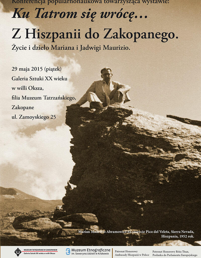 Muzeum Tatrzańskie im. Dra Tytusa Chałubińskiego w Zakopanem oraz Muzeum Etnograficzne im. Seweryna Udzieli w Krakowie zapraszają na konferencję popularnonaukową towarzyszącą wystawie „Ku Tatrom się wrócę… Z Hiszpanii do Zakopanego. Życie i dzieło Mariana i Jadwigi Maurizio" 29 maja (piątek), godz.10:00 w Galerii Sztuki XX wieku w willi Oksza.
