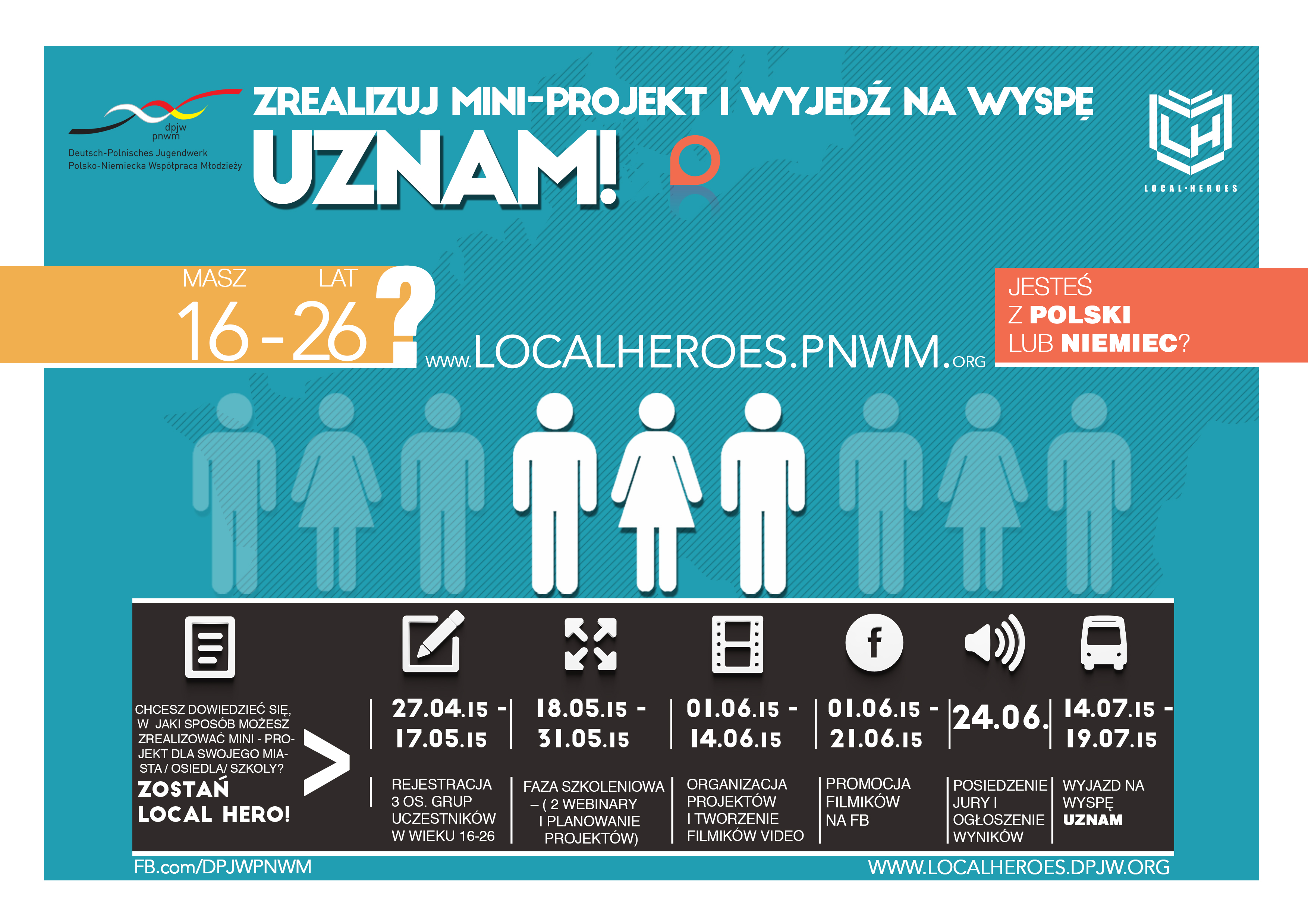 „Local Heroes” jest internetowym konkursem organizowanym przez wolontariuszy PNWM dla młodzieży z Polski i Niemiec w wieku 16-26 lat mającym na celu zainspirowanie ich do bycia aktywnymi członkami swoich lokalnych społeczności.Uczestnicy projektu dowiedzą się o tym, że działalność społeczna może przynieść im korzyści oraz świetną zabawę. Dzięki metodzie „nauczanie poprzez praktykę” uczestnicy będą mogli zdobyć kluczowe kompetencje, które przydadzą się w poszukiwaniu przyszłej pracy. W ramach konkursu przewidziana jest również faza szkoleniowa, podczas której uczestnicy nauczą się więcej na temat wolontariatu i tego co mogą zrobić dla swoich społeczności.