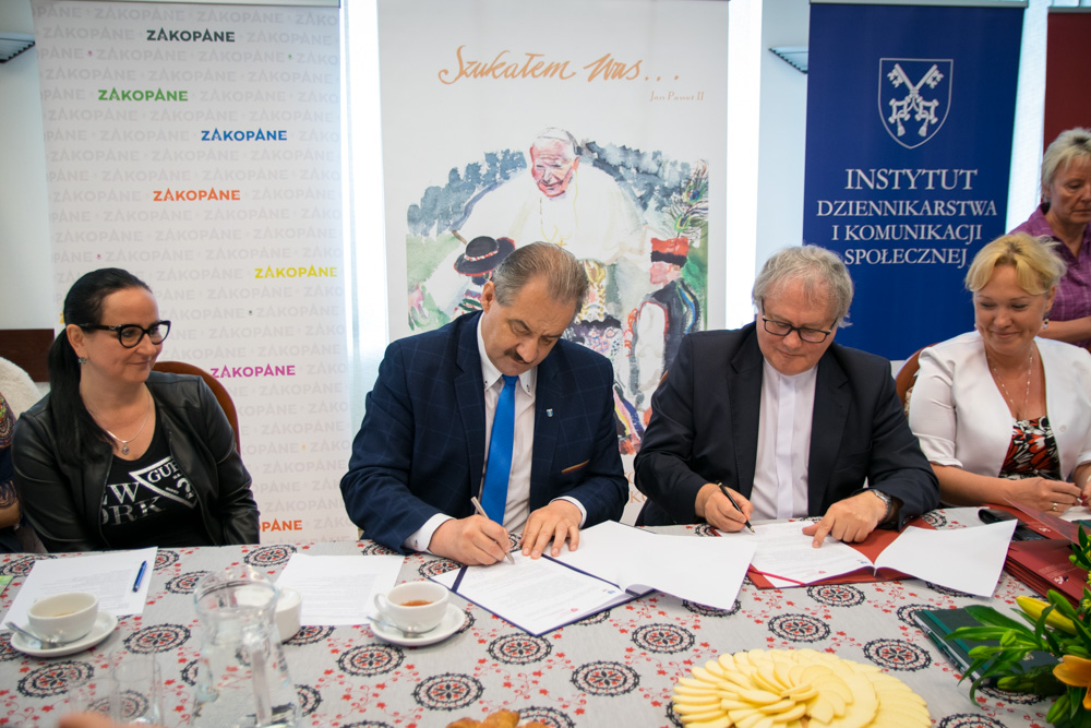 Władze miasta wyrażały też zadowolenie z nawiązania współpracy z Instytutem Dziennikarstwa i Komunikacji Społecznej Uniwersytetu Papieskiego Jana Pawła II w Krakowie. List intencyjny w tej sprawie uroczyście podpisał Burmistrz Leszek Dorula oraz Dyrektor ks. prof. Michał Drożdż. Tym samym Instytut stał się nowym partnerem Festiwalu. Studenci Instytutu będą mogli podczas tak dużego wydarzenia zdobyć wiele cennych doświadczeń, ale także skutecznie wspomóc działanie Biura Prasowego Festiwalu. Współpraca obejmie także konkurs fotograficzny Żywioł Folkloru oraz konferencję naukową.