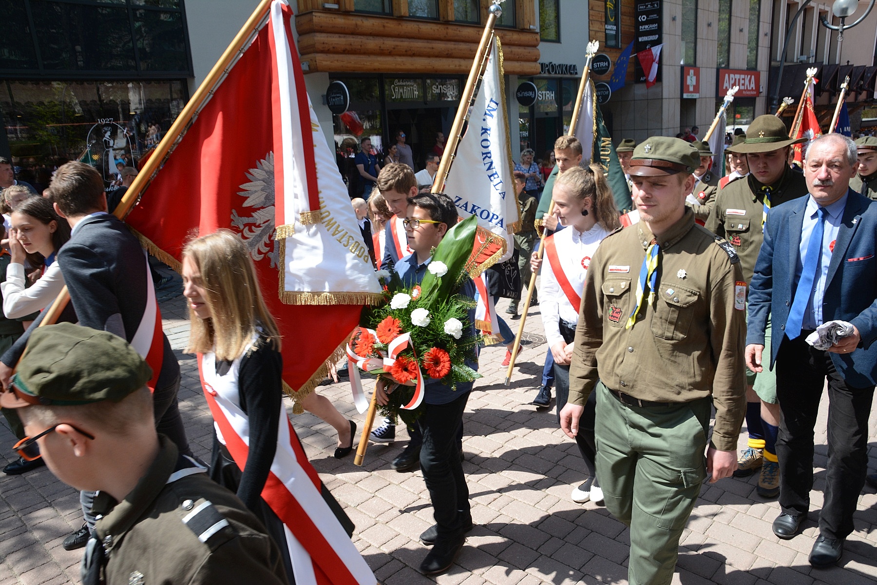 Zakopane tradycyjnie bardzo uroczyście świętowało 227. Rocznicę Uchwalenia Konstytucji 3 Maja. Obchodom towarzyszyła piękna pogoda i wspaniała radosna patriotyczna atmosfera, a wzięli w nich udział przedstawiciele władz miasta oraz powiatu, radni, mieszkańcy, turyści, liczne poczty sztandarowe, góralska muzyka i banderia konna, harcerze, przedstawiciele wielu miejskich instytucji, organizacji i stowarzyszeń. Ozdobą pochodu była także duża biało-czerwona flaga niesiona przez uczestników.